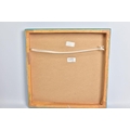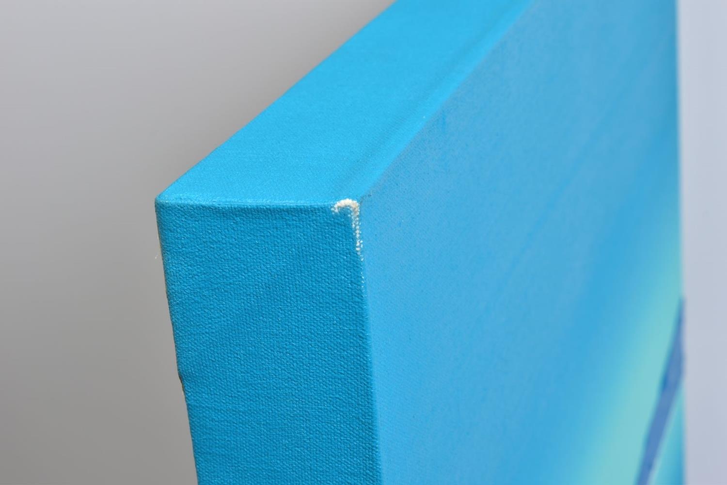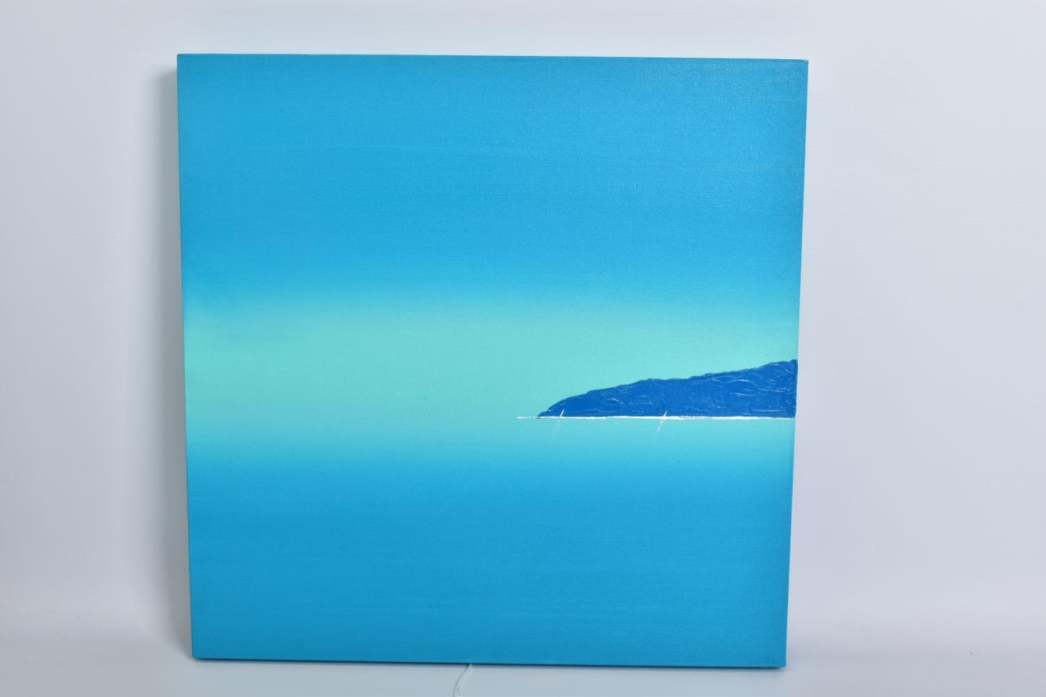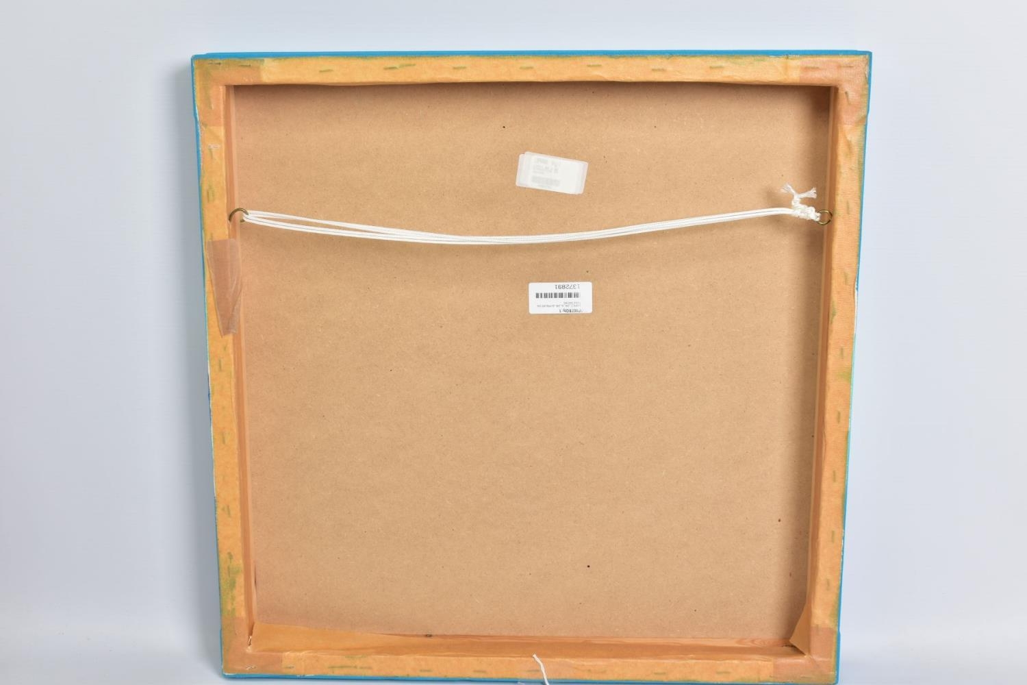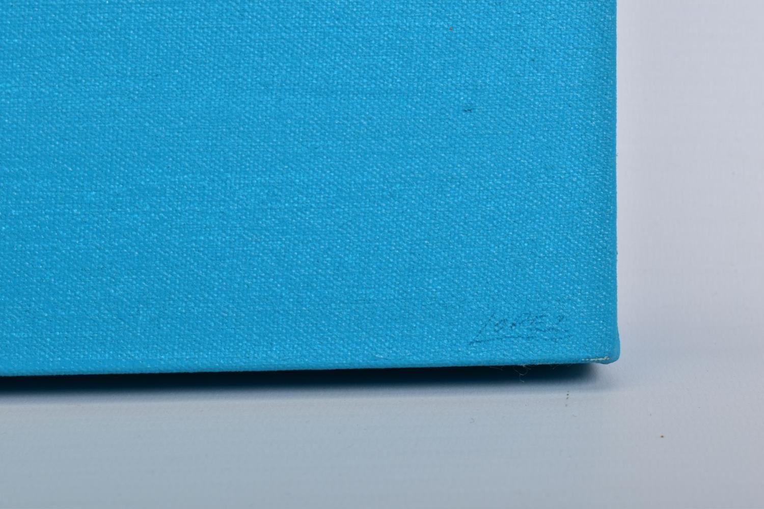 MARIA LOPEZ (CONTEMPORARY), abstract study in blue, signed bottom right, oil on board, gallery attributed label verso, box canvas on board, approximate size 51cm x 51cm (condition: scuffs on corners) (A)