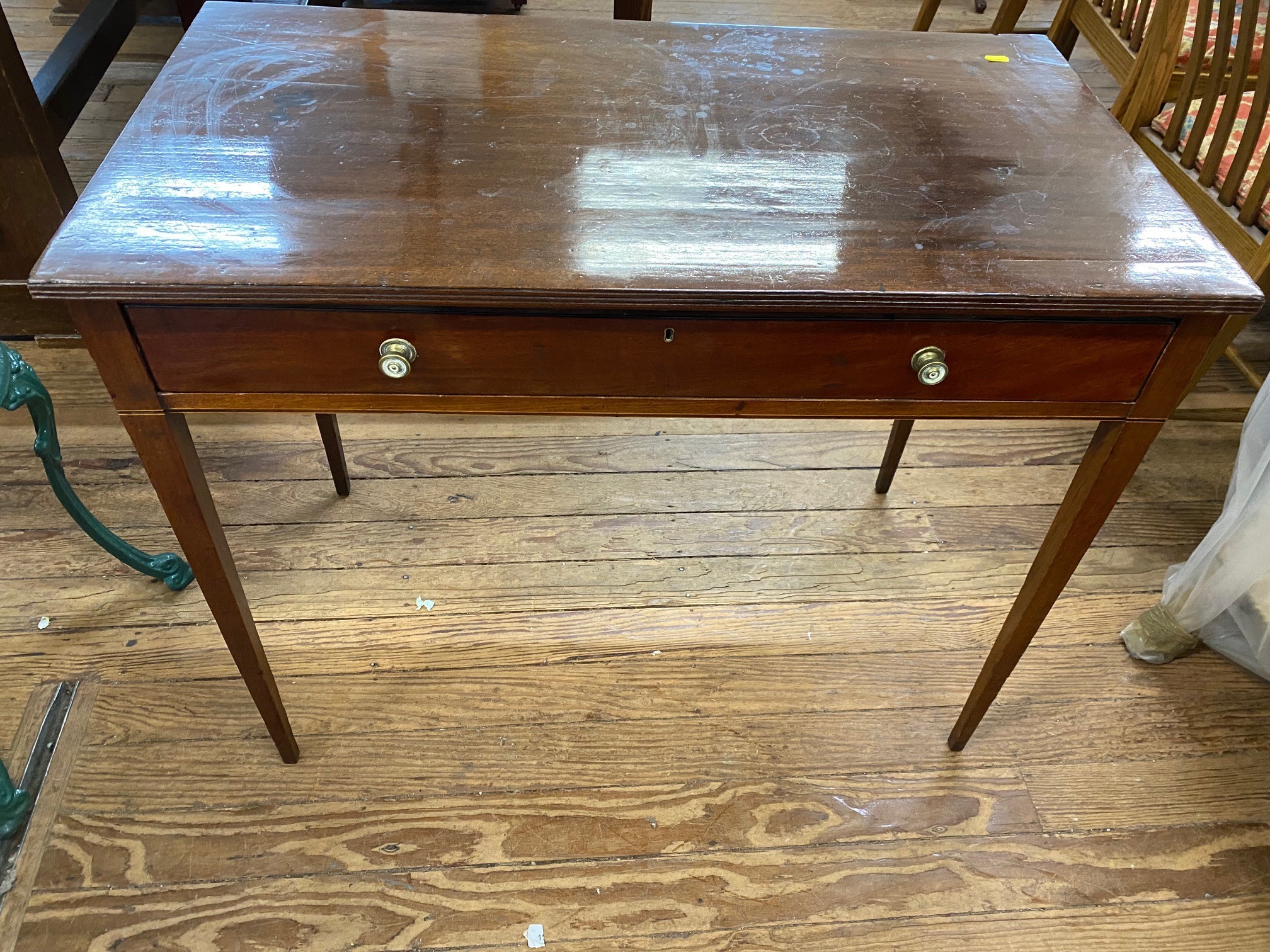 A George III Mahogany Side Table. Fitted with a single frieze drawer. 75cm x 90cm x 49cm