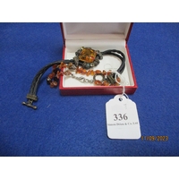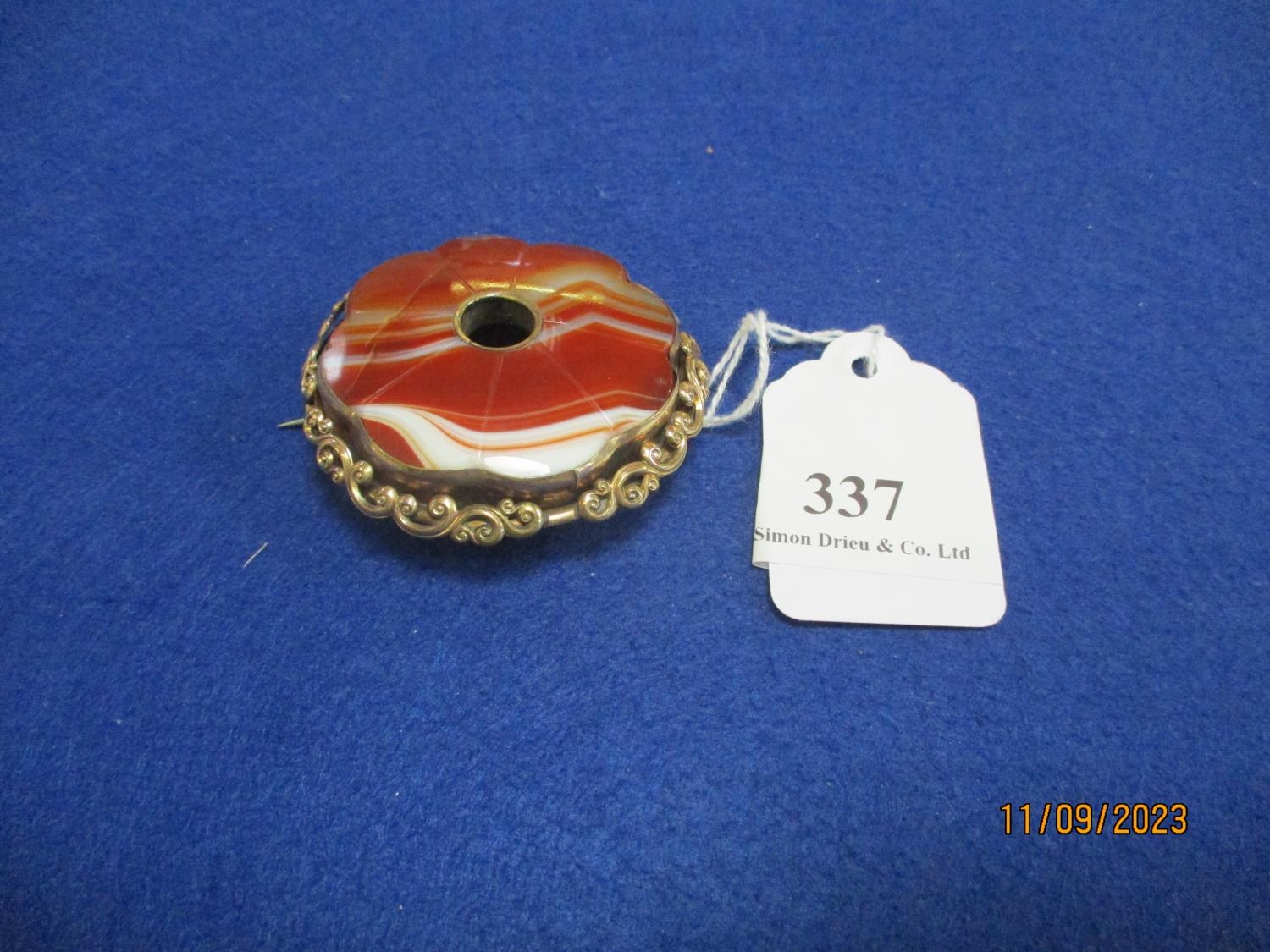 A Victorian banded agate gold/silver brooch