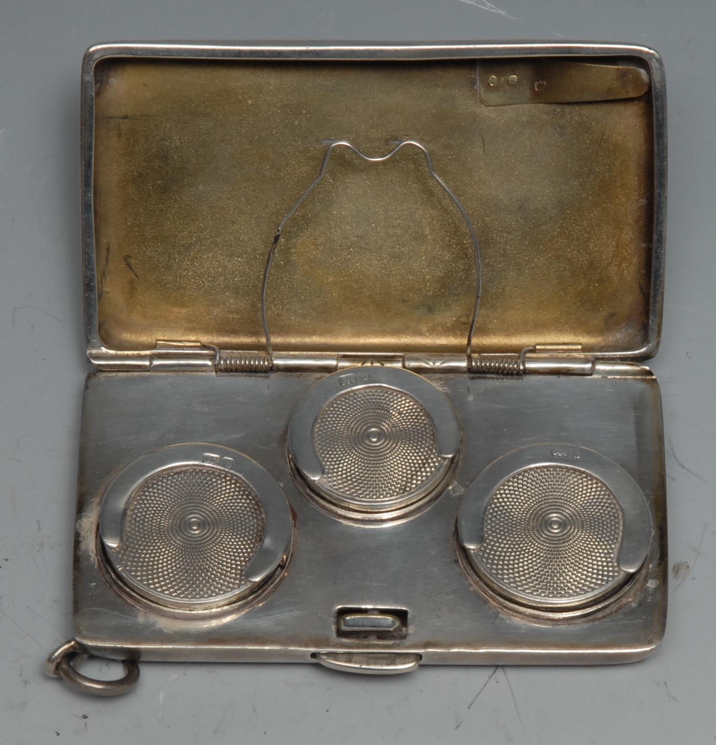 An Edwardian silver rounded rectangular three-section sovereign case, 7cm wide, Deakin & Francis, Birmingham 1901