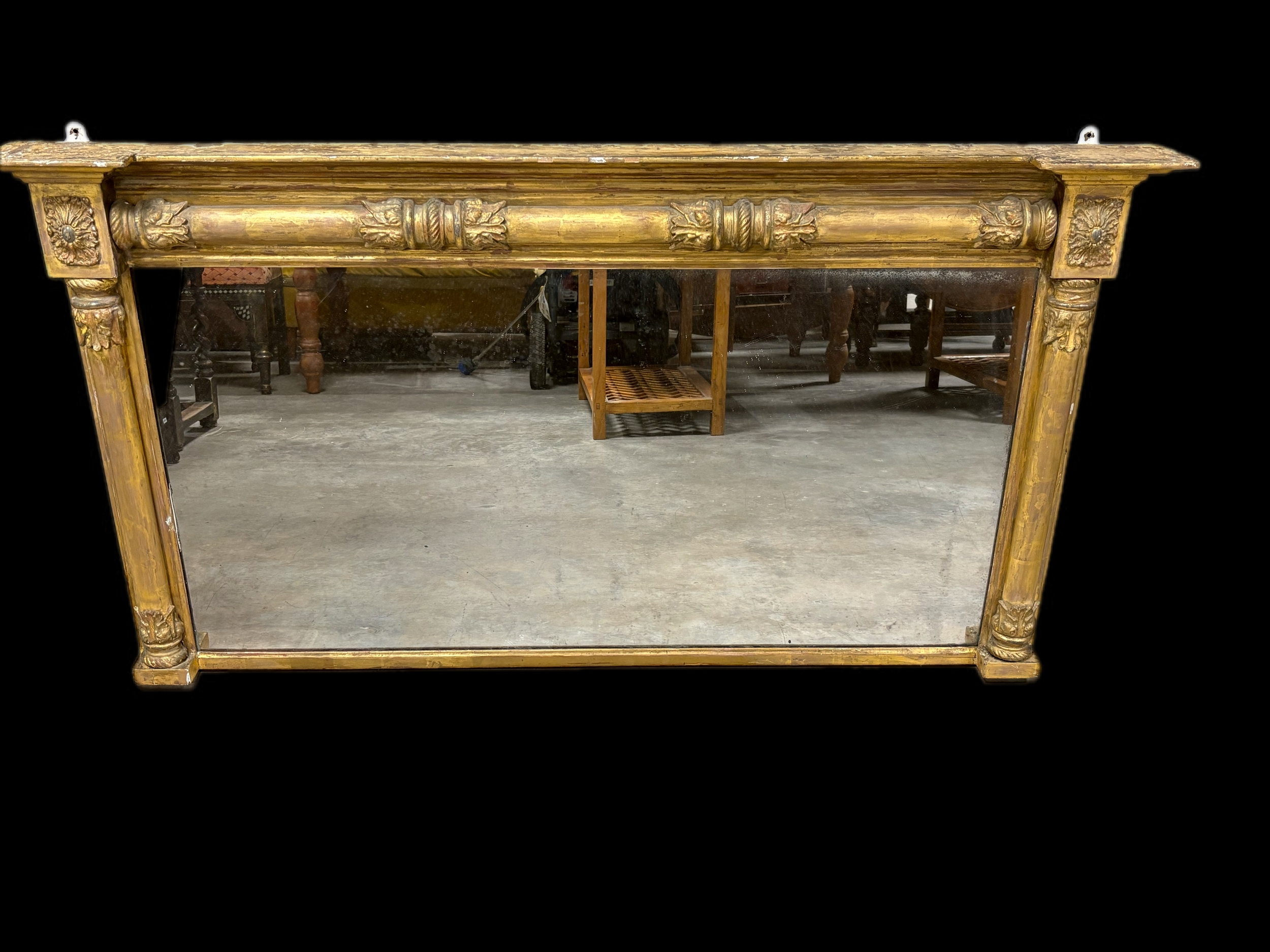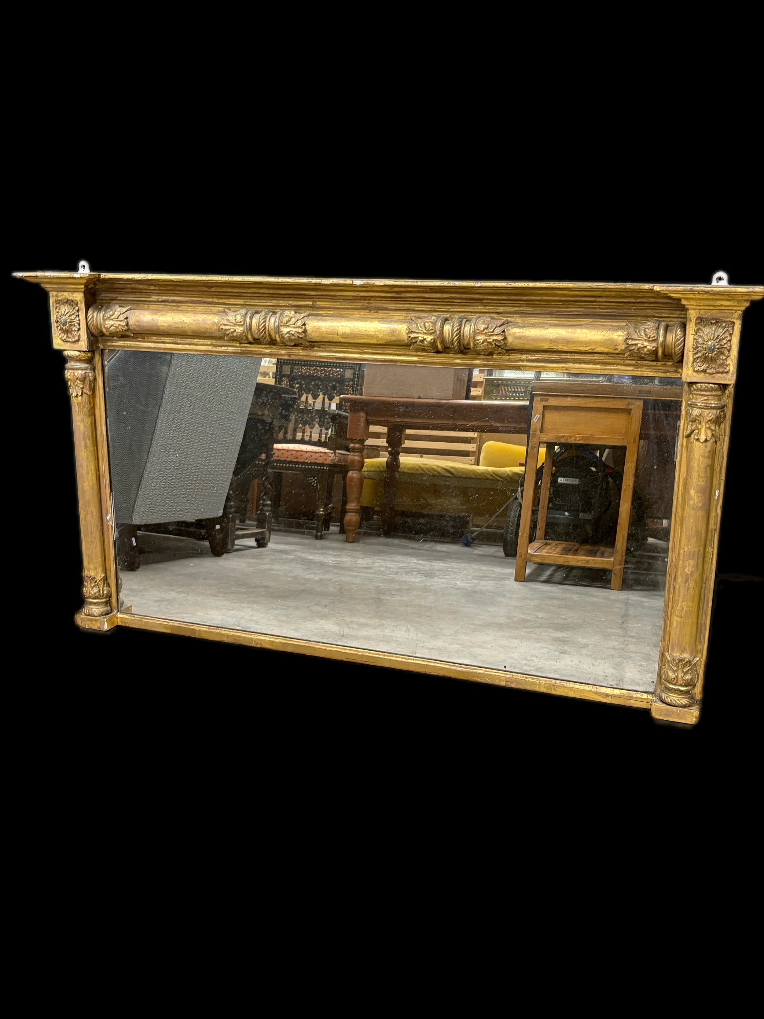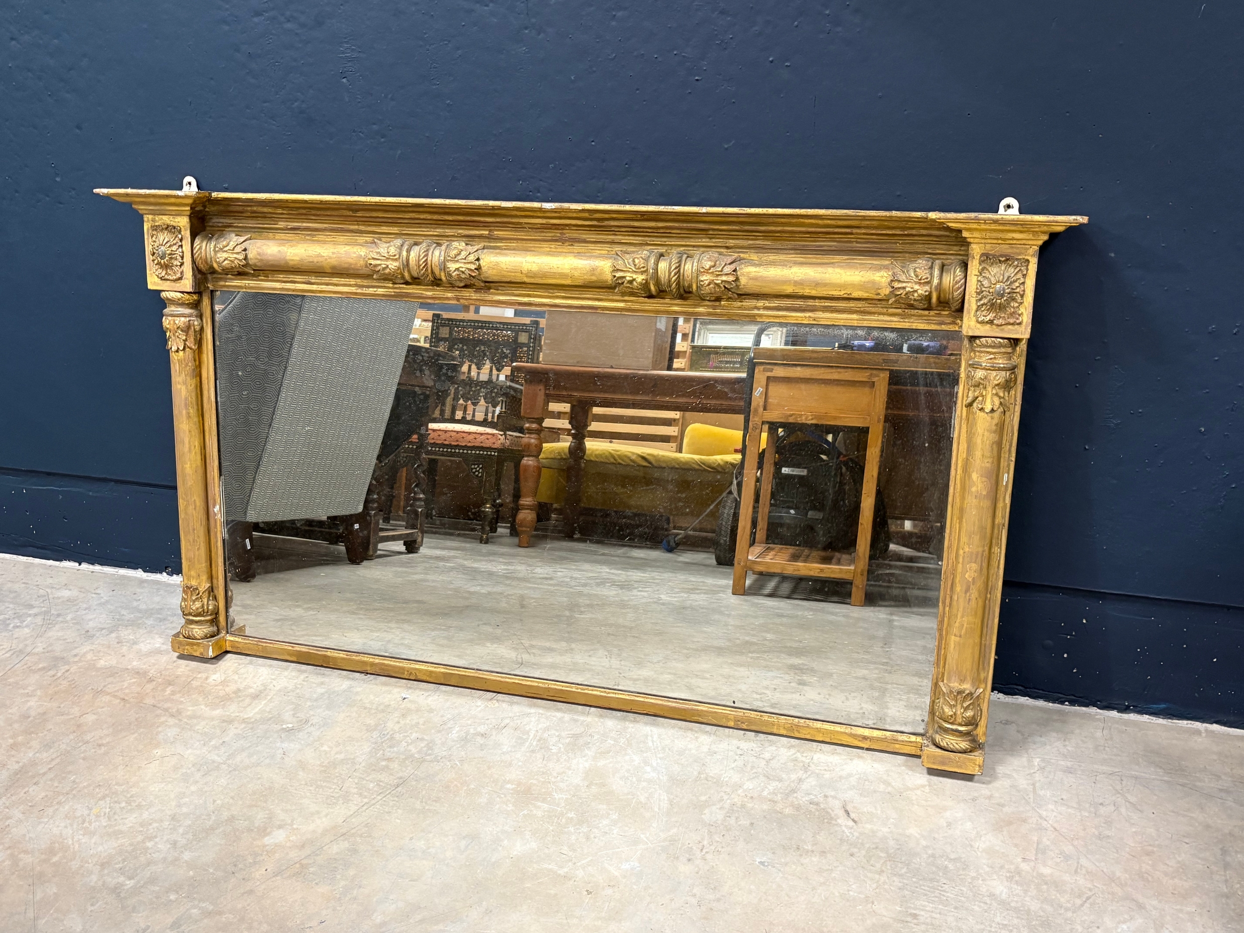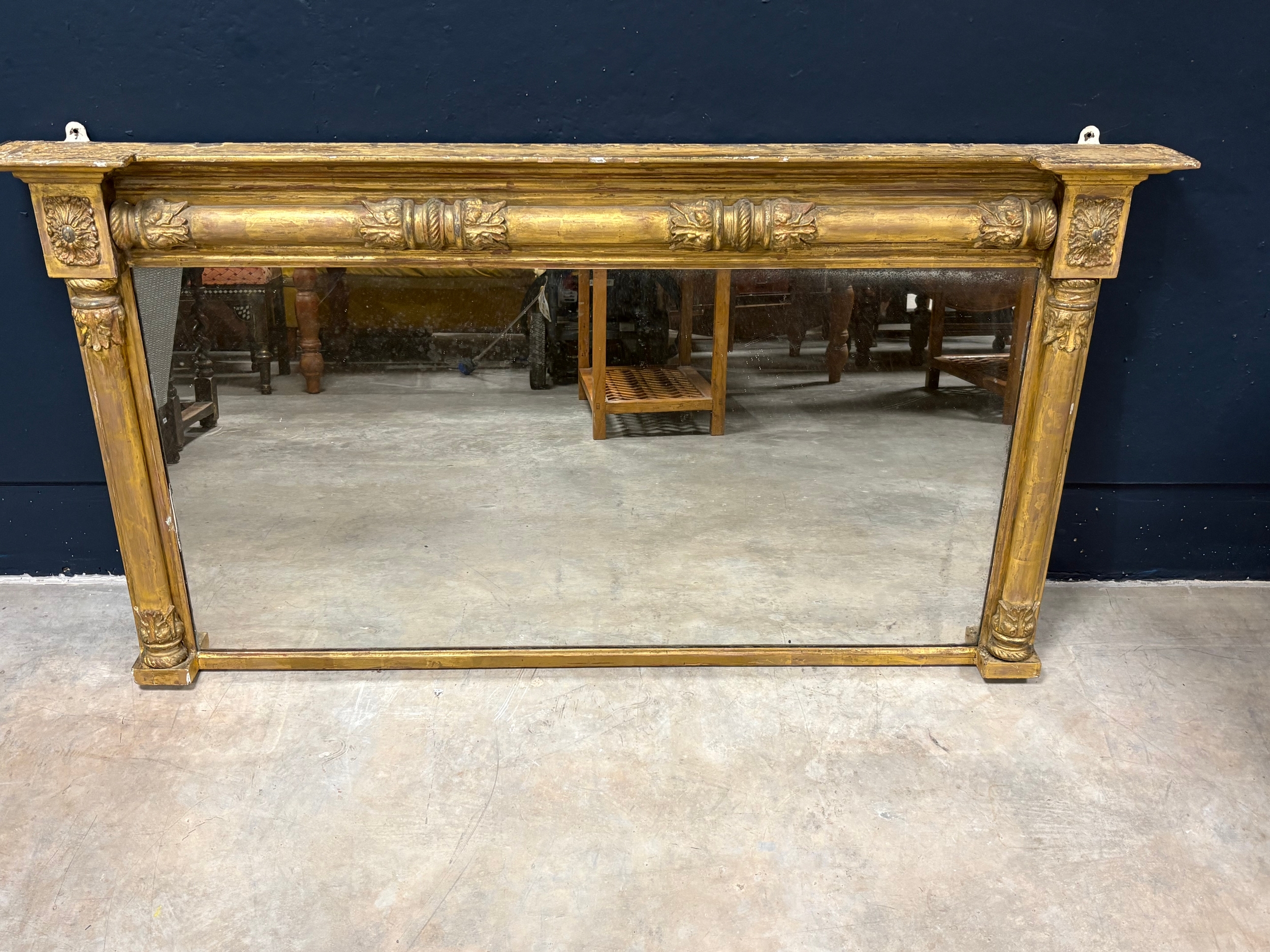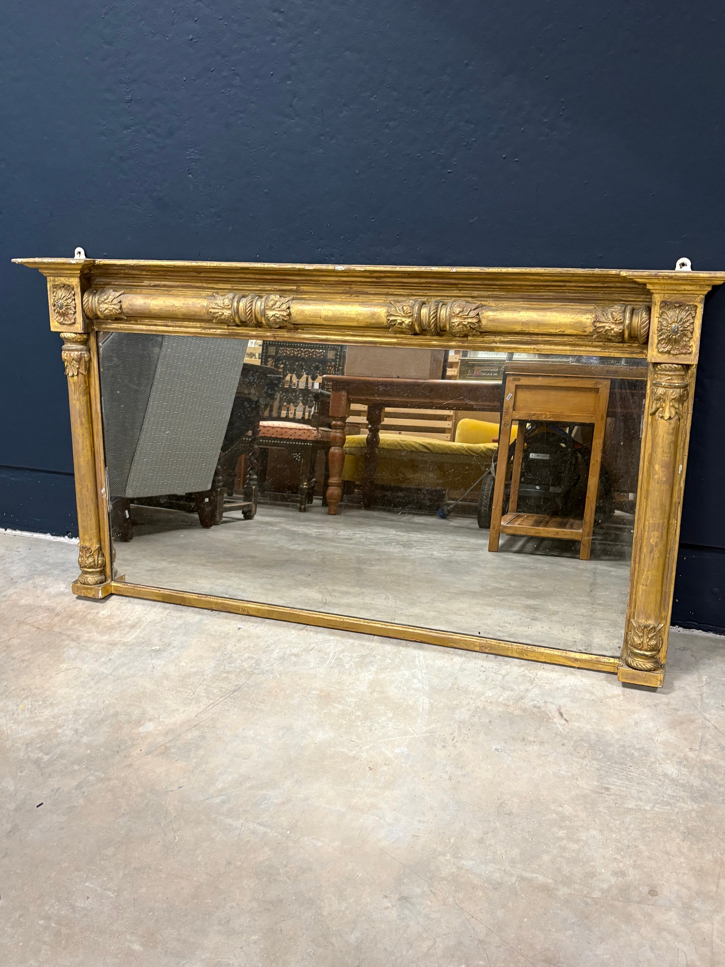 Large antique gilt wooden over mantle mirror152cm W x 82cm H