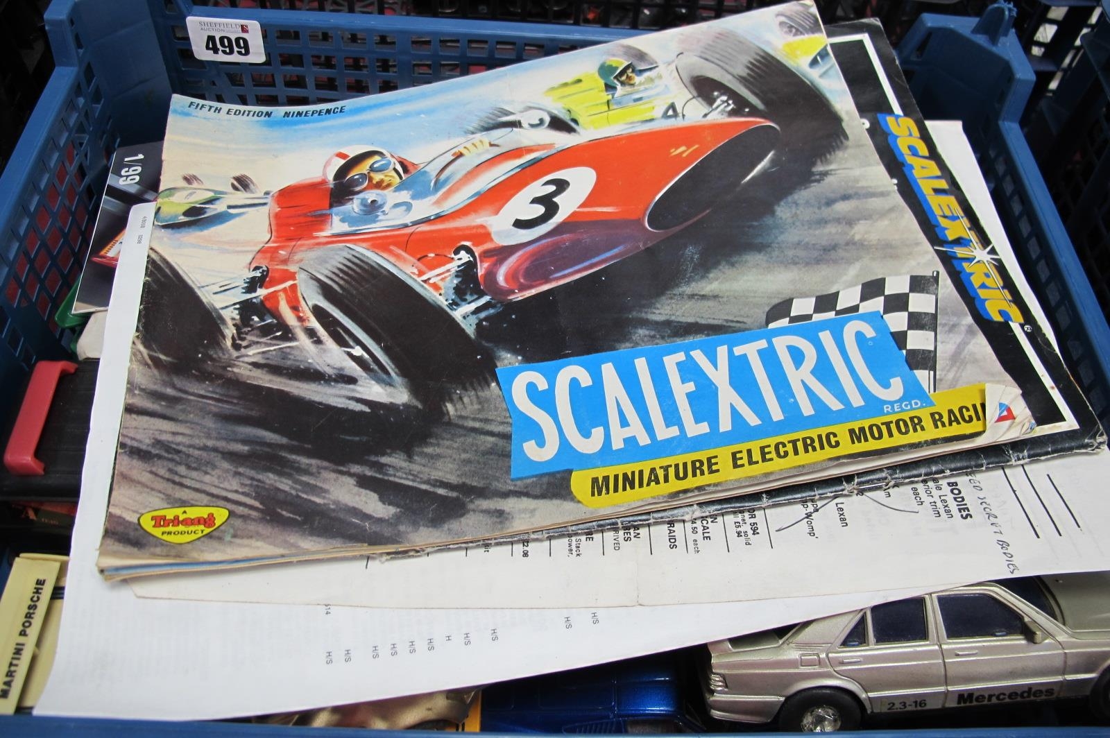 A Collection of Slot Cars and Similar by Scalextric and Other, including Porsche 911, Mercedes 190 2.3 16, adapted examples noted, including Porsche Audi (Winnwagen chassis), all playworn, spares/repair; together with a quantity of Scalextric literature including Fifth Edition (1964) product catalogue.