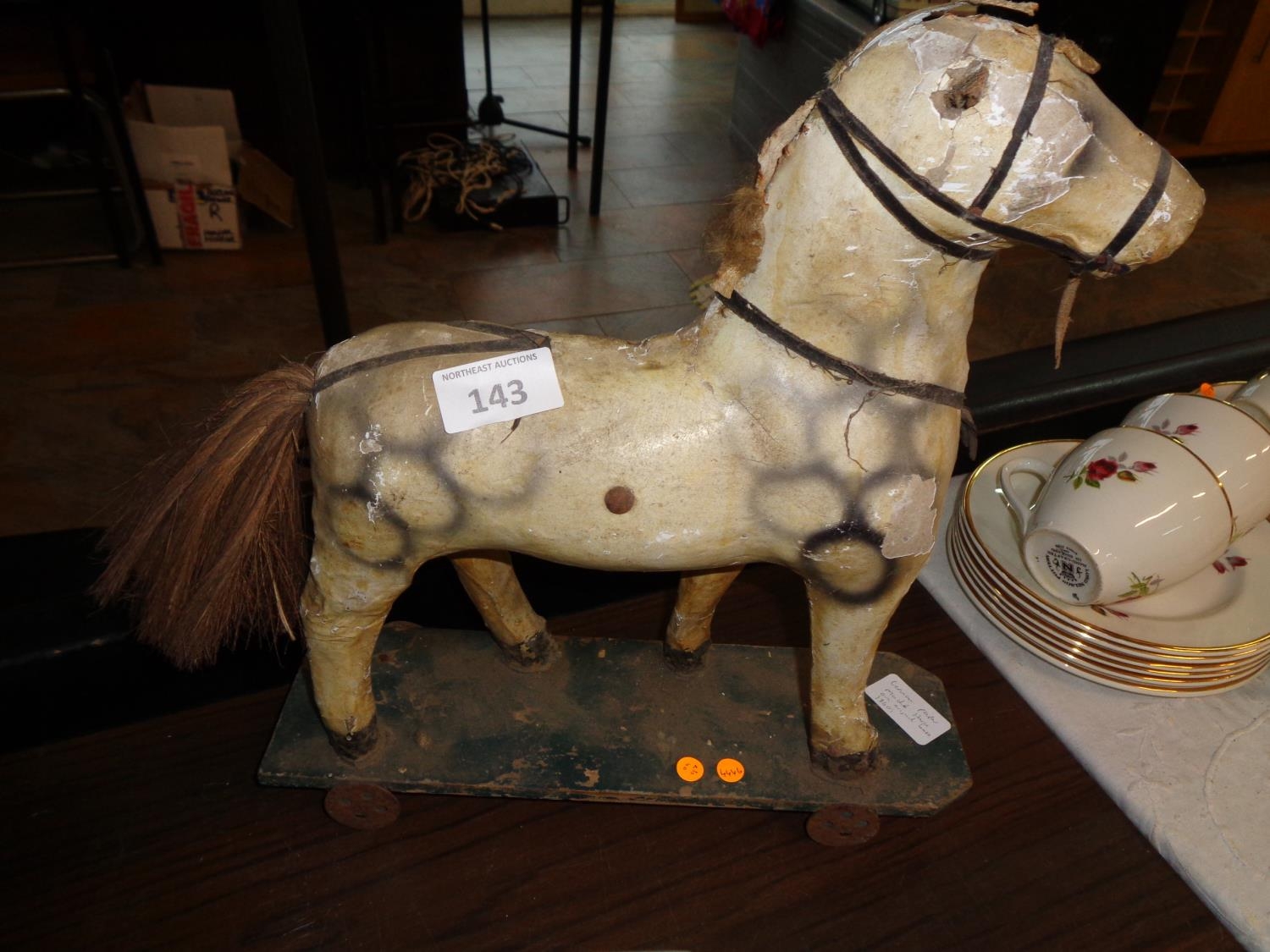 German Paper Mache Horse on Original Base (circa 1860s - 13" x 12")