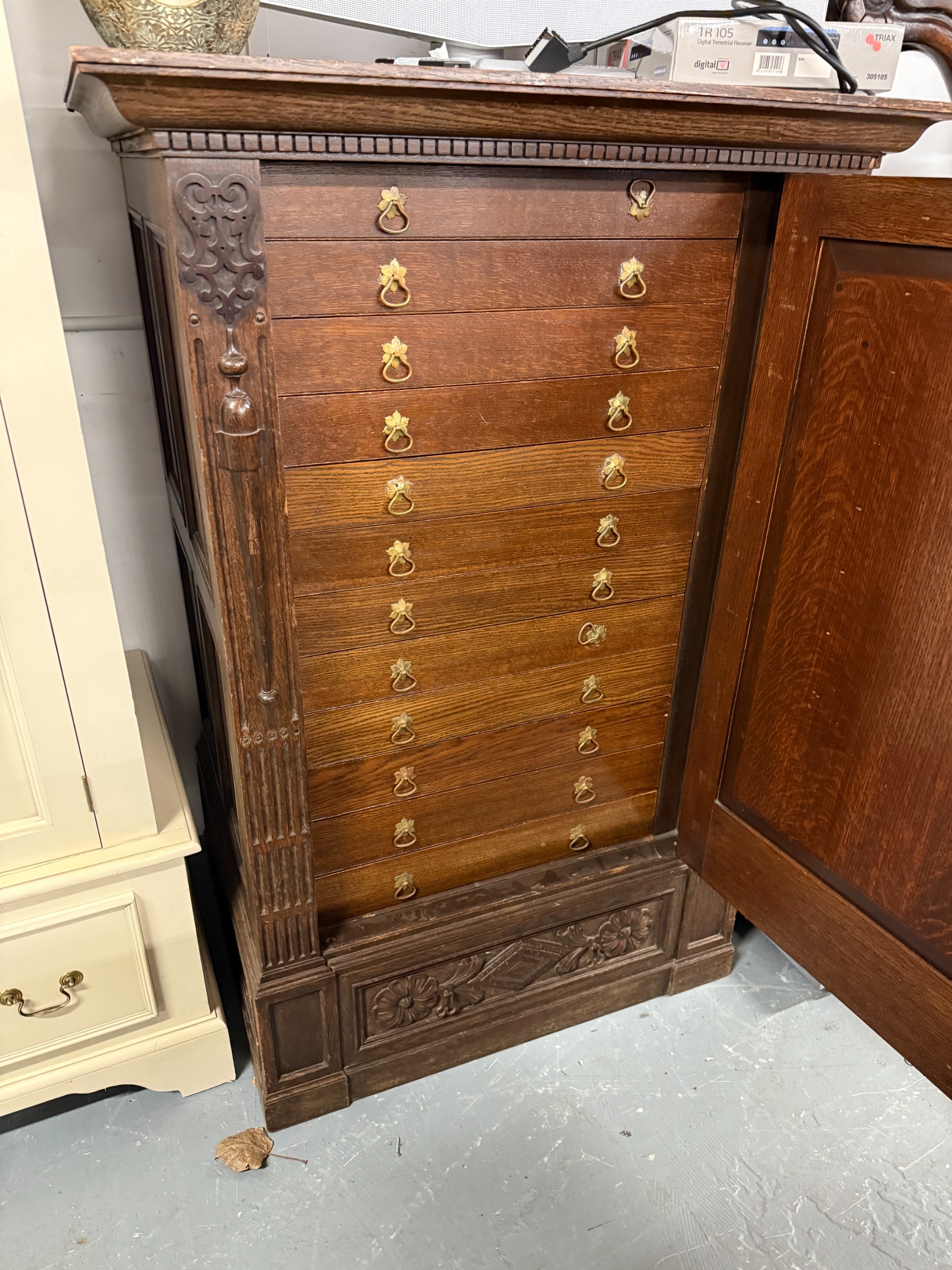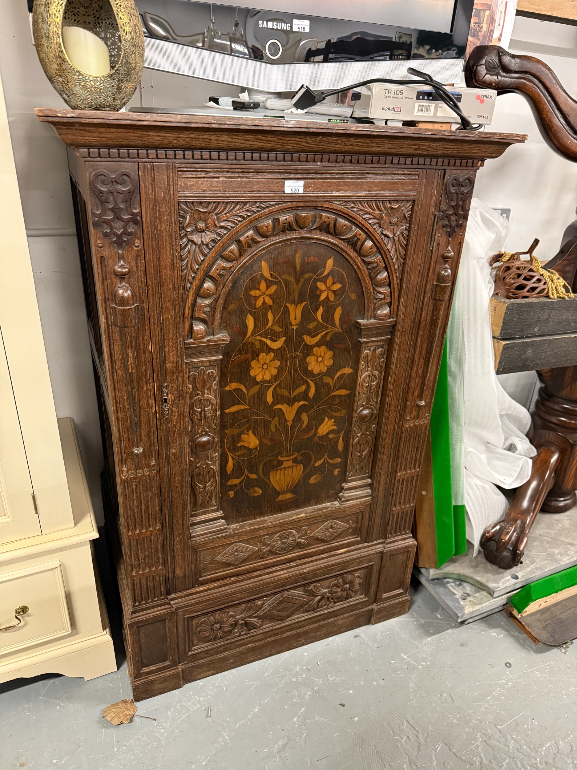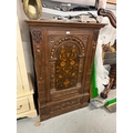 Oak Collectors Cabinet with Carved Panels & Inlaid Door Approx. W 91cm D 69cm H 137cm