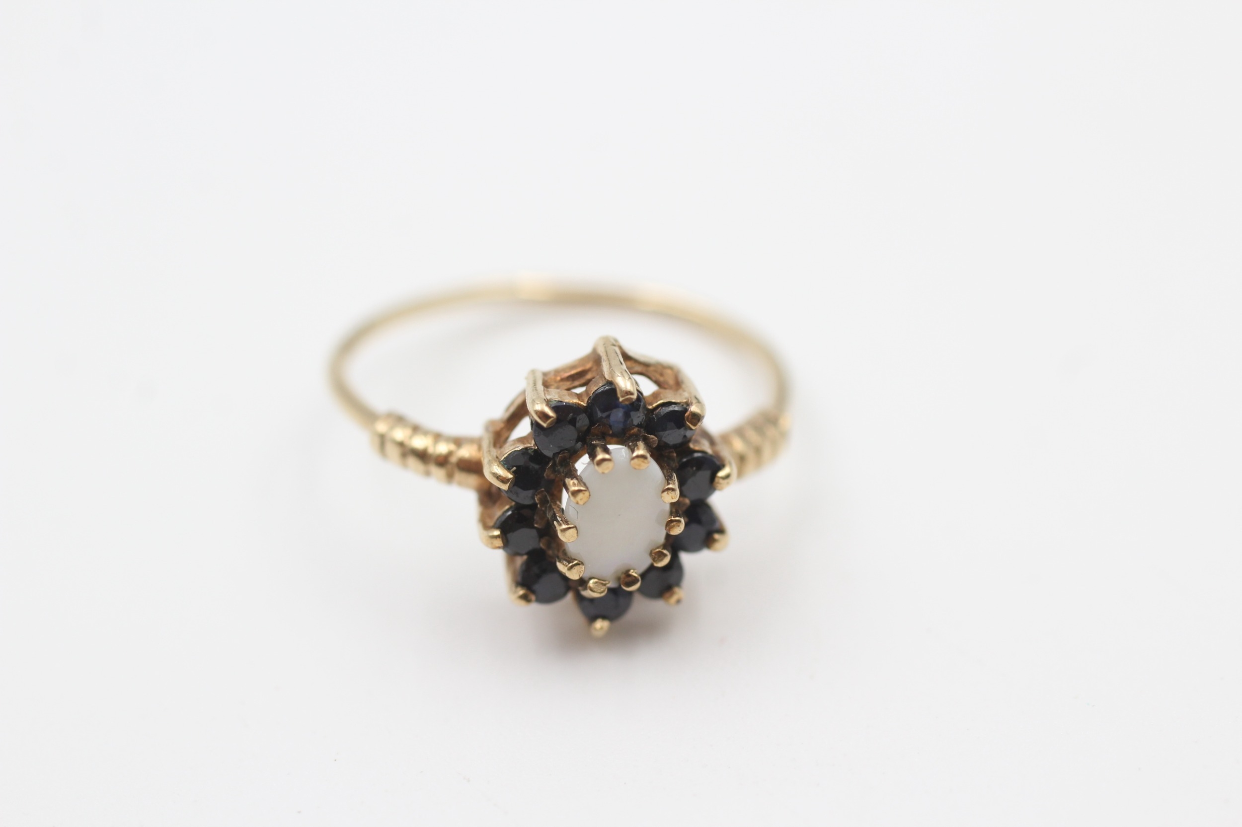 9ct gold opal & sapphire oval cluster ring (1.5g) Size J 1/2