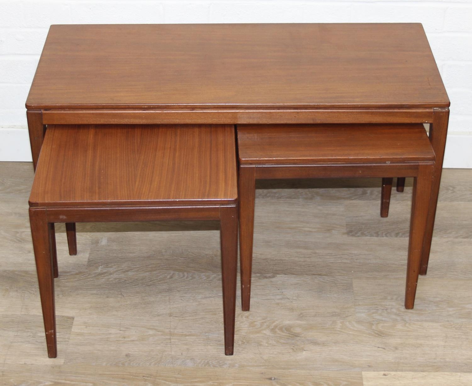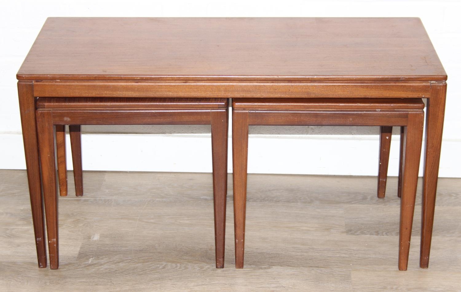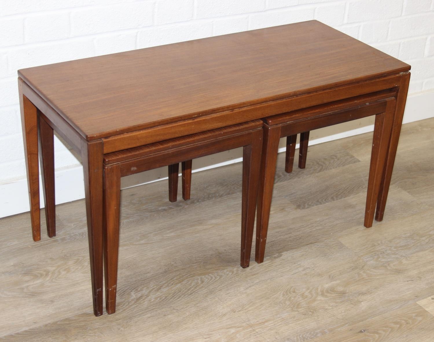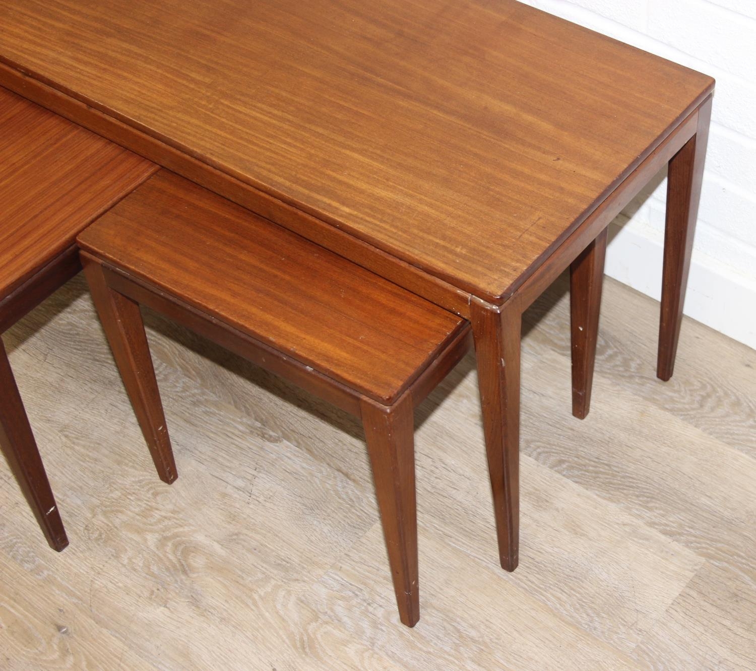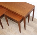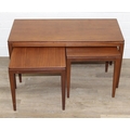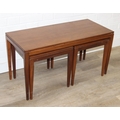 Retro nest of tables, one long with two square under, unmarked but possibly Fyne Layde Afromosia range designed by Richard Hornby, the larger table 84cm x 38cm x 45cm