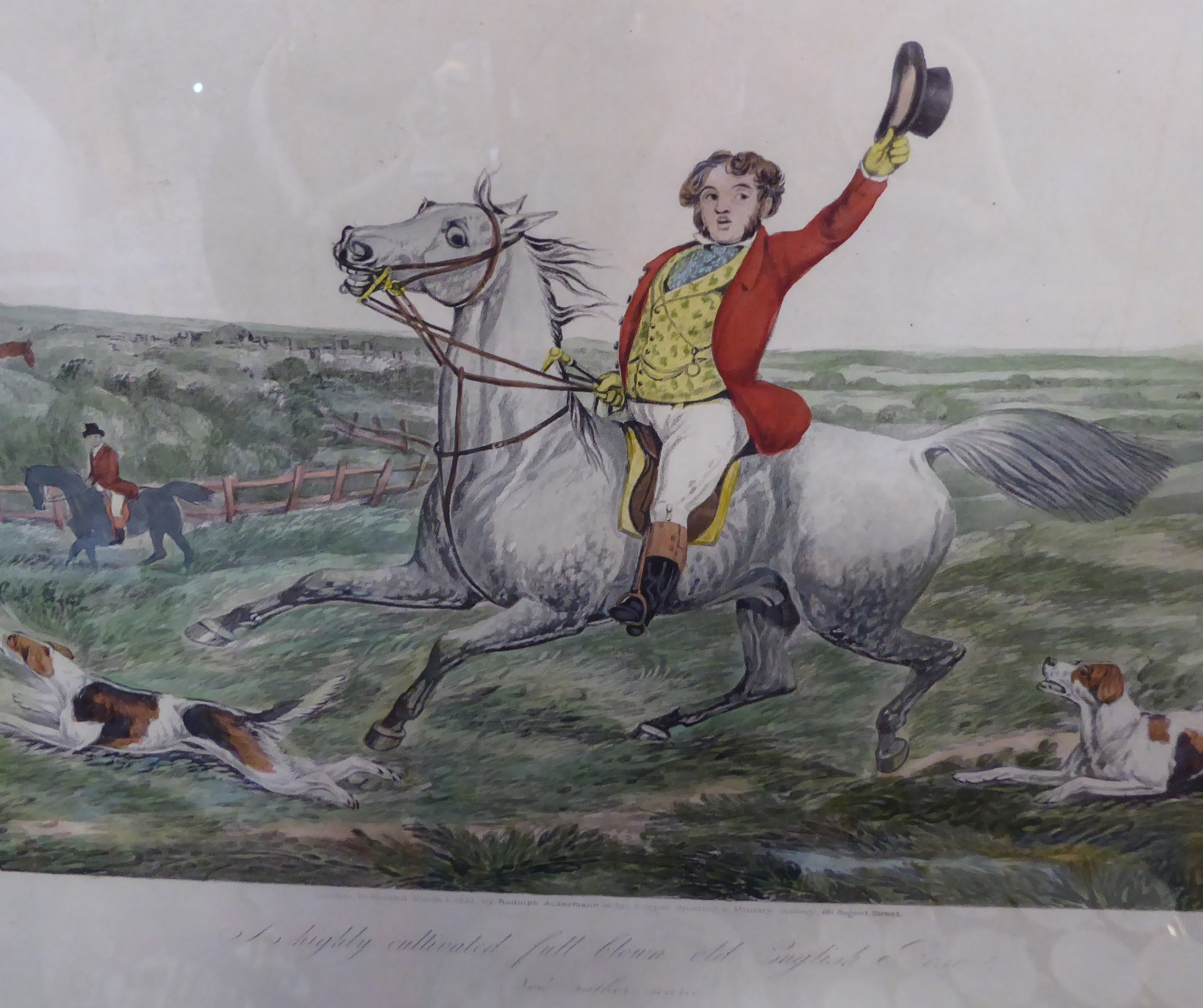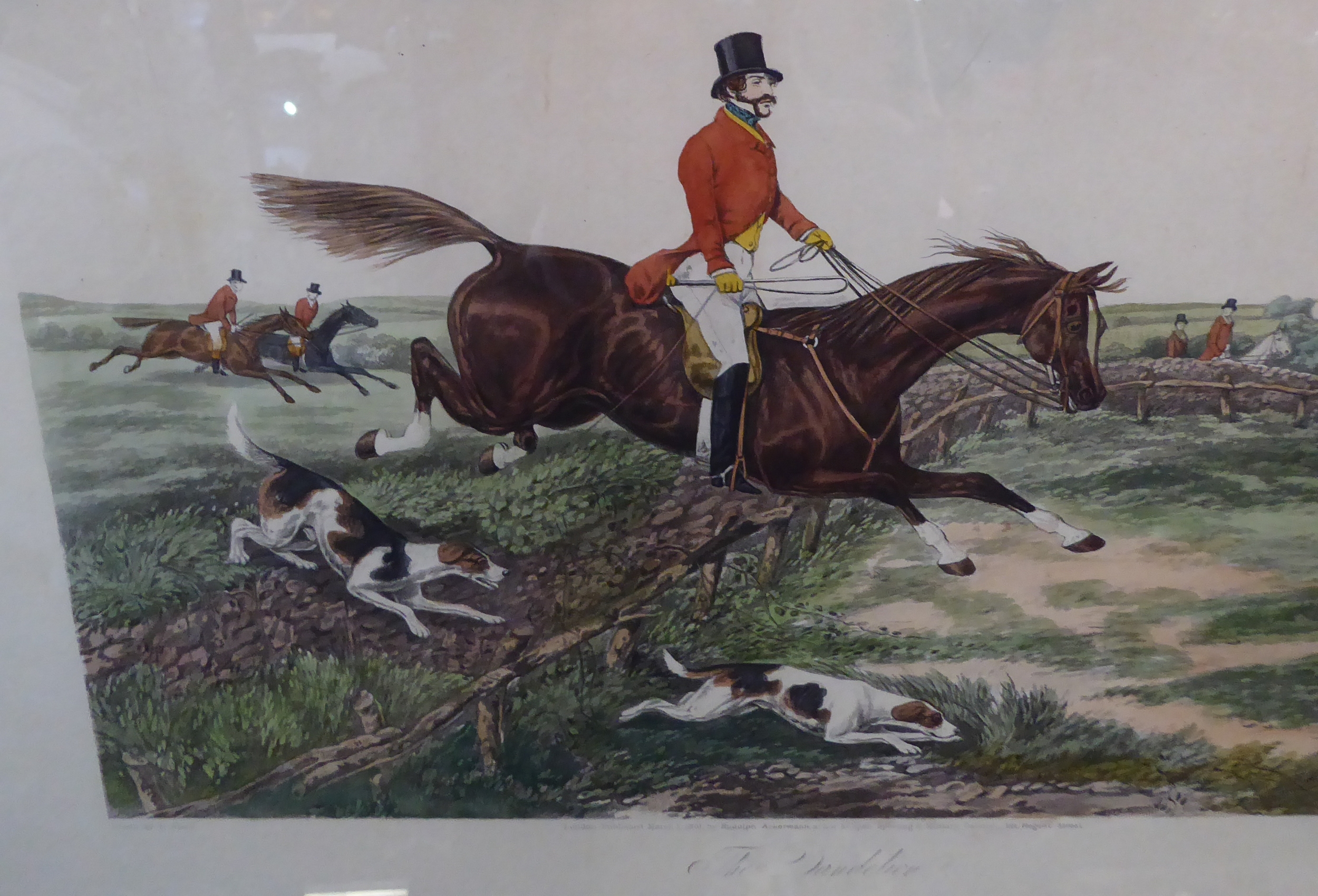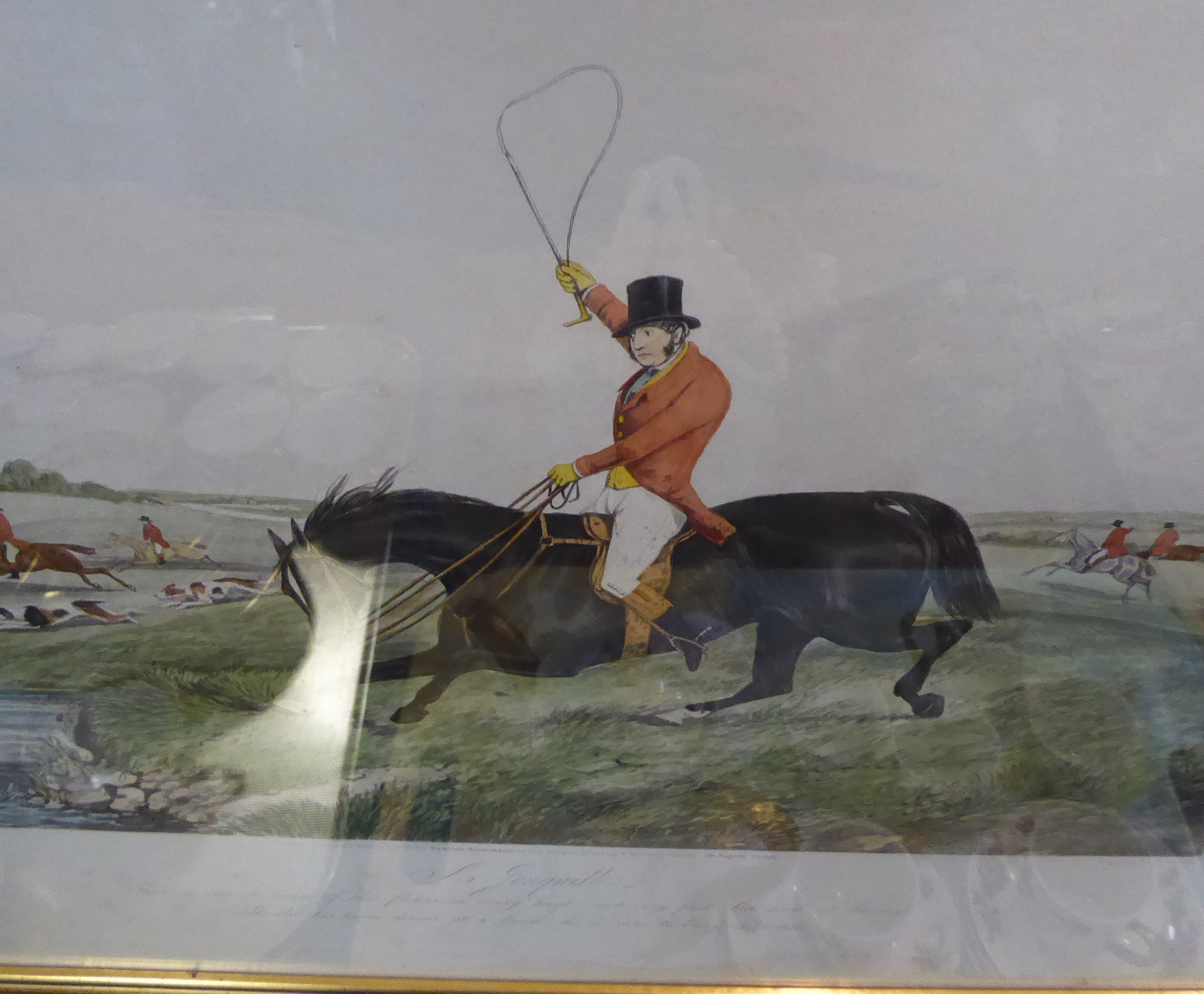 After HENRY ALKEN - a good set of six mid-19th century hand-coloured engravings, 'One of the Flowers of Our Hunt'. Published 1851 by Rudolf Ackermann - 191 Regent St., London. Engraved by J. Harris. Later glazed gilt frames. (Plate sizes 37 x 45.5 cm)