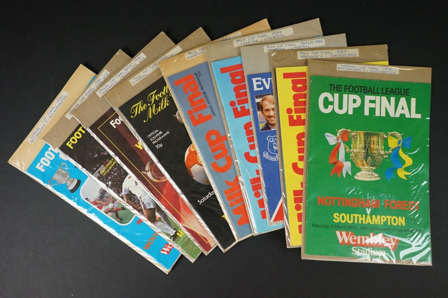 Large run of League Cup Final football programmes