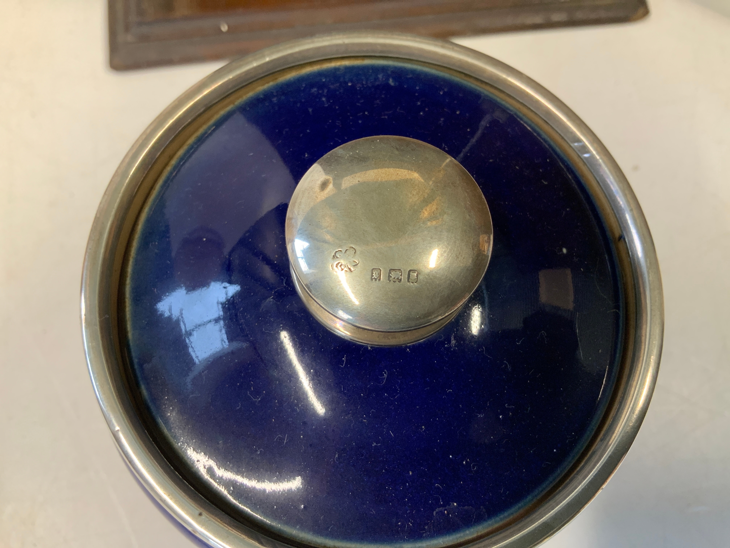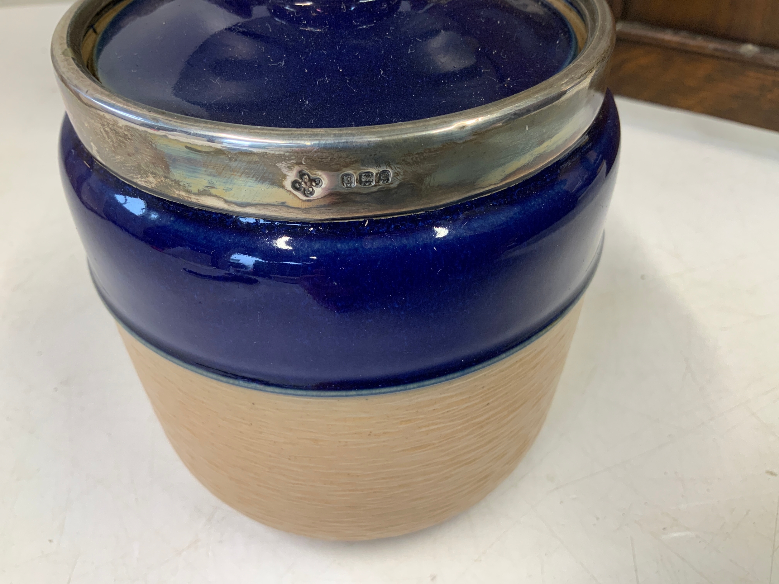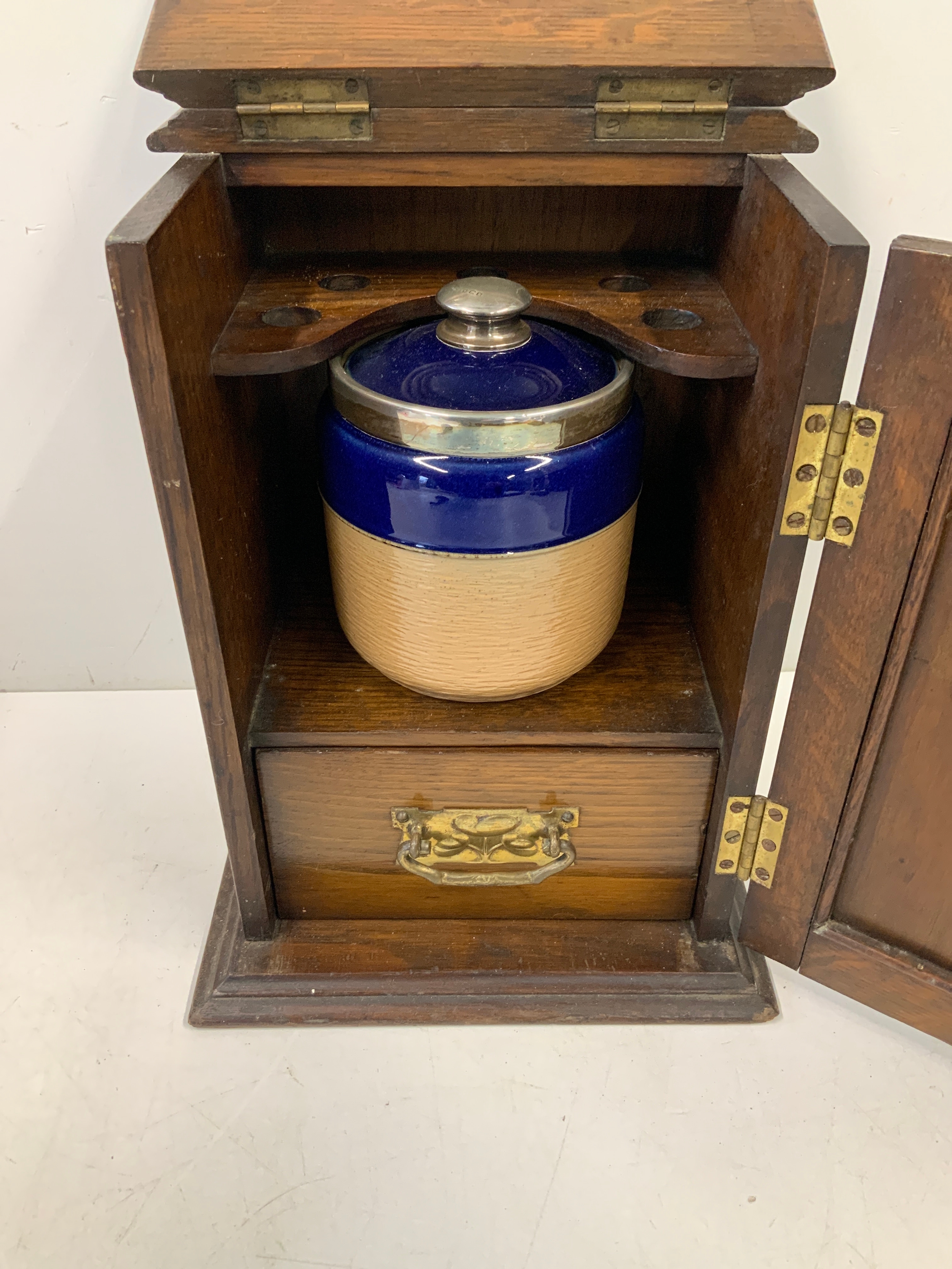 Smokers Cabinet with Silver Mounted Doulton Jar