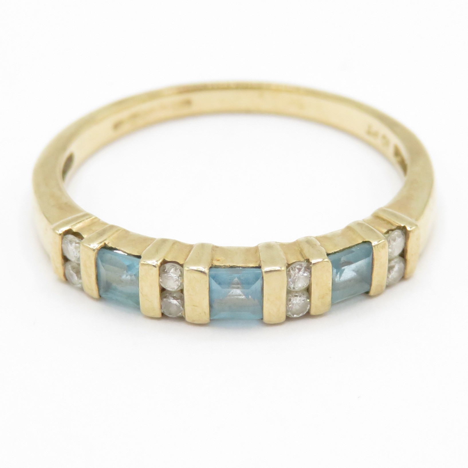 9ct gold topaz & diamond half eternity ring (1.9g) Size P