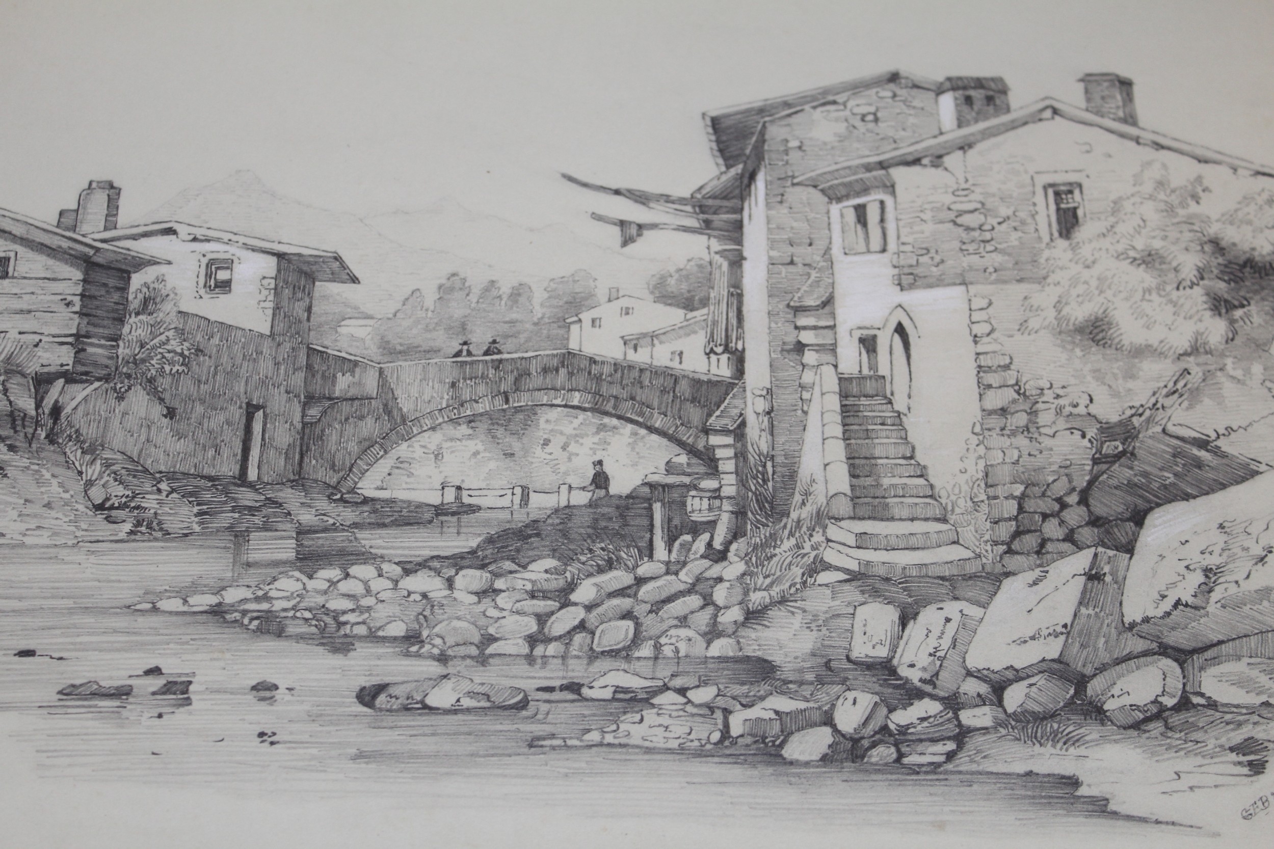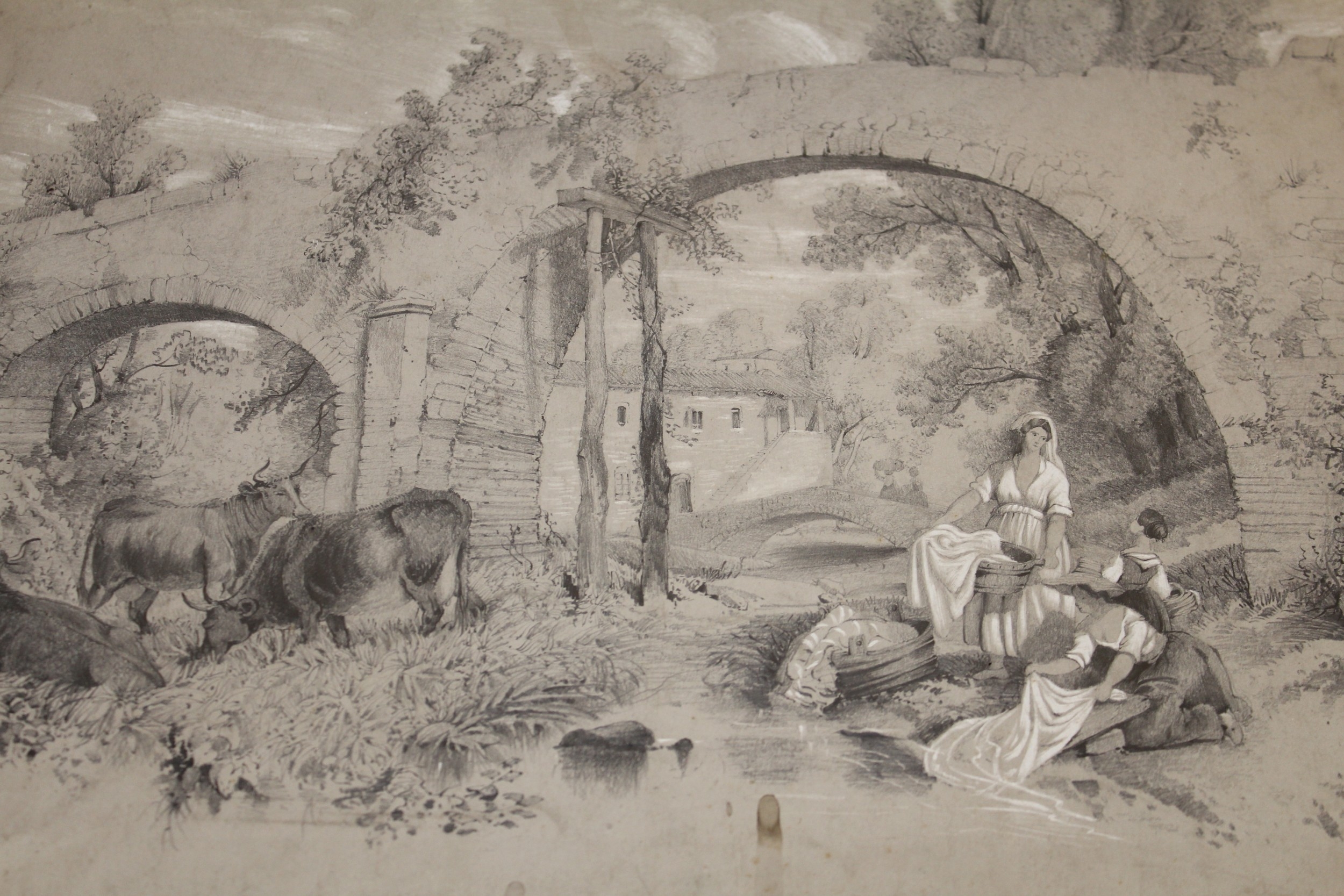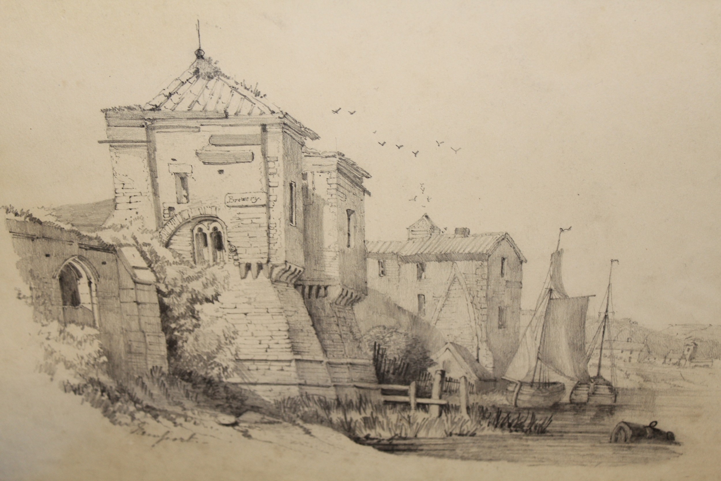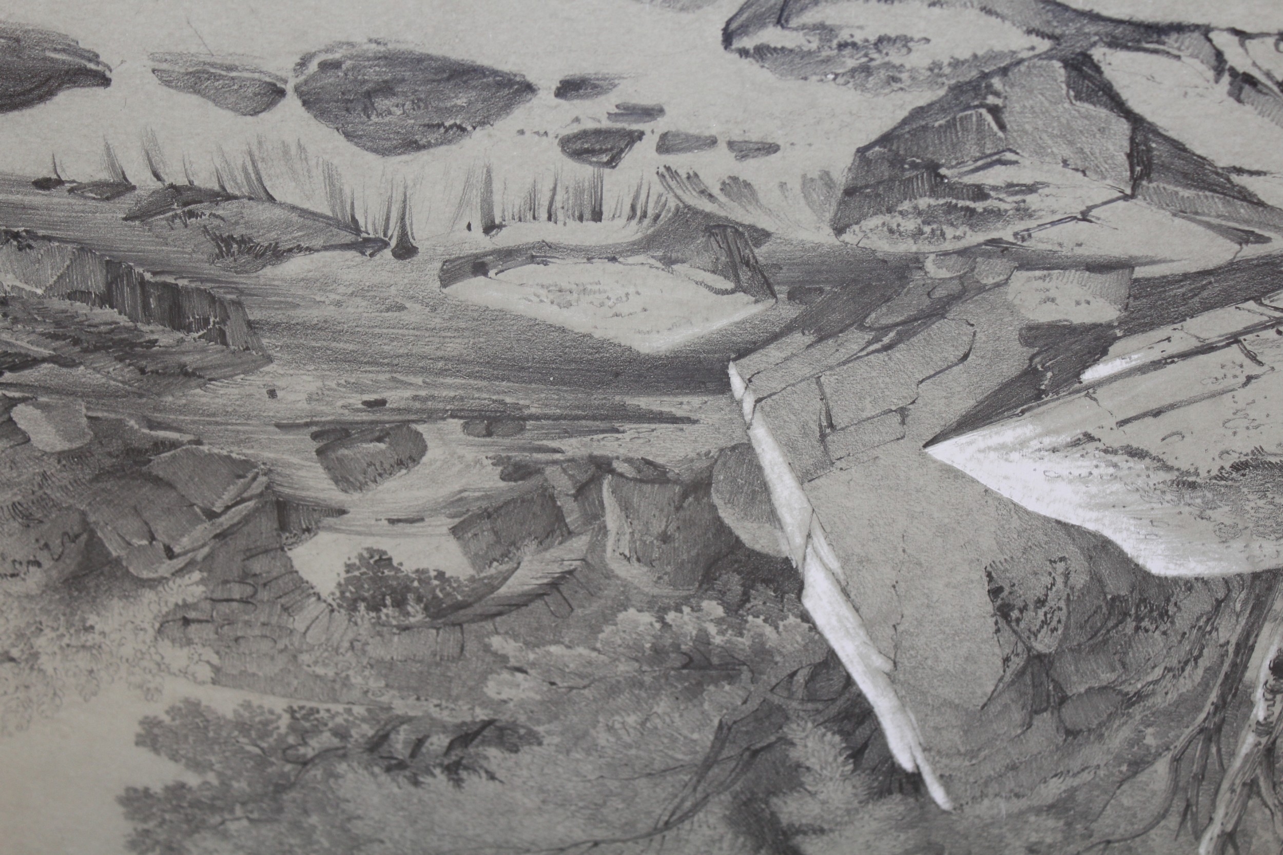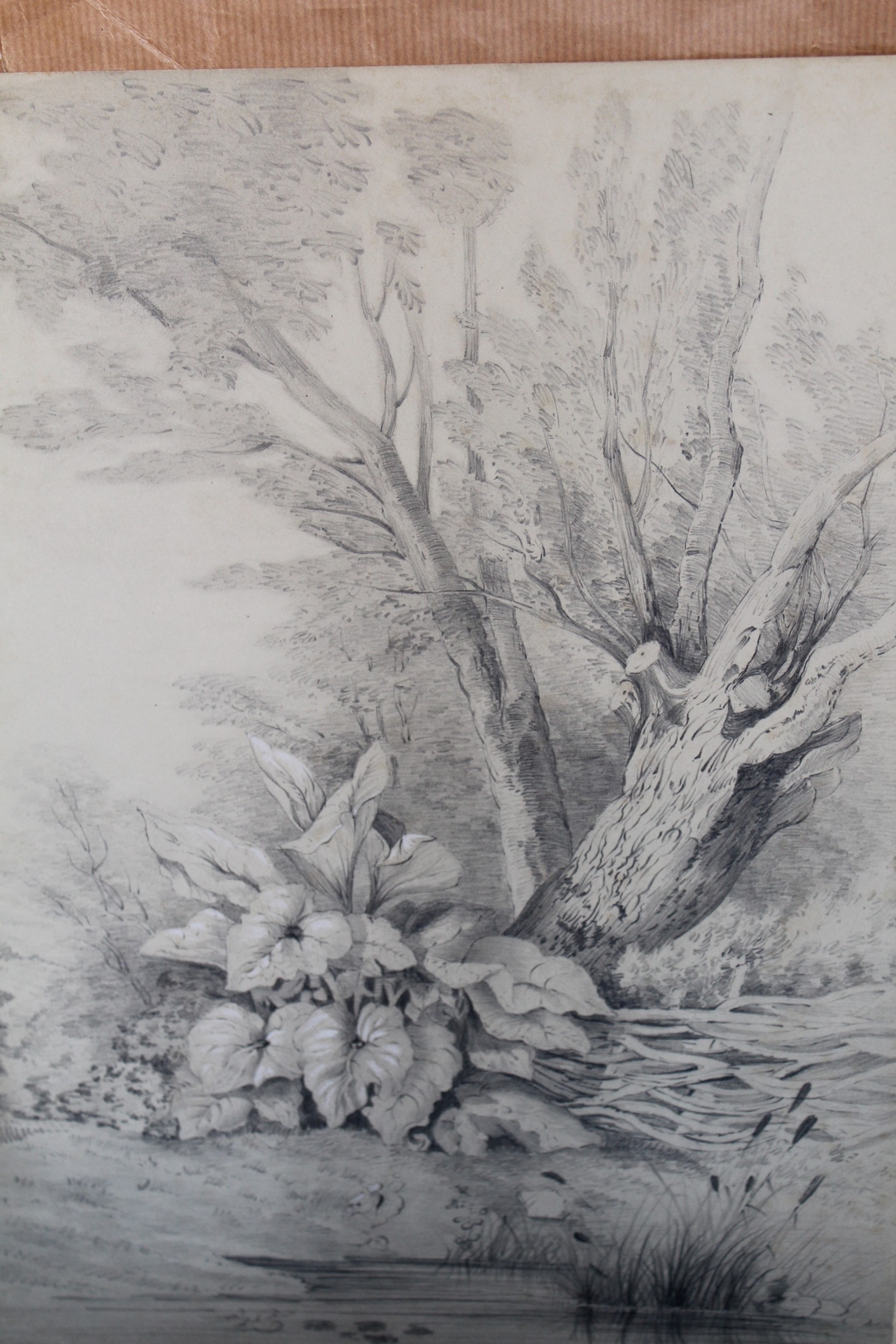 Folder containing a collection of various 19th Century pencil drawings