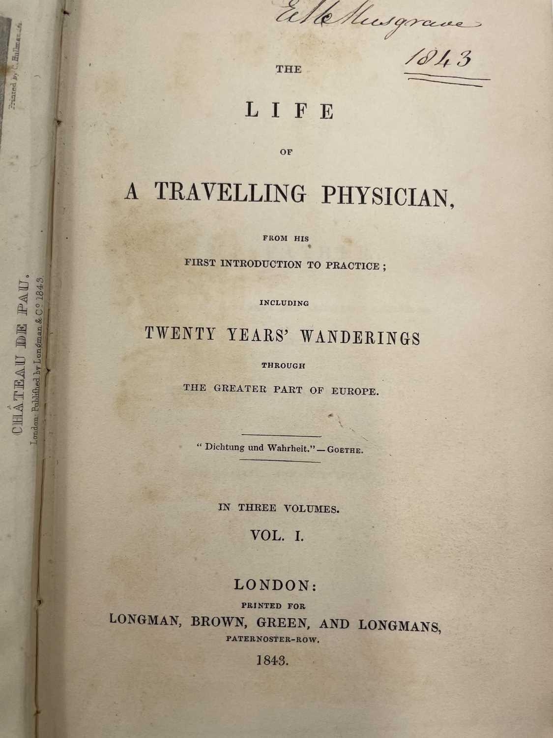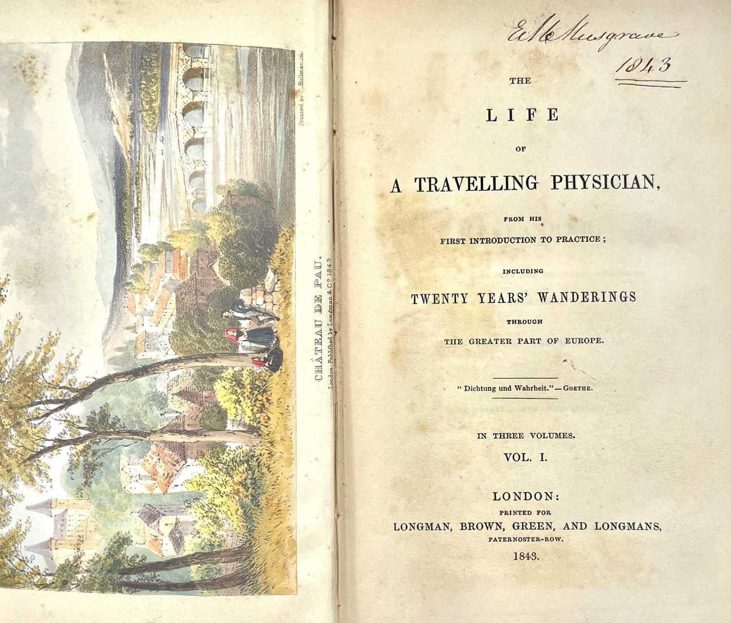 Sir GEORGE WILLIAM LEFEVRE. 'Life of a Travelling Physician,' three vols, cloth (fine copy), colour frontispiece engravings, Longman, Brown, Green, and Longmans, London, 1843. (3)
