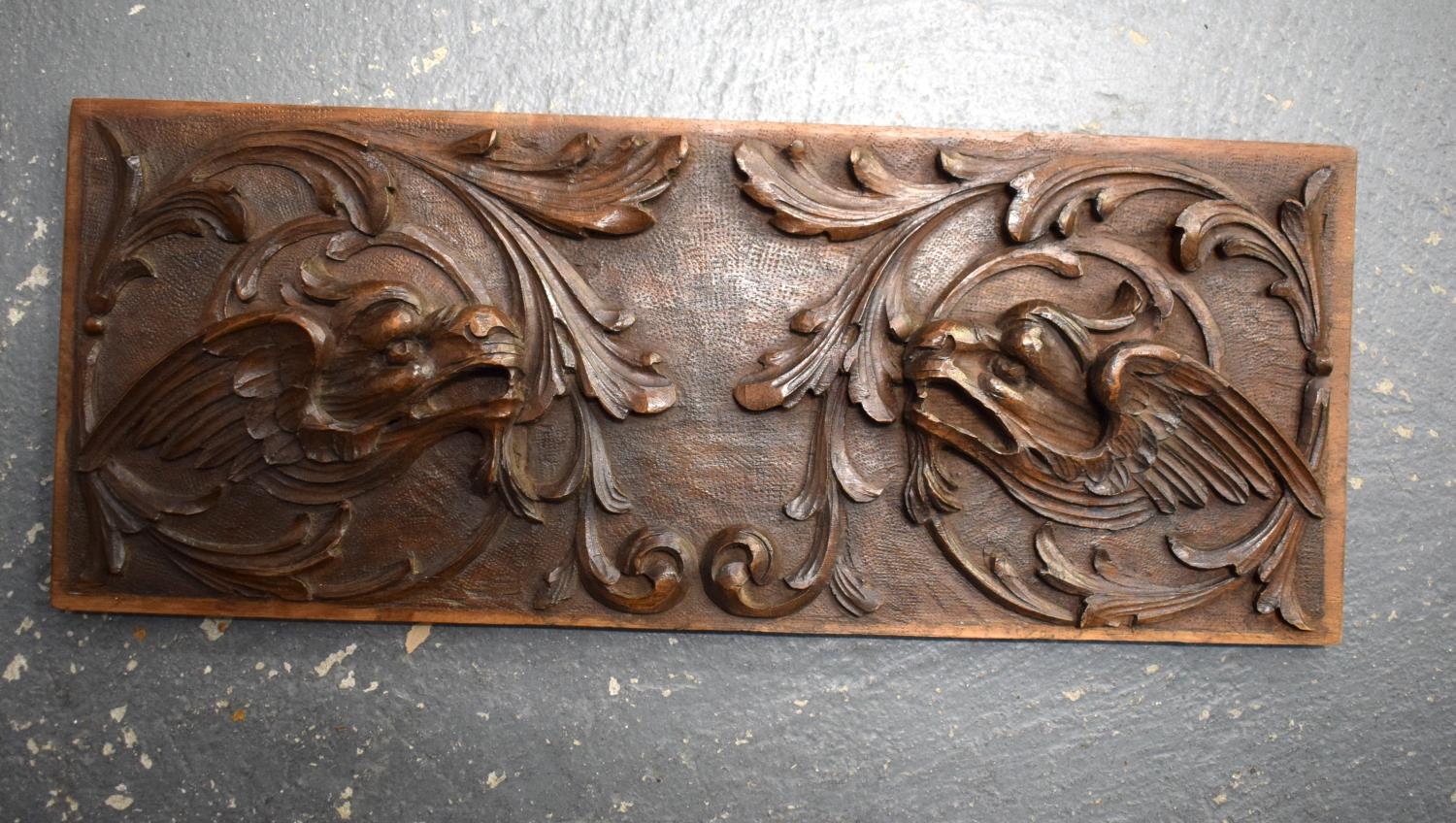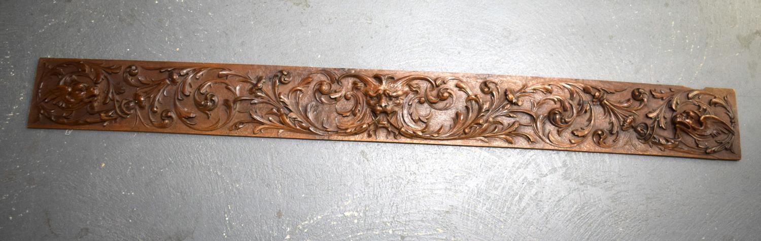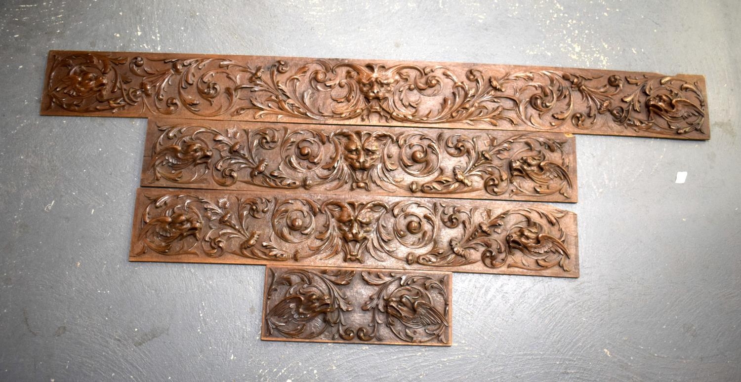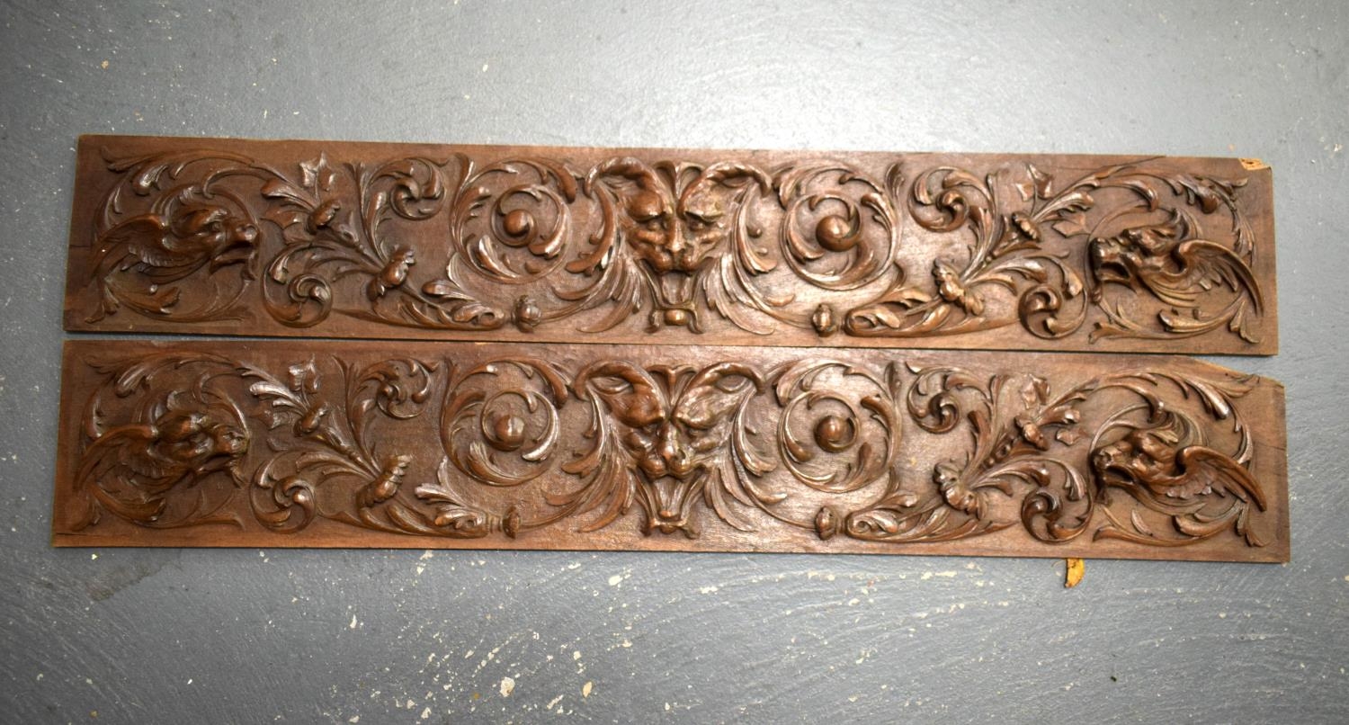 A COLLECTION OF 19TH CENTURY CONTINENTAL CARVED WOOD PANELS possibly Italian. Largest 153 cm x 16 cm. (3)