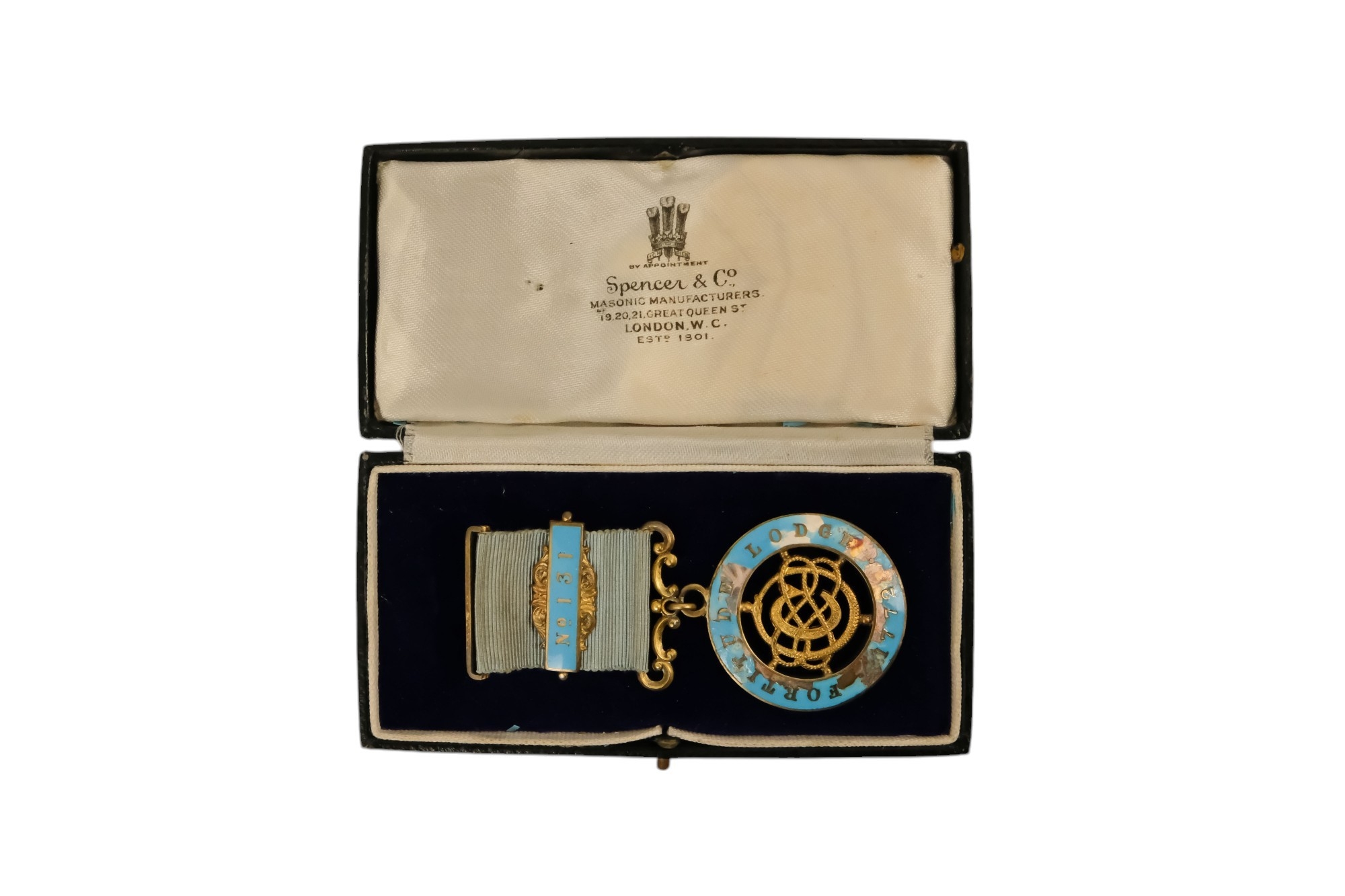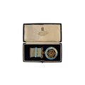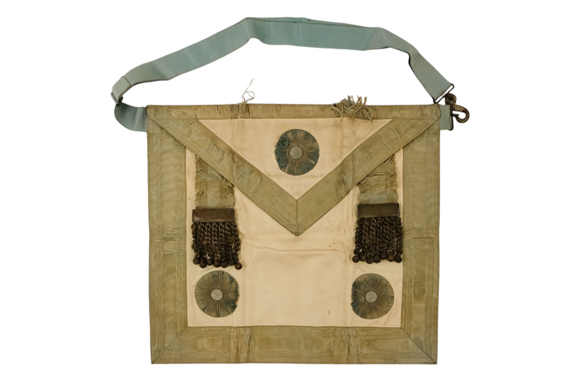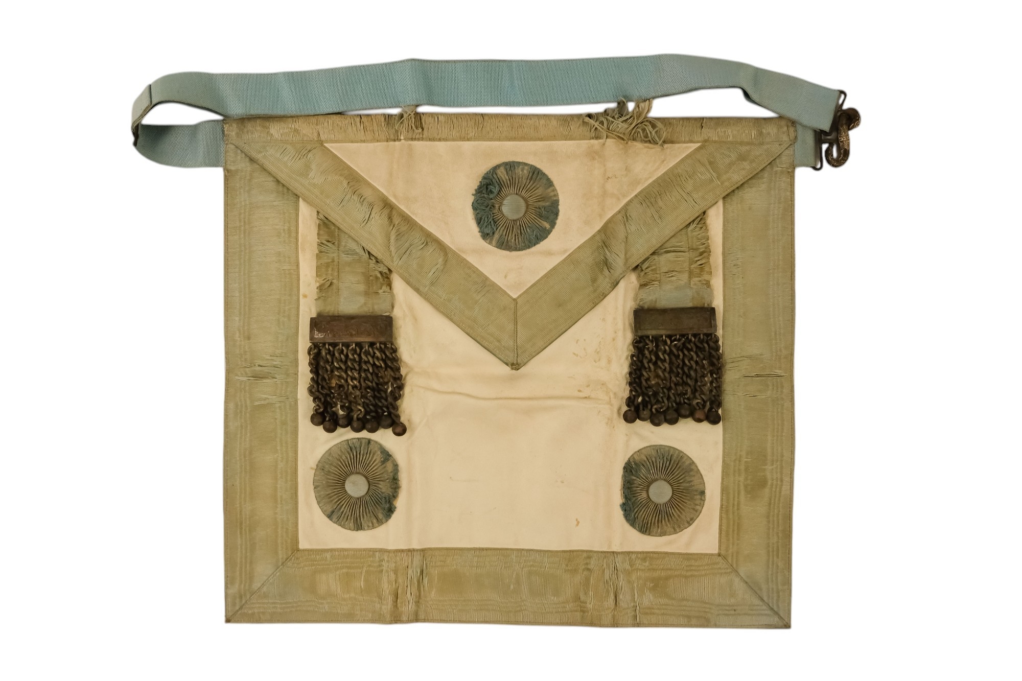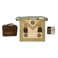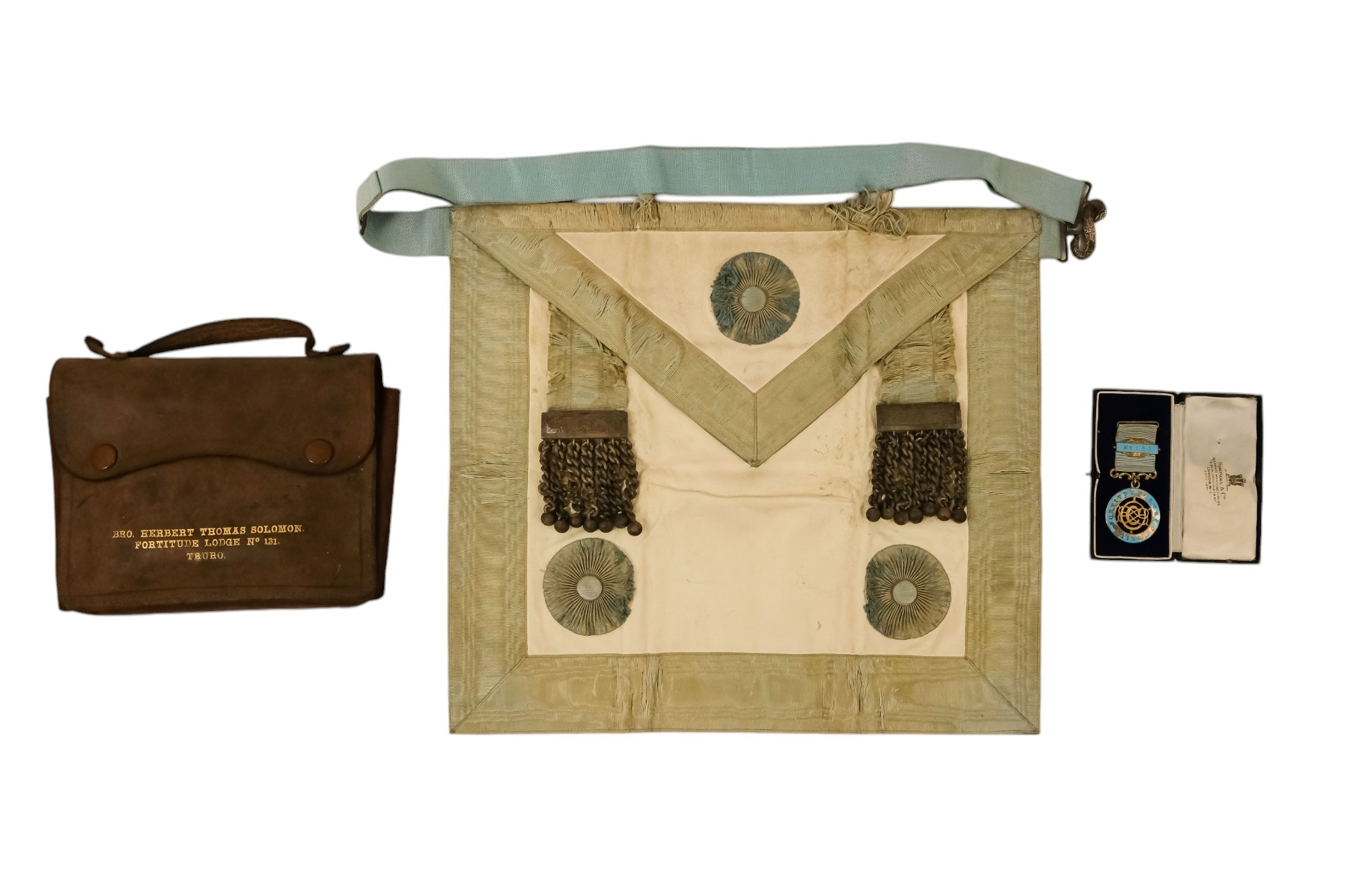 A masonic apron - together with silver and enamel jewel, presented with brown leather pouch.