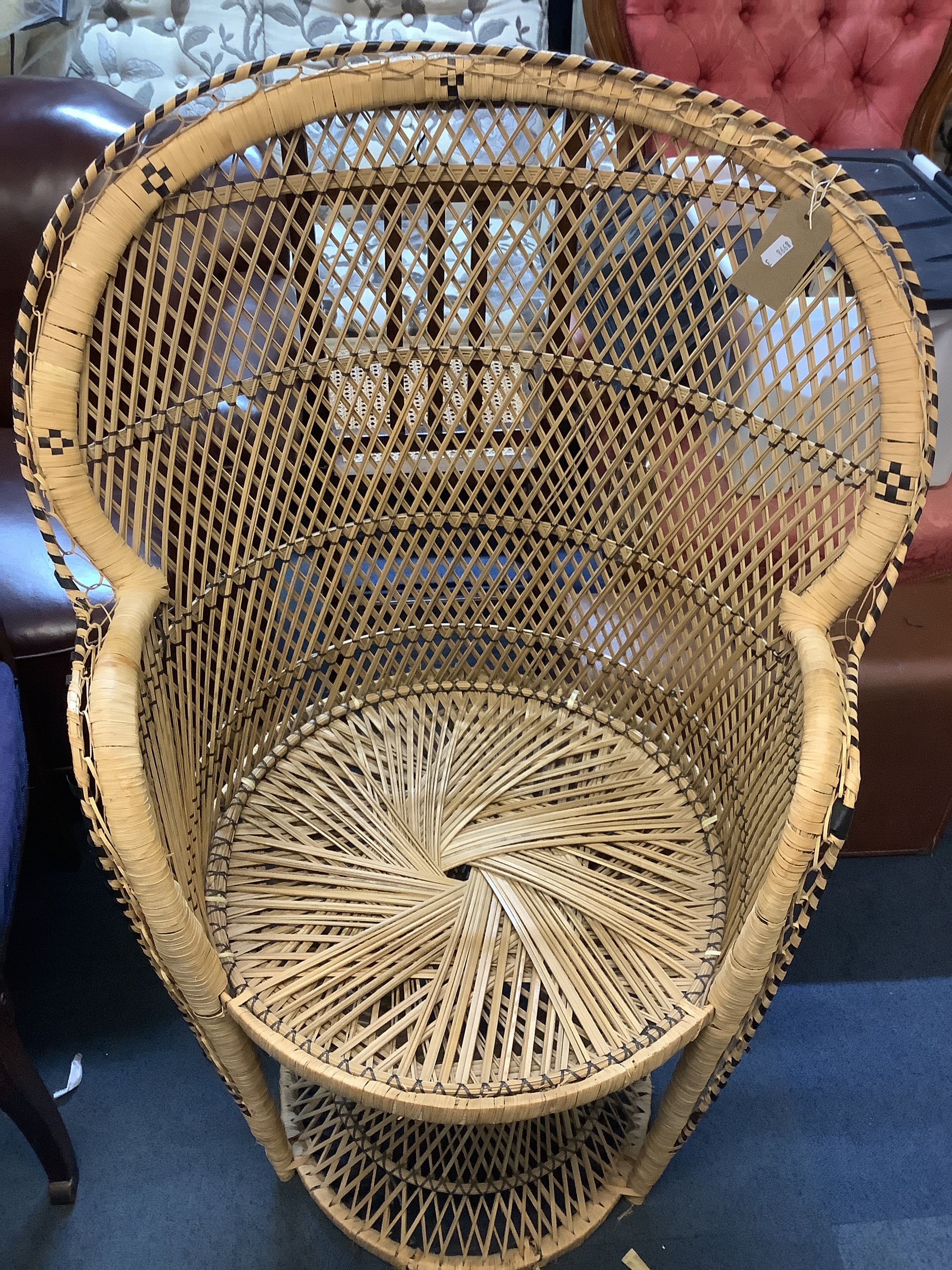 A wicker peacock chair