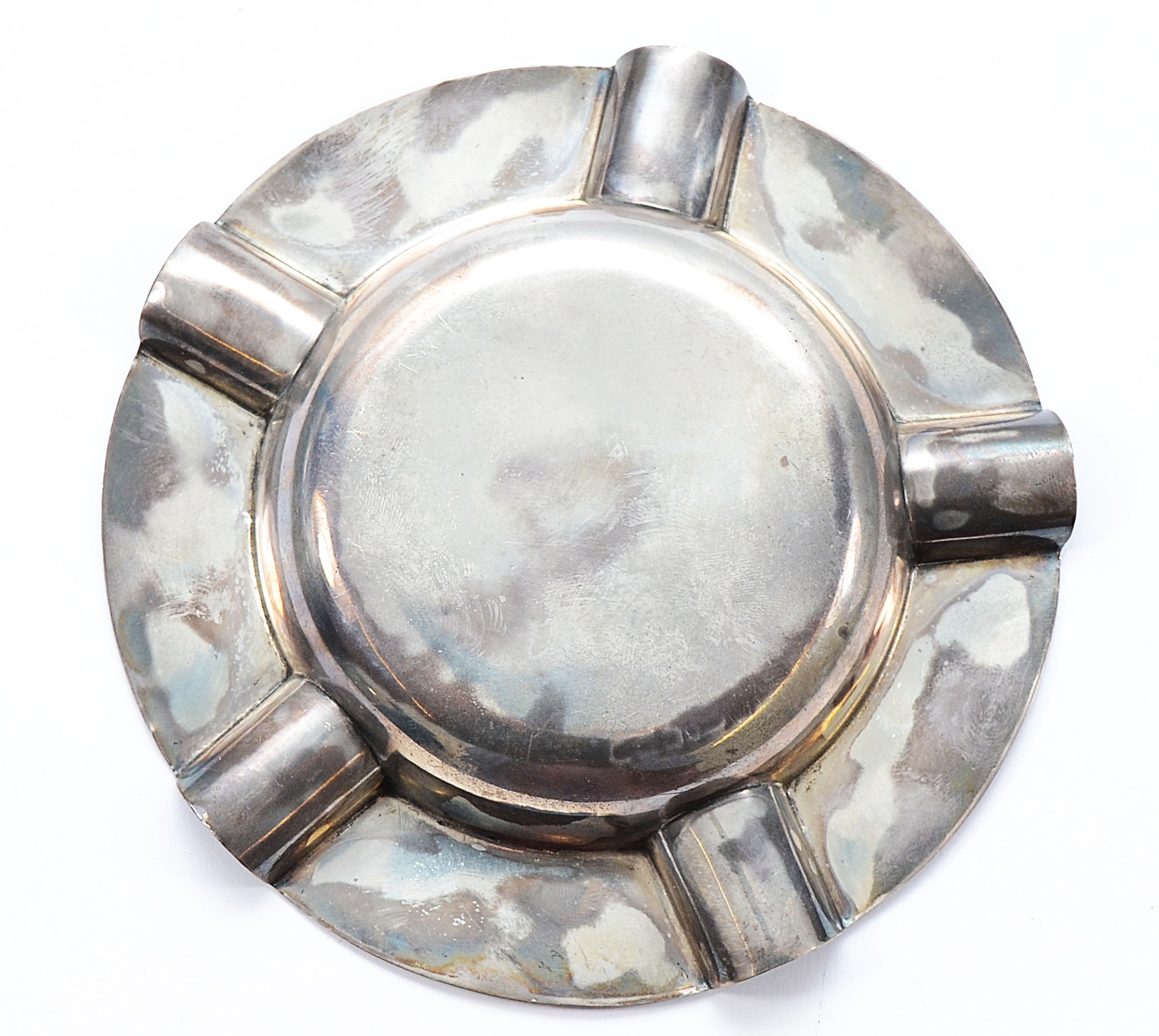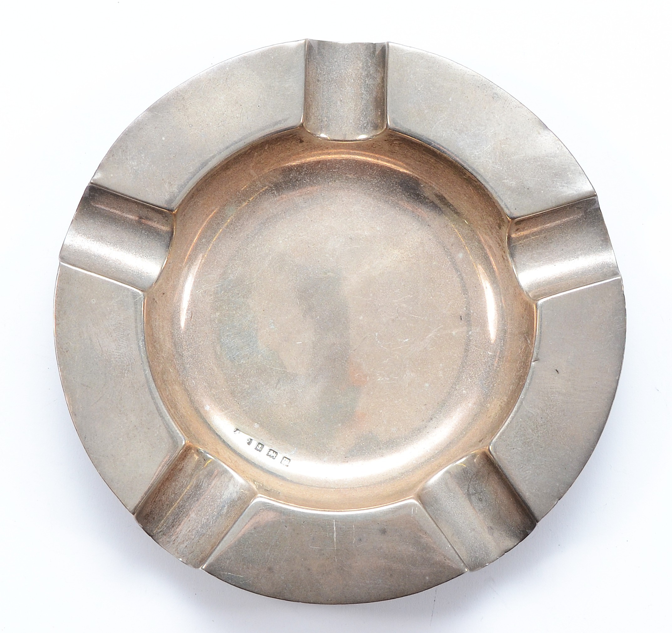 A silver circular ashtray having five cigarette rests, Birmingham 1911, 84gm, 13cm.