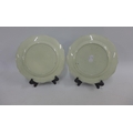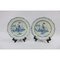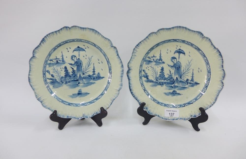Pair of pearlware blue and white feather edged plates with long Eliza pattern, 25cm diameter (2)