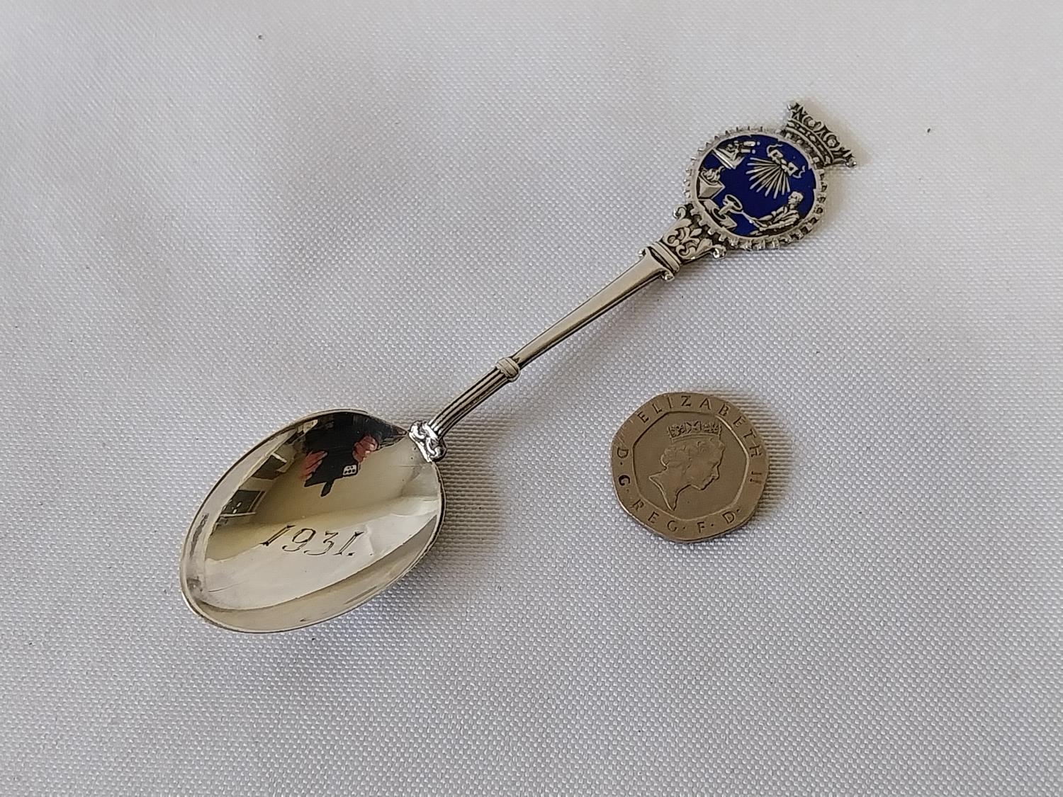 HM Silver & enamelled spoon c1931
