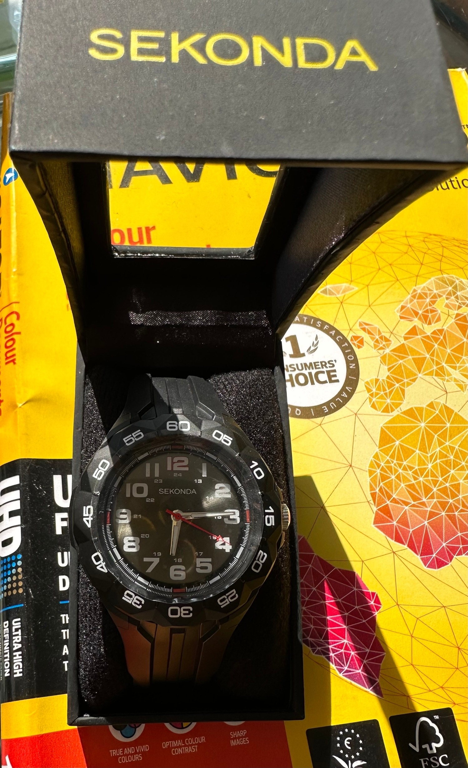 SEKONDA gents / unisex divers watch, black with white numerals and adjustable silicon strap, 100m