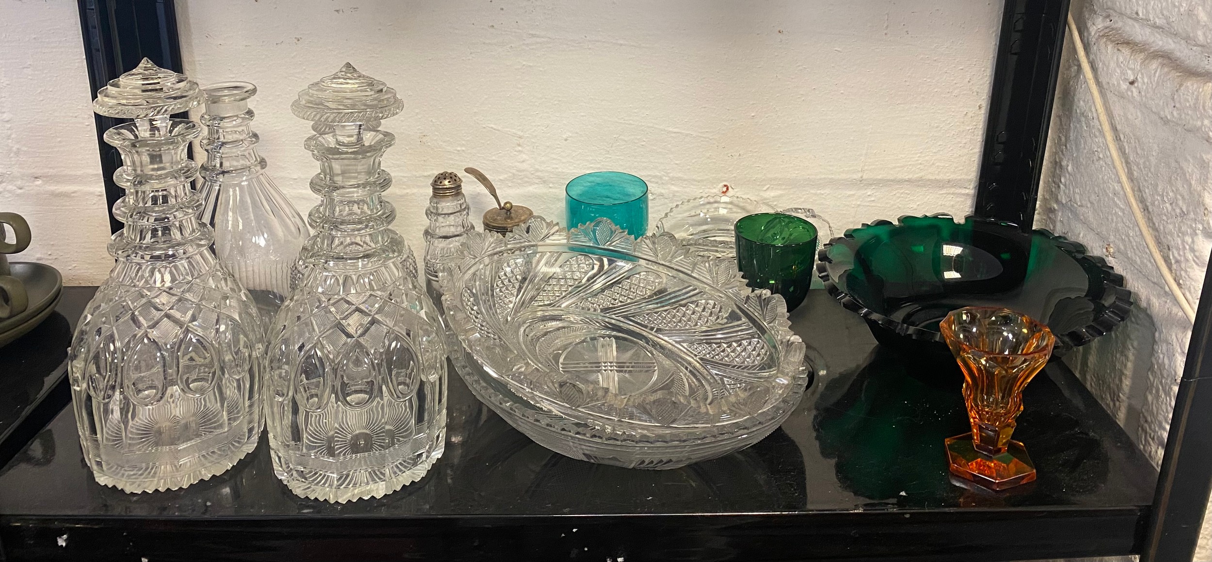 A pair of 19th century cut glass decanters and other glasses -