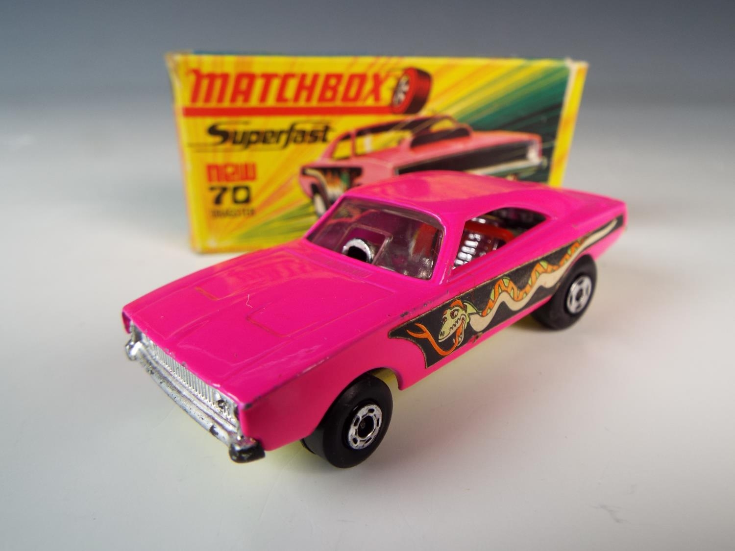 1970's Matchbox Superfast Dodge Dragster. Model 70. Original box in good condition. Very light playworn only.
