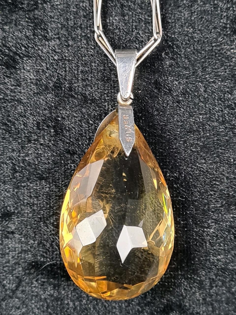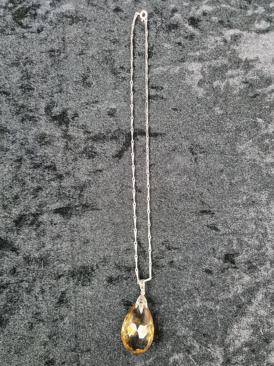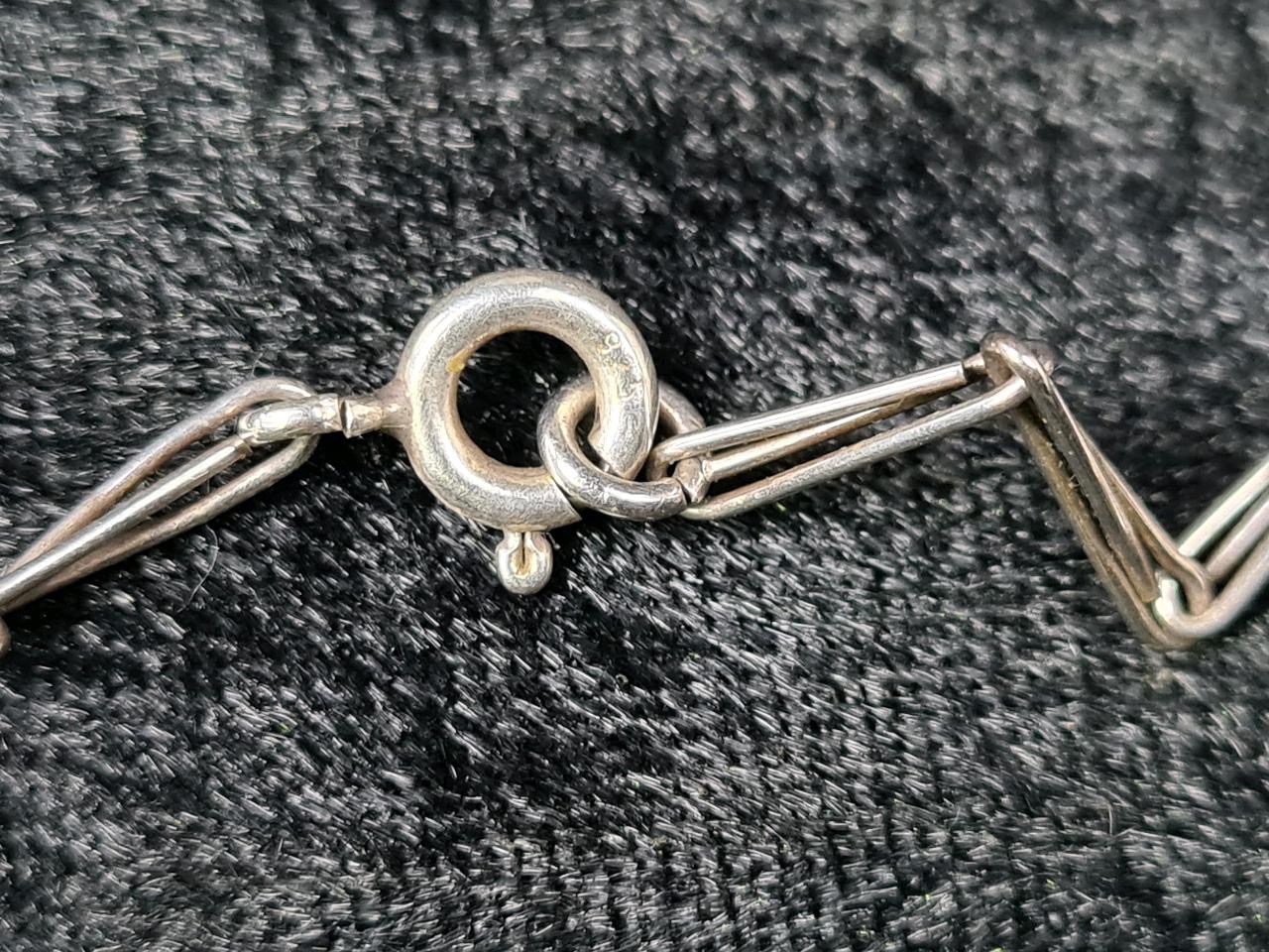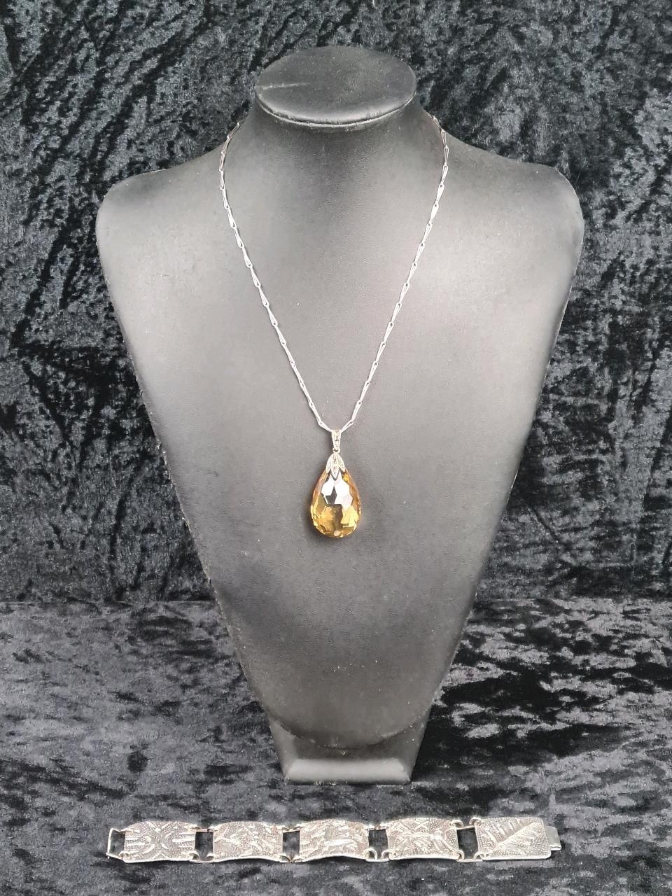 Unmarked white bracelet (clasp a/f) and a silver mounted pendant on a white metal chain