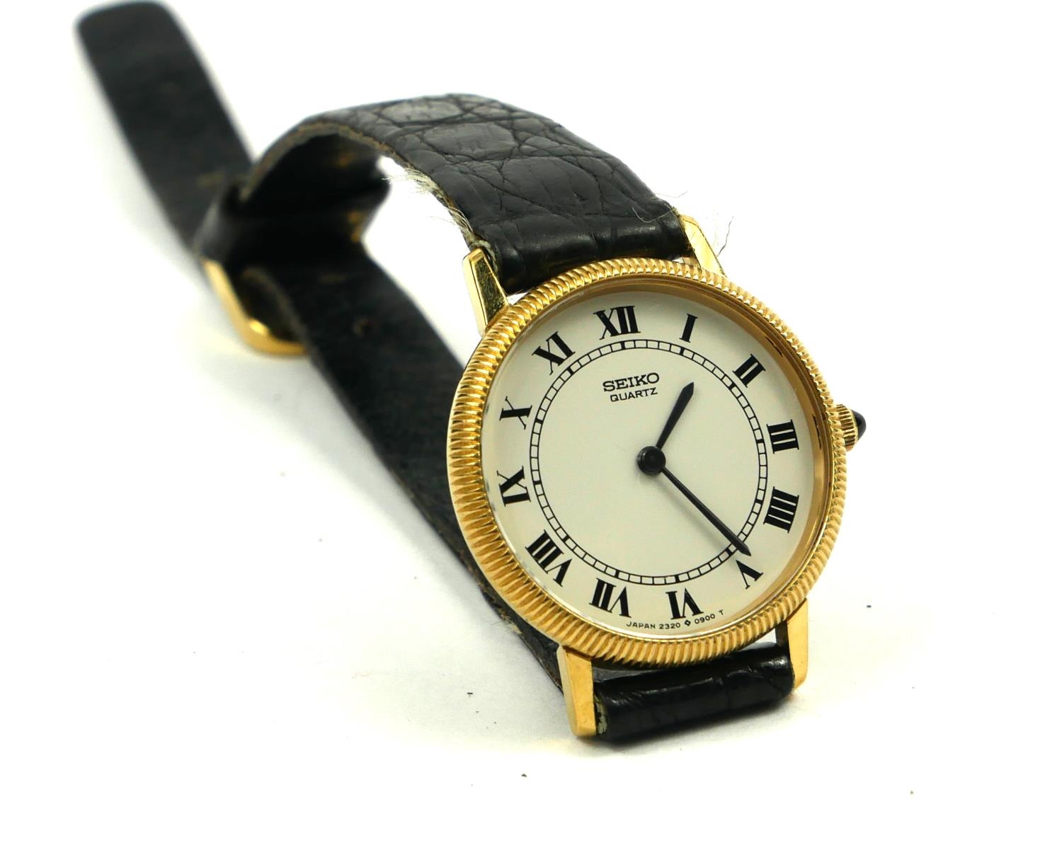 SEIKO, A GOLD PLATED LADIES’ WATCH WITH A SAPPHIRE WINDER