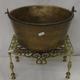 Brass Preserving Pan with iron swing handle & Large Pierced Brass Trivet on turned brass supports