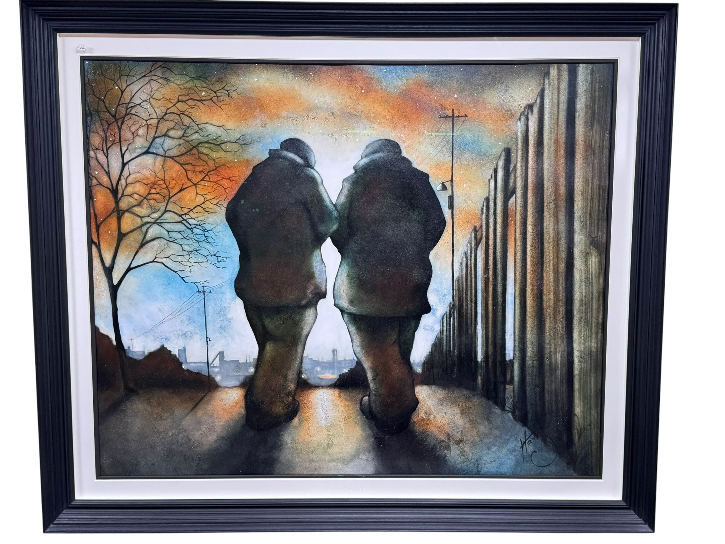 Lou Harris, Brothers, acrylic on board, signed lower right, 110cm by 131cm, including frame. *ARR (Artists Resale Royalty Charge) may apply to this lot*.