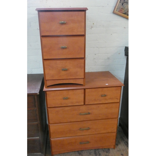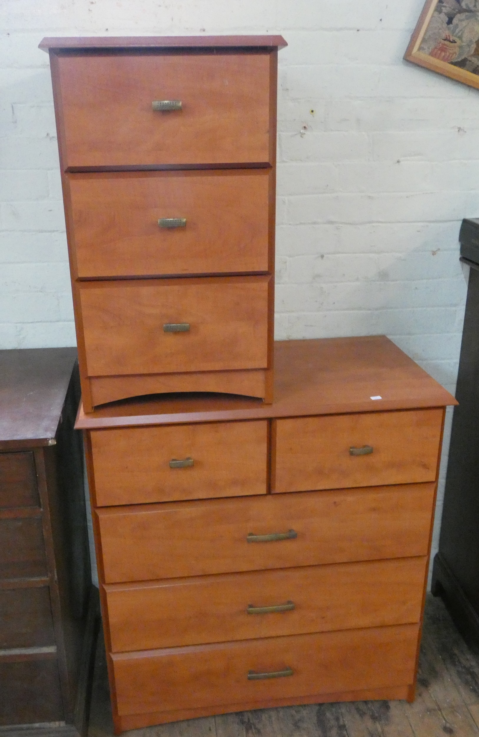A modern mahogany chest of four long drawers and a matching three drawer bedside chest