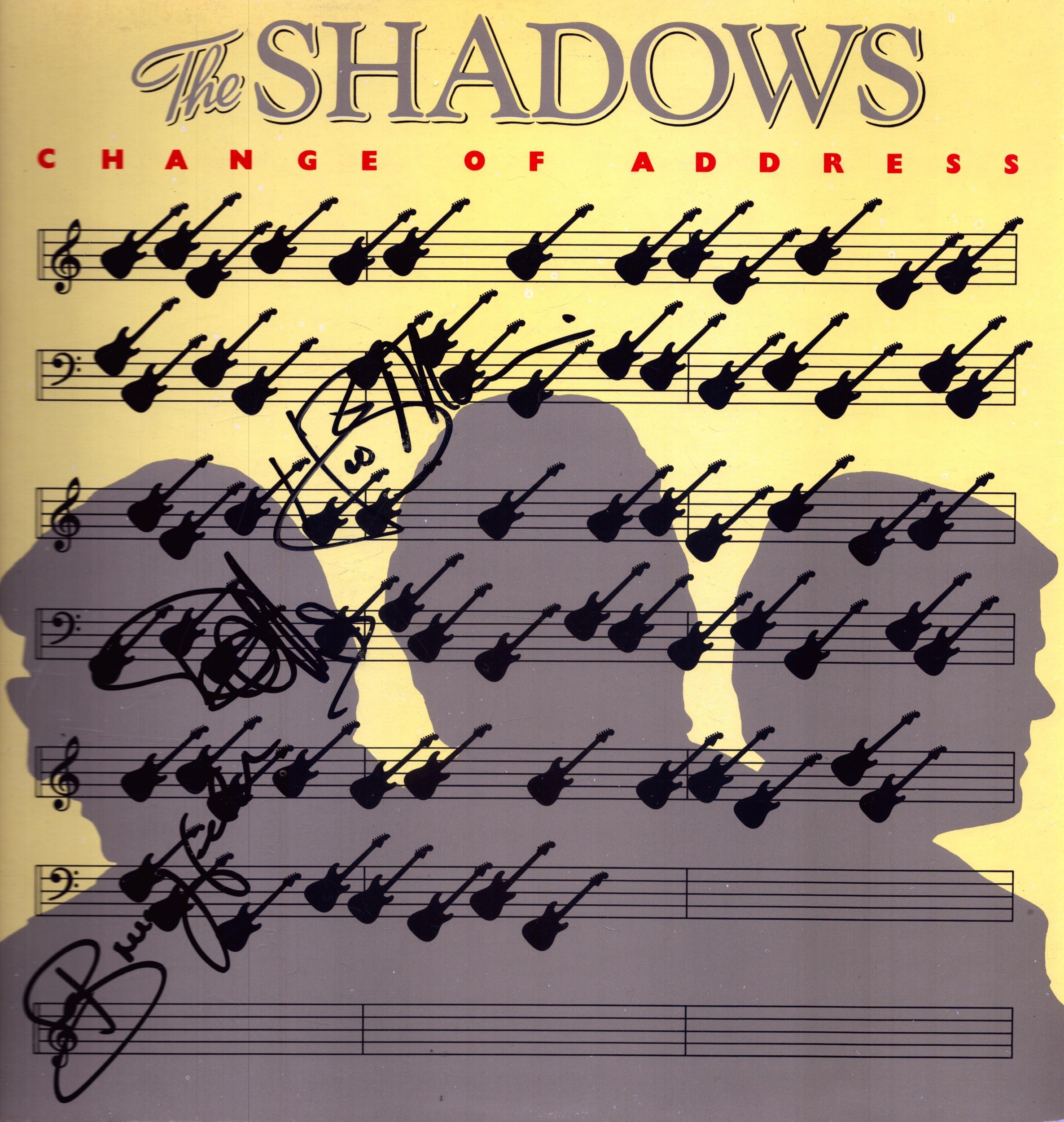 The Shadows Bruce Welch, Hank Marvin and Brian Bennett signed 12inch vinyl cover.