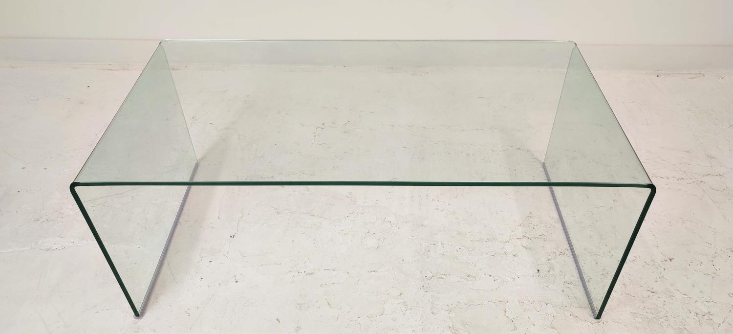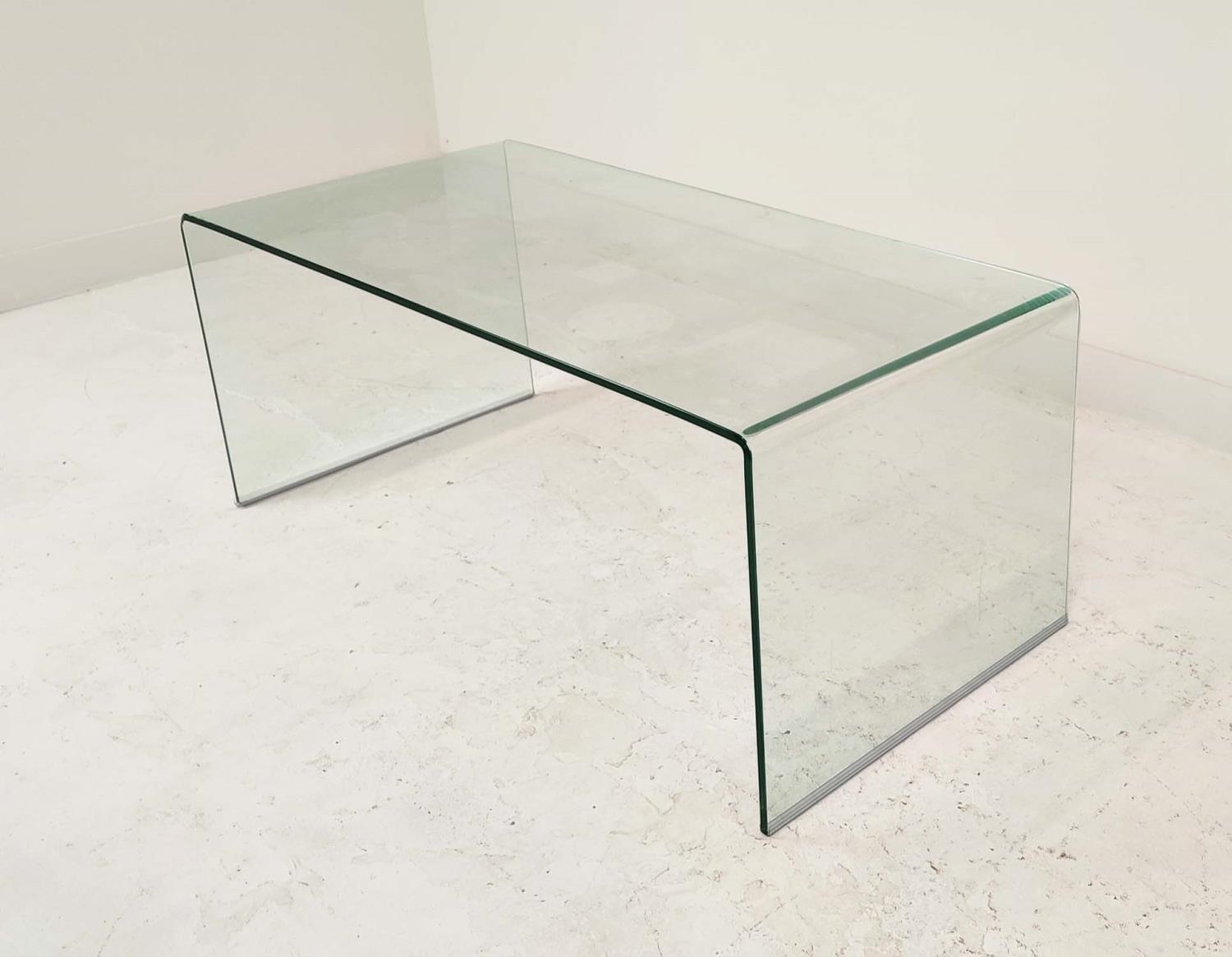 EICHHOLTZ LOW TABLE, curved glass, 120cm W x 60cm W x 48cm H.