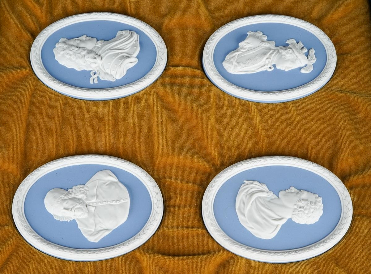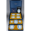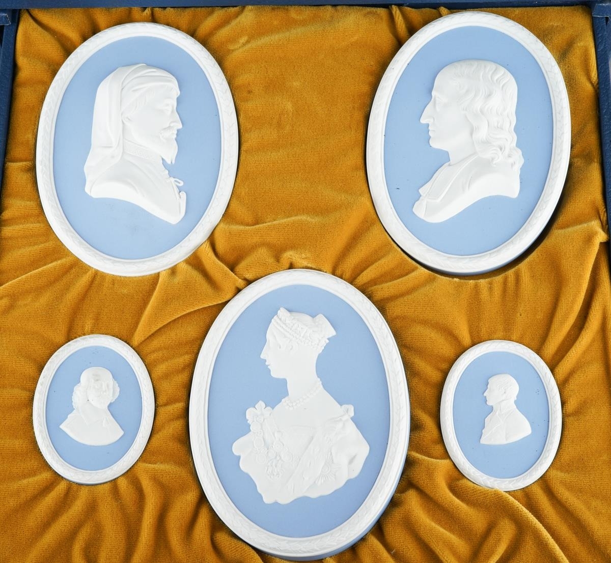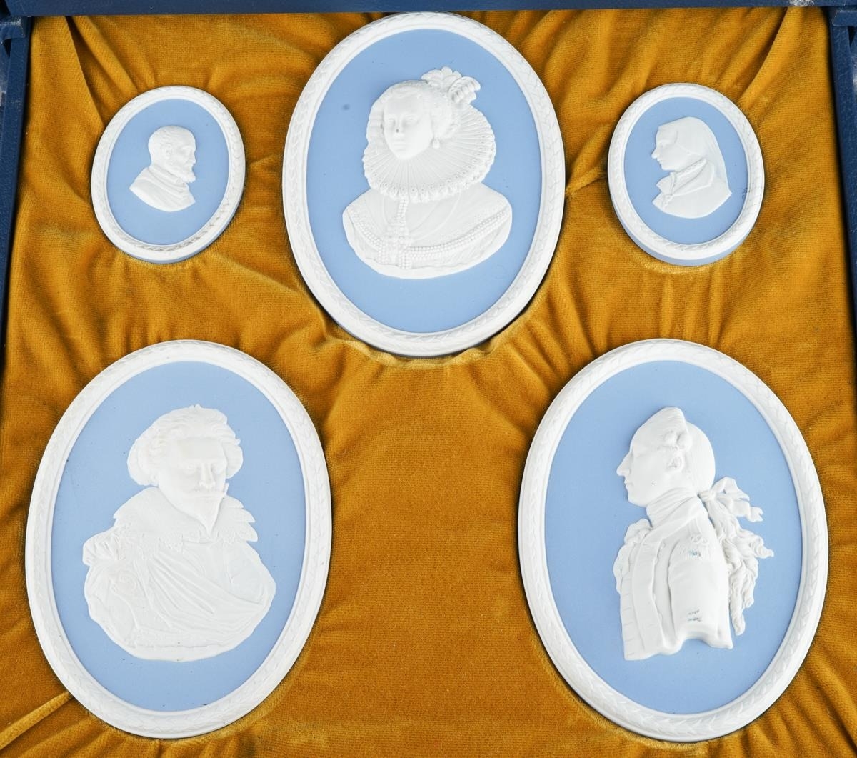 Wedgwood - Limited Edition Boxed Set of 14 ( Fourteen ) Jasper Portrait Medallions, Produced In Association with the National Portrait Gallery, Each Medallion Named, Numbered and Impressed to The Reverse and Arranged In a Lined Presentation Box, Ltd Edition No of 140 of 200 Issued, Complete with Wedgwood Wallet Containing a Certificate of Authenticity and Booklet, circa 1973