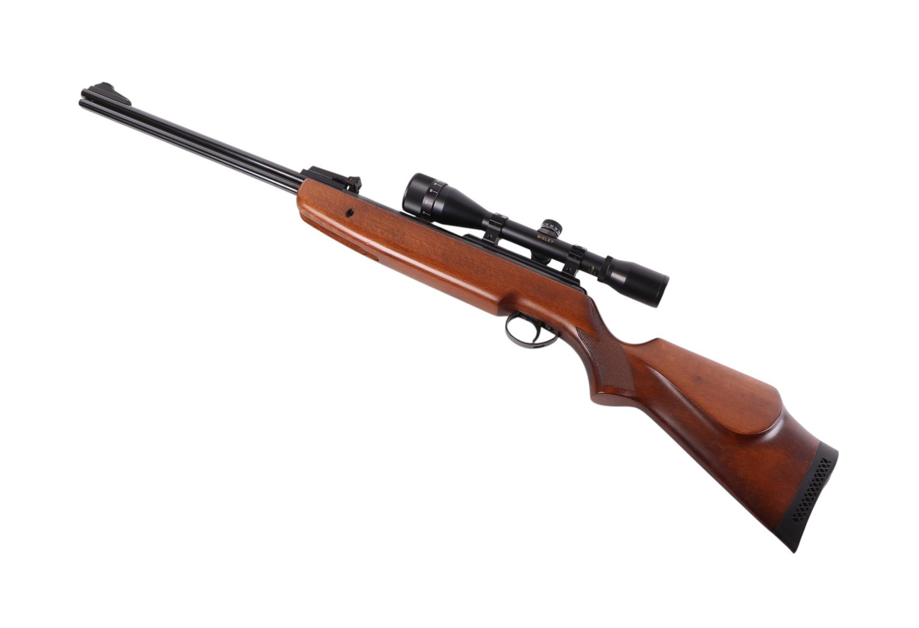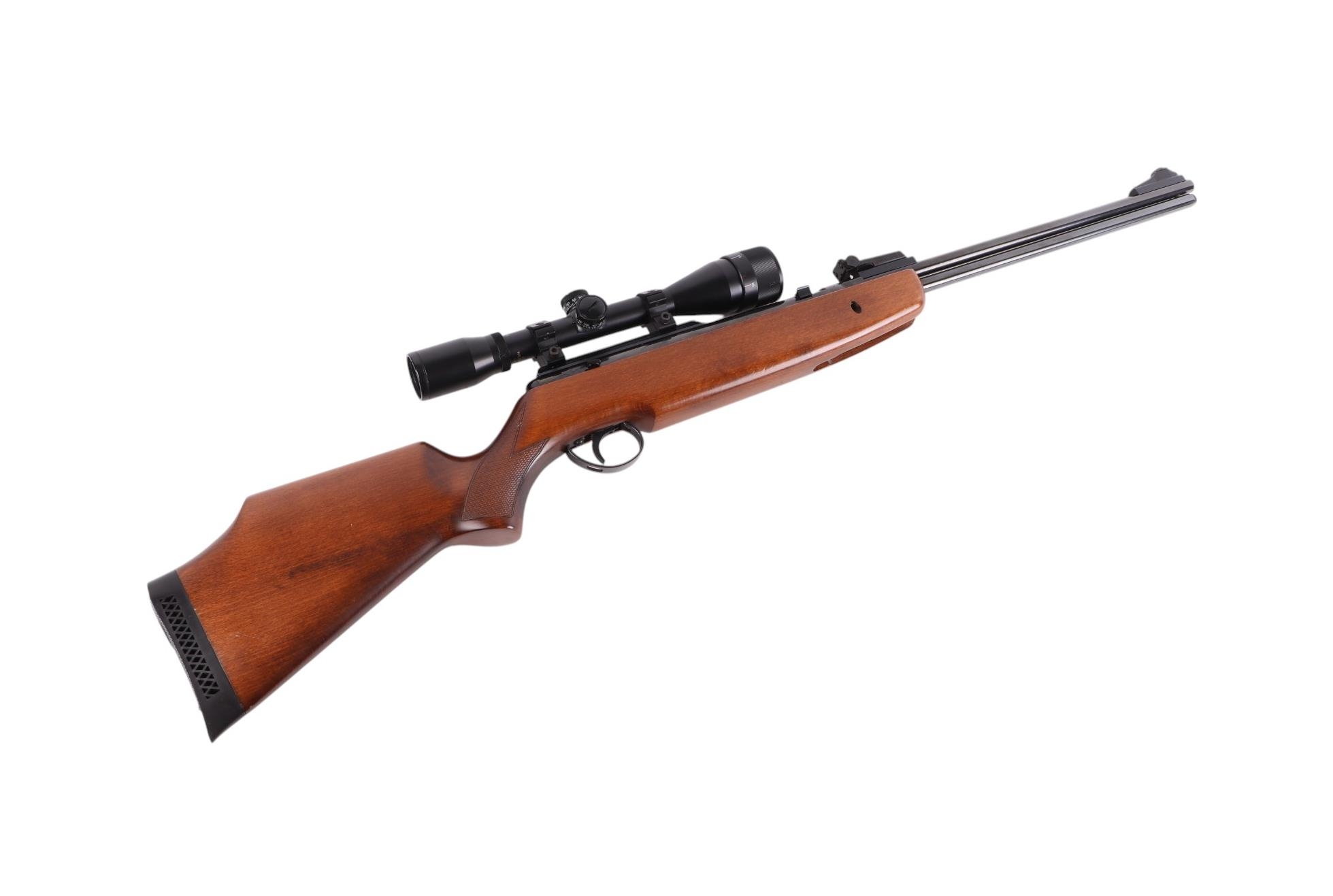 A BSA RB .22 air rifle with Bisley telescopic sight, in a soft slip case.