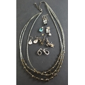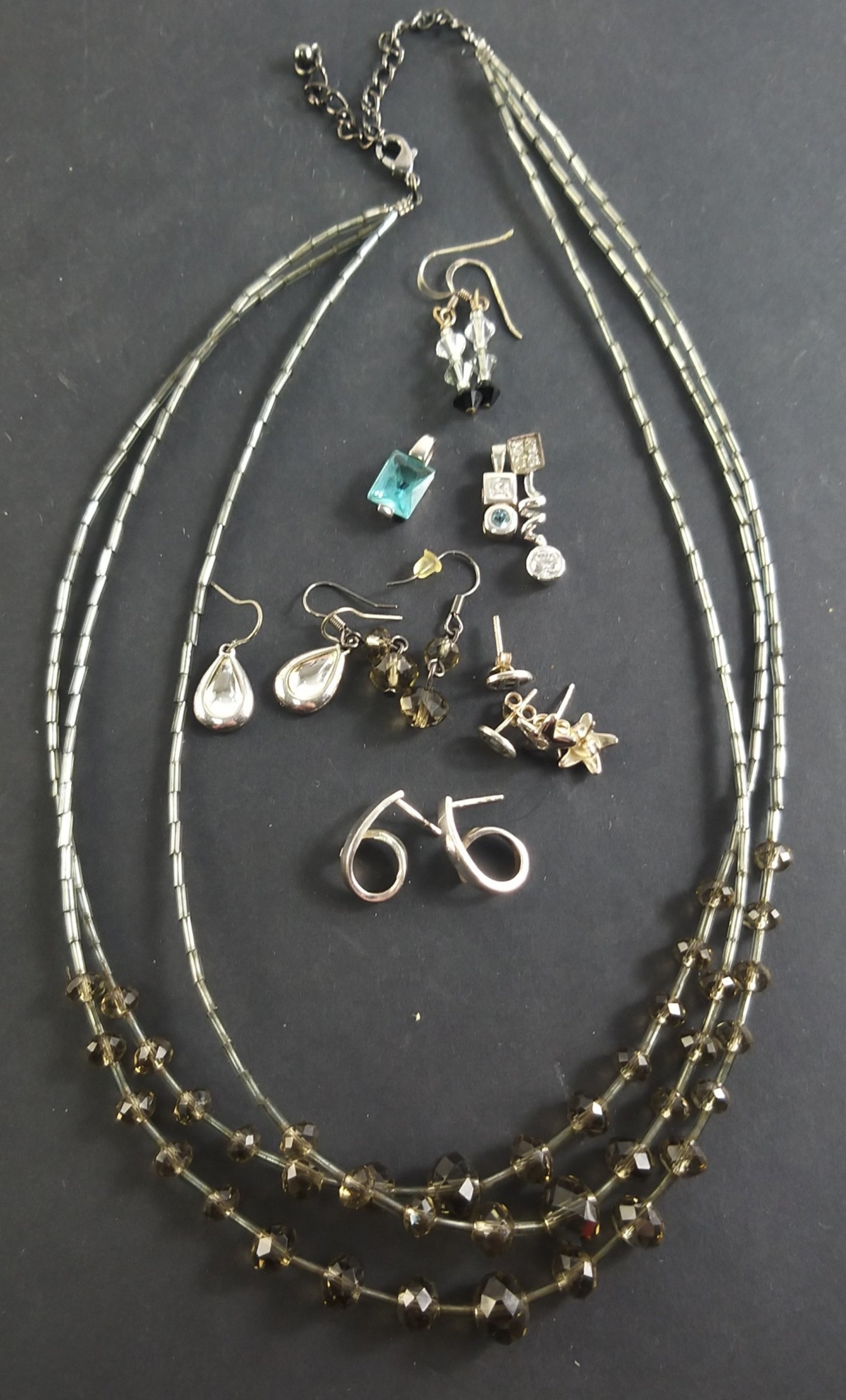 A small collection of good jewellery to include a three strand necklace and numerous good earrings.