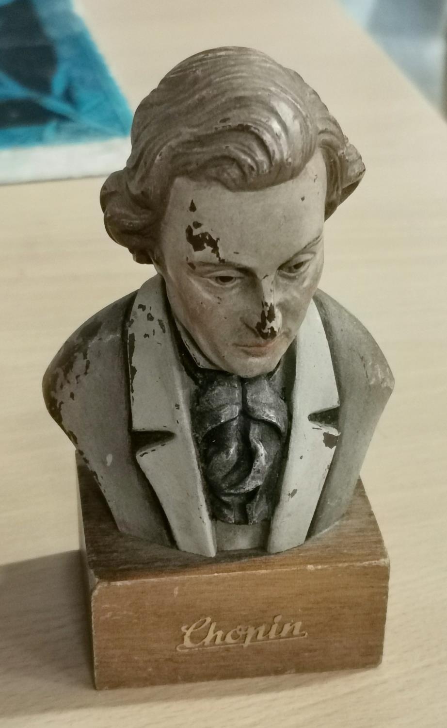 12 cm tall vintage Toriart Italy painted Chopin bust on wooden base