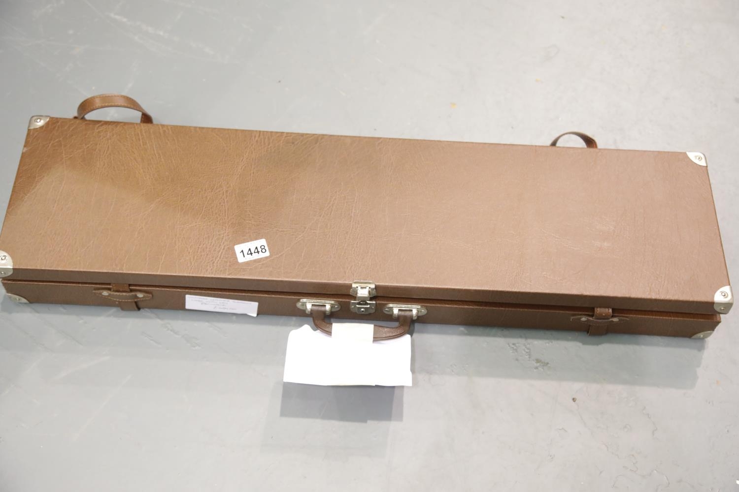Vintage brown leather hard shell shotgun case (no key.) Not available for in-house P&P.