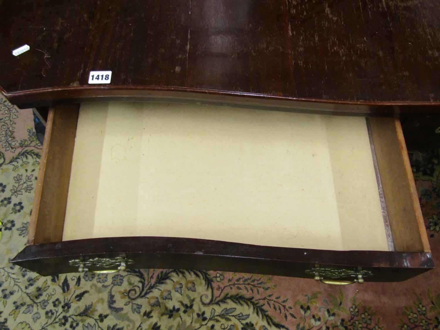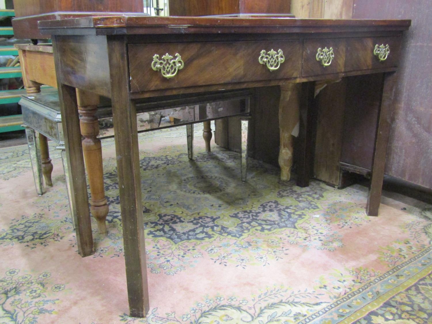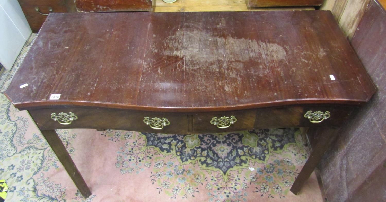 A Georgian style mahogany side table the serpentine front fitted with two frieze drawers raised on square cut supports, 129 cm wide