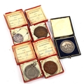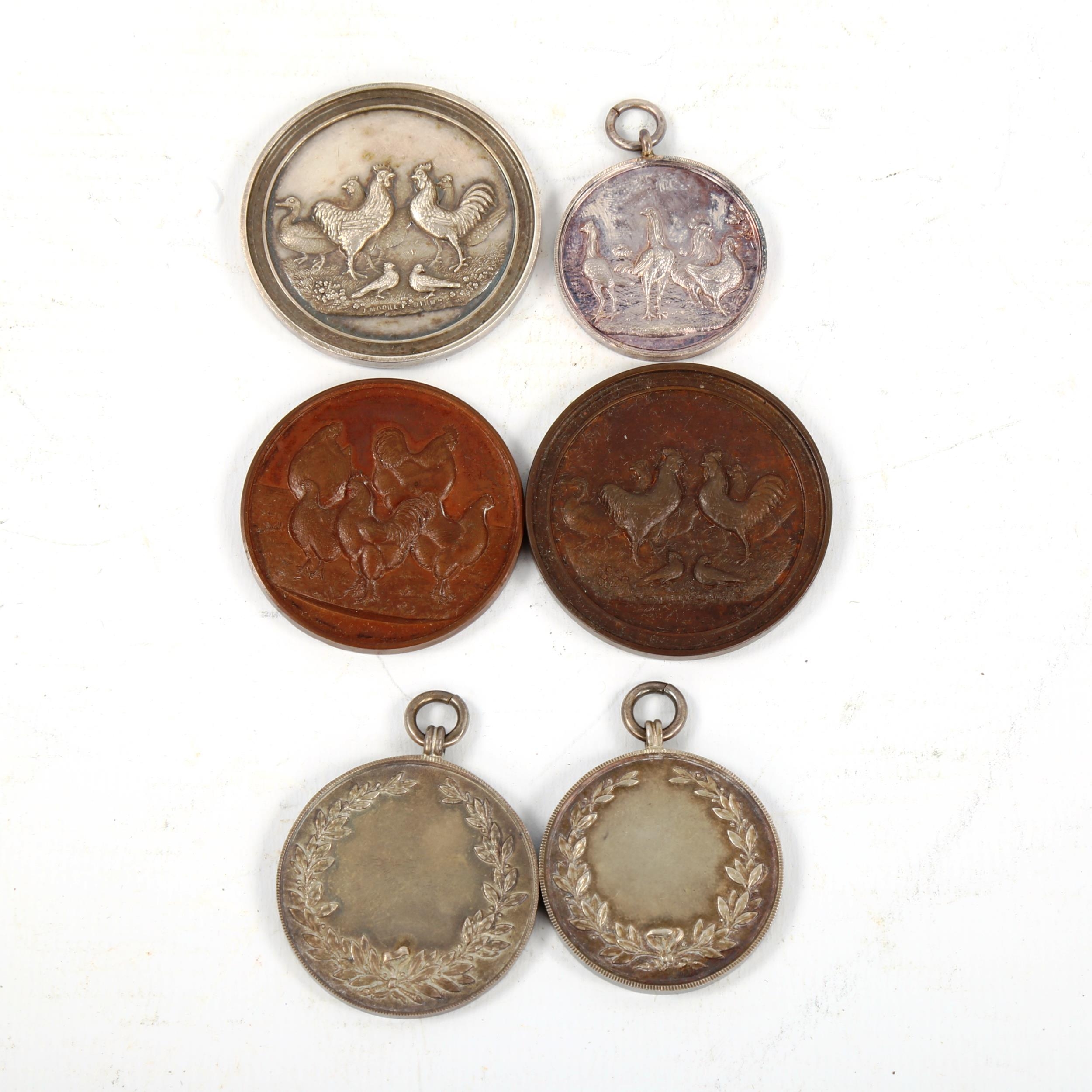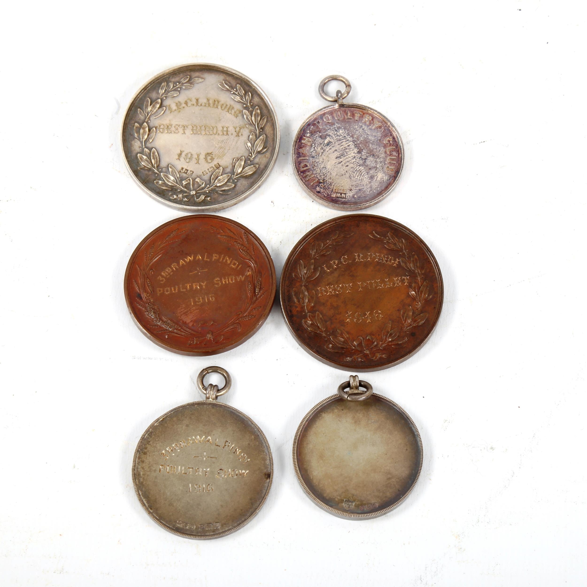 A group of Poultry related Agricultural and Horticultural Society of India medallions, including three Hallmarked Silver examples