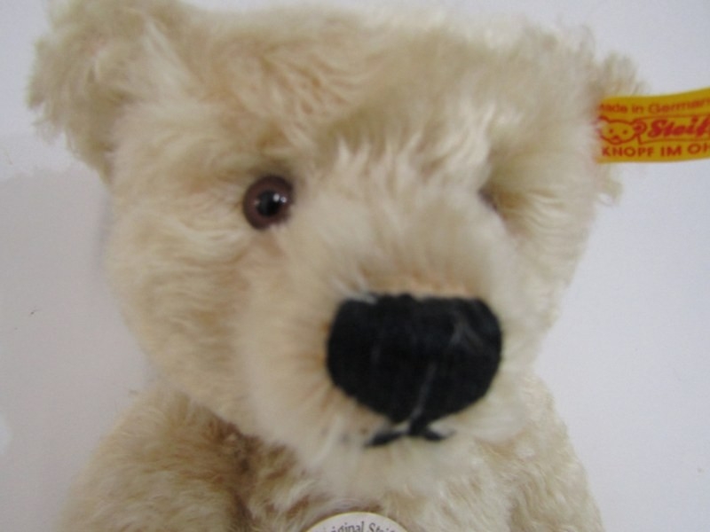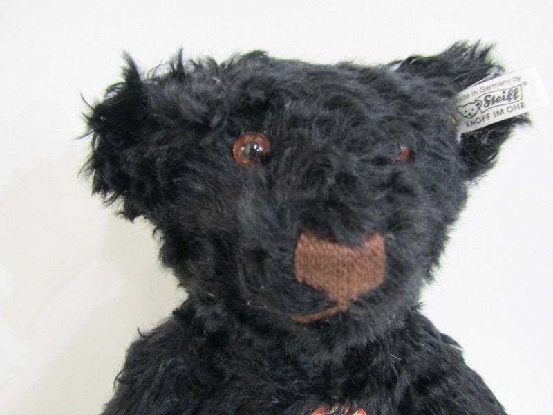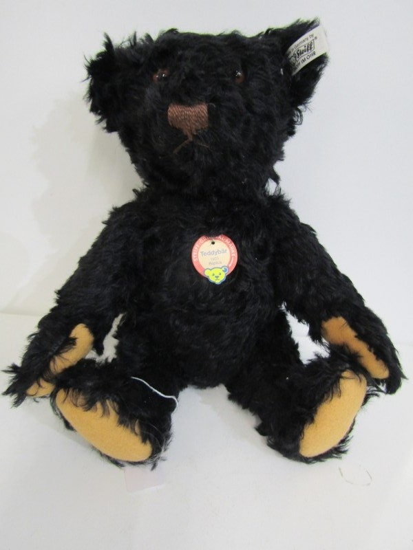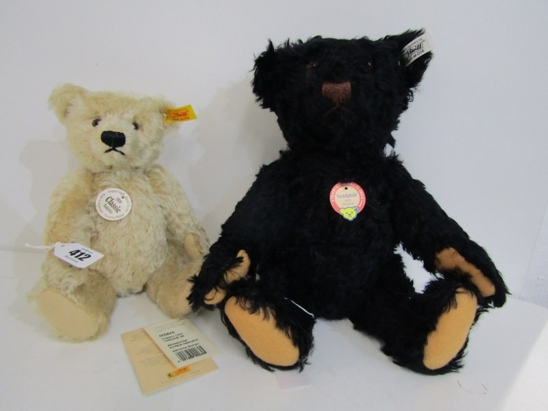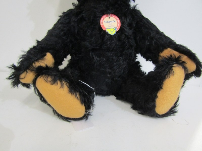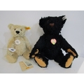 STEIFF TEDDIES, 2 Steiff teddy bears; blonde classic 1920 teddy bear, no 000645 and black Original bear 1953 replica