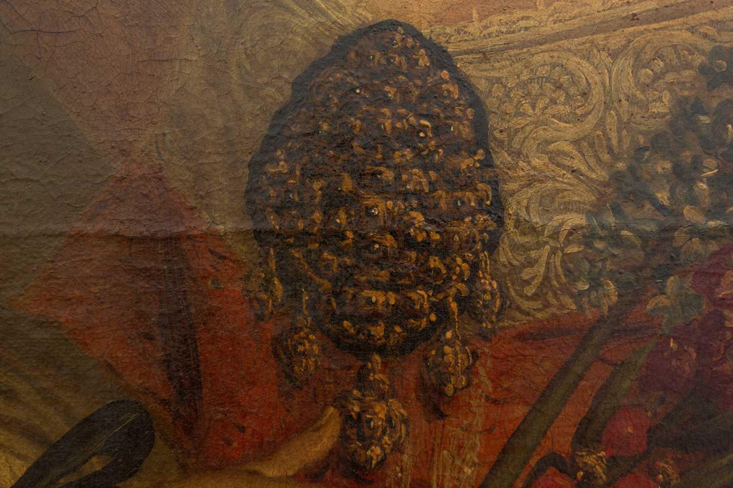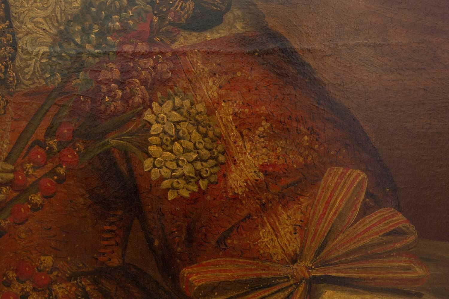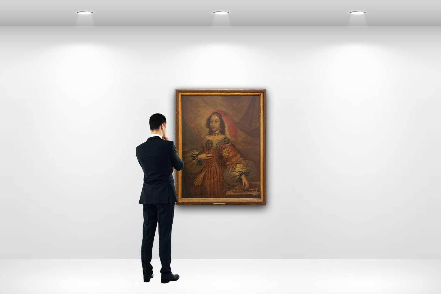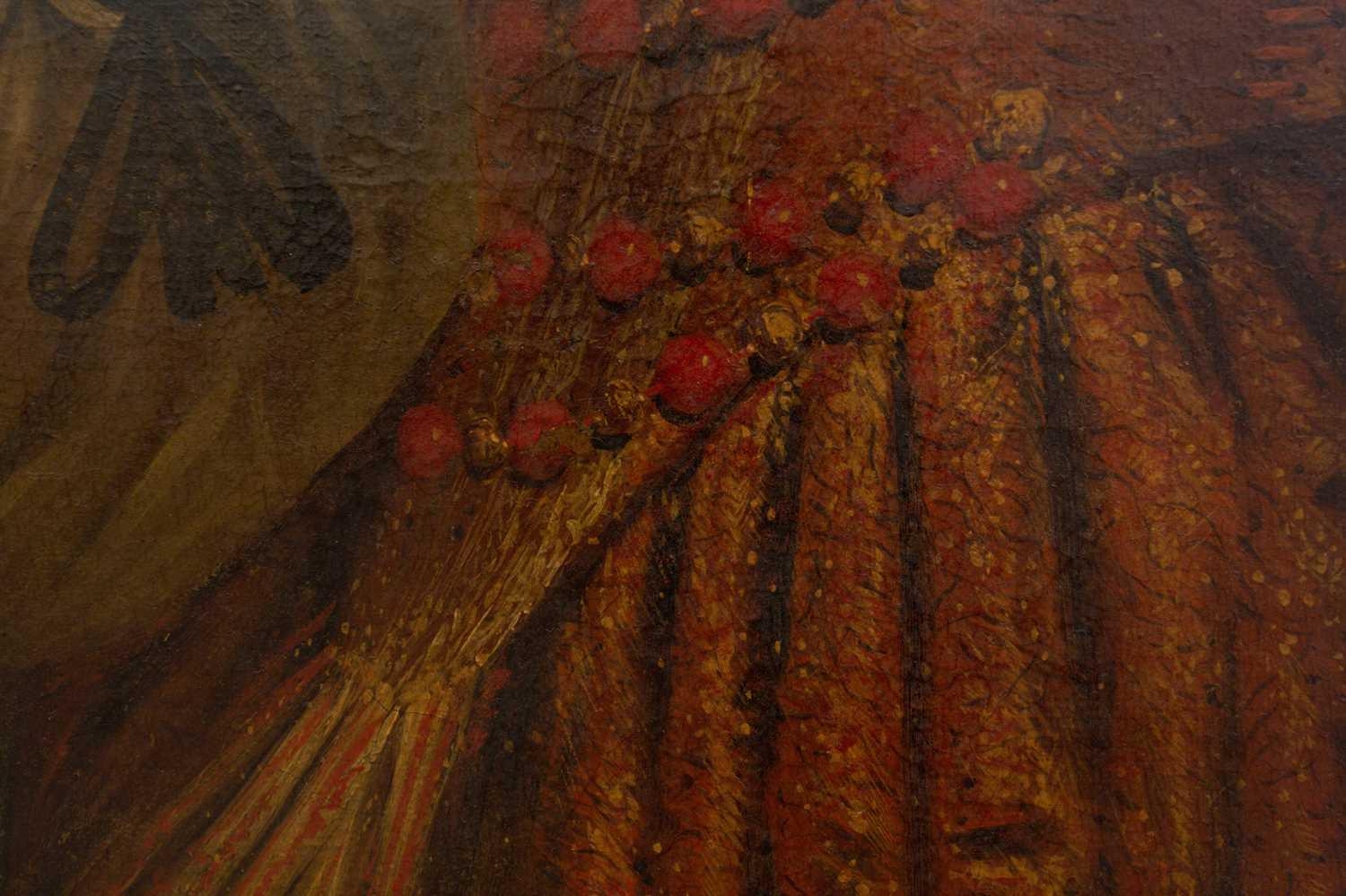 Attributed to Claudio Coello (1642-1693) Spain, Portrait of a Spanish noble lady, her hand resting on a lace bag and a book, unsigned, oil on canvas, 115.5 x 89 cm, later framed Labelled verso, 'Portrait by Coello, Property of Lady Beatrice K??, Colmaton Cottage, Sidmouth'