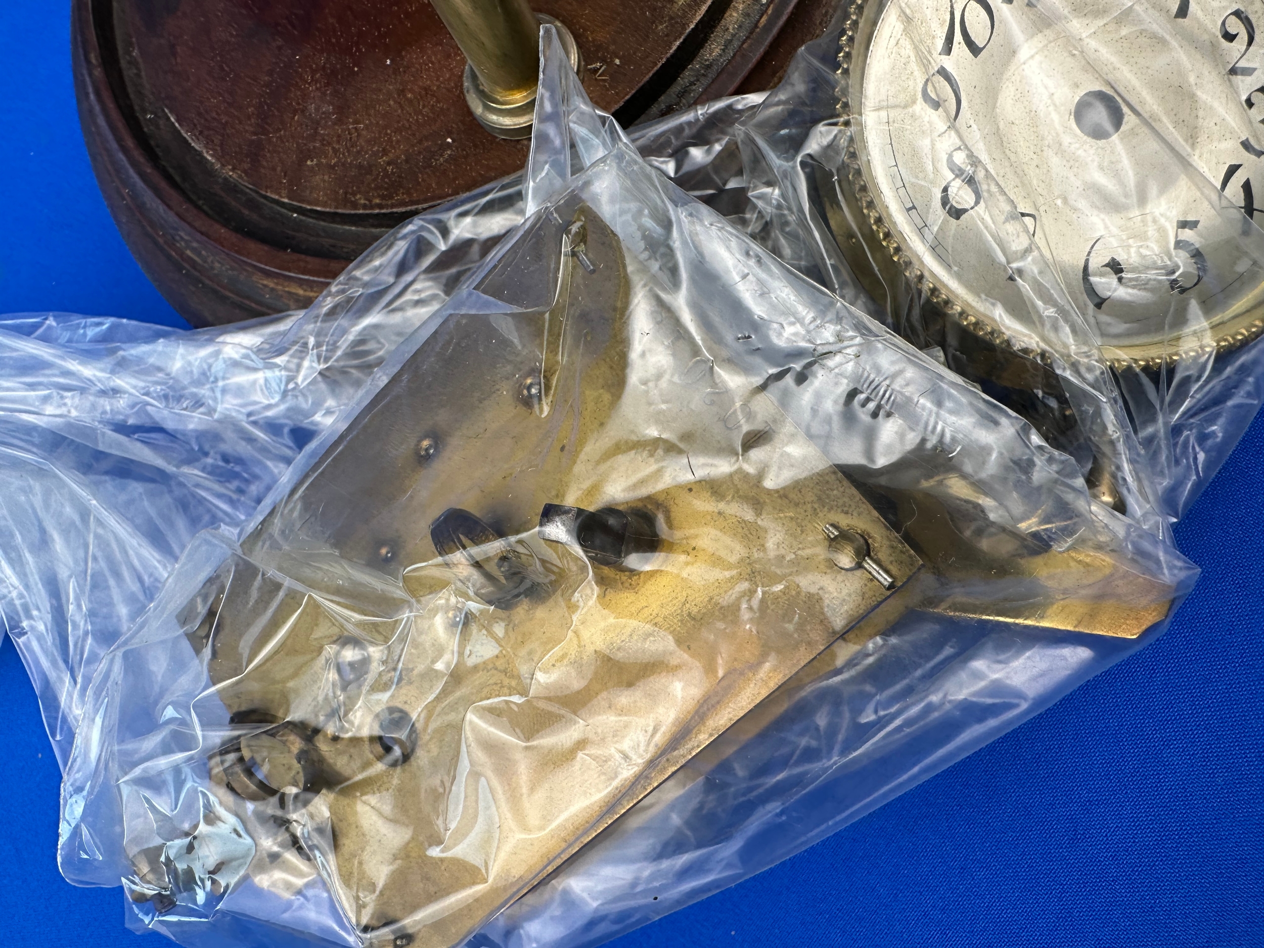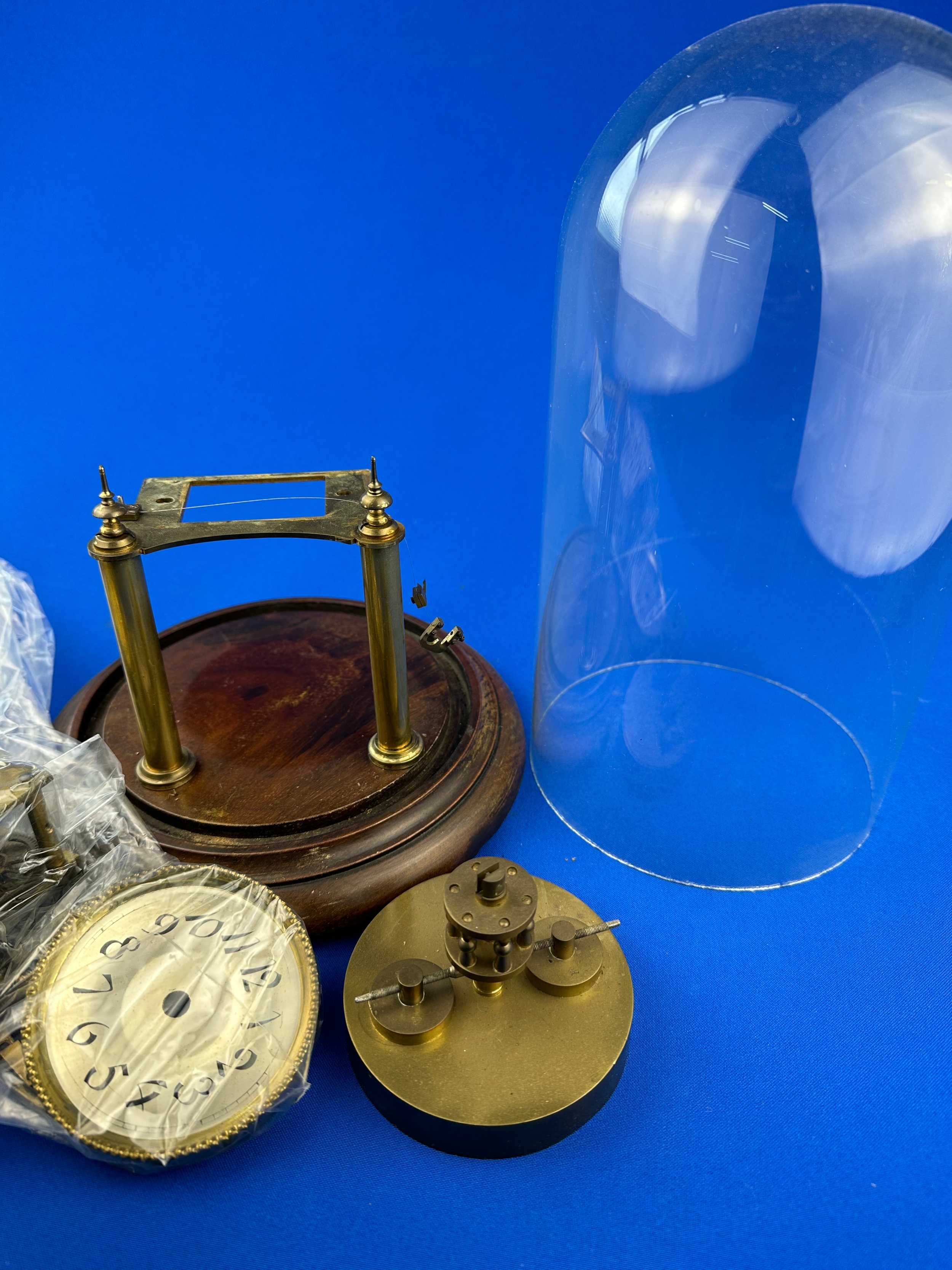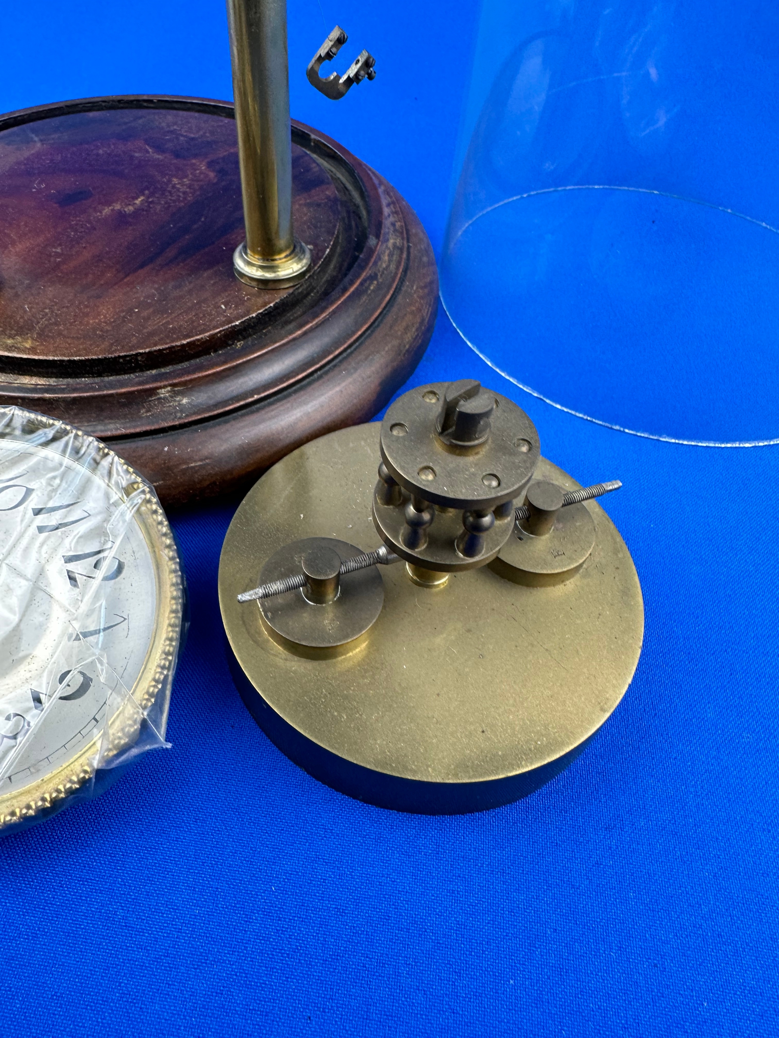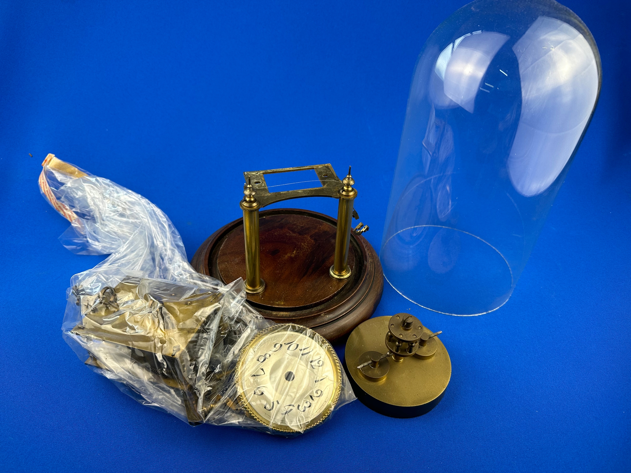 Vintage Anniversary Clock With Disk Pendulum a/f. Glass Dome & Wooden Base