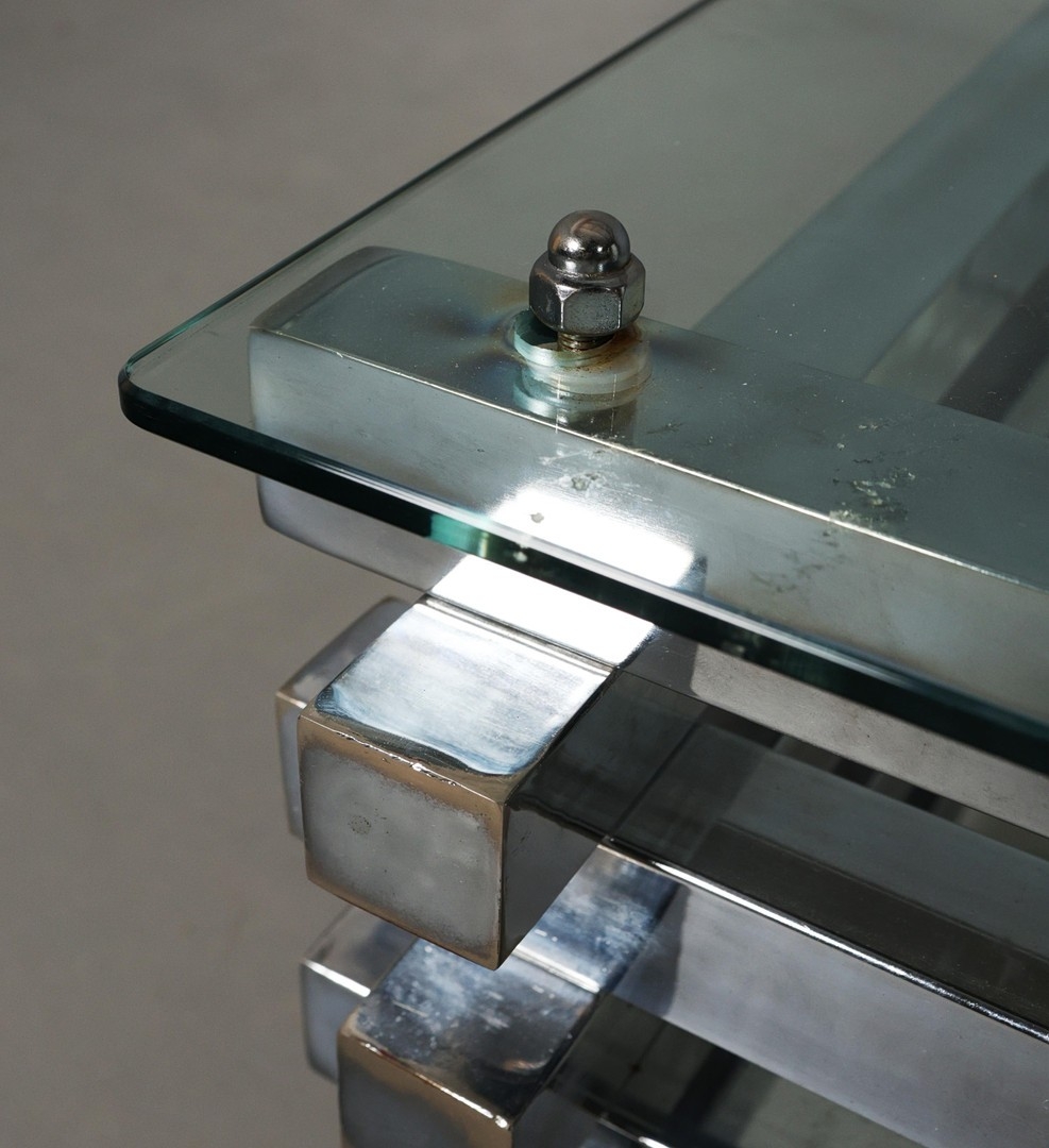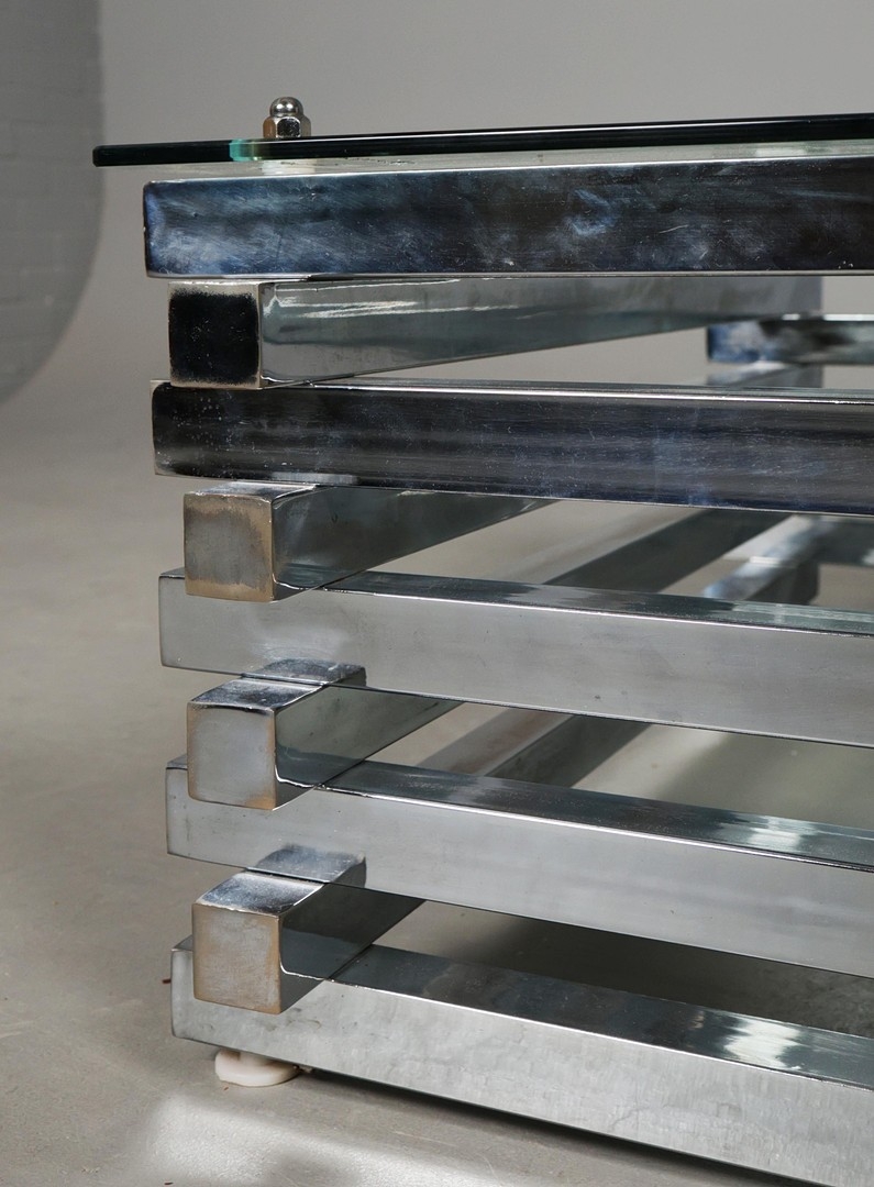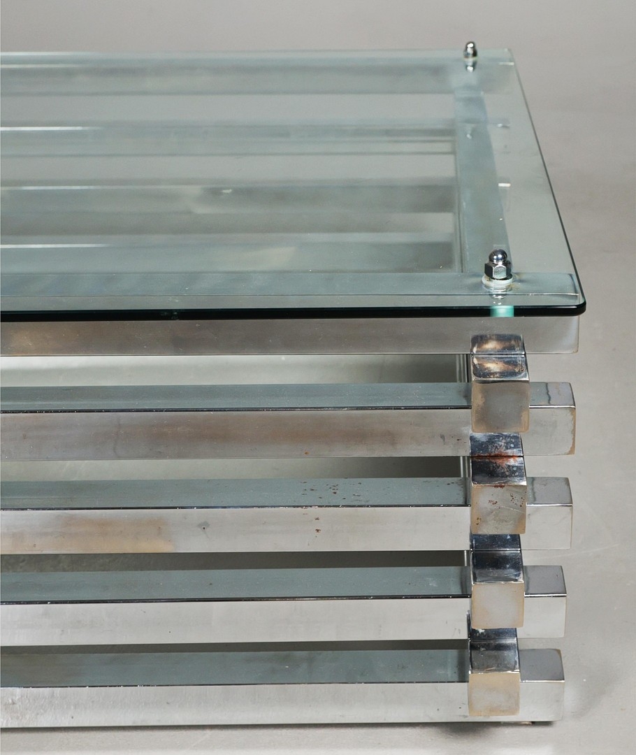 ATTRIBUTED TO ANDREW MARTIN CHROME LOG COFFEE TABLE. 89.5cm x 120cm x 40cm approx.