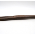 The tawse remains fairly supple, though the leather is fairly dehydrated. The are scuffs and marks along much of its length, with one deeper gouge between the maker's stamp and where the tails separate. The underside of the tawse is of a rough finish.