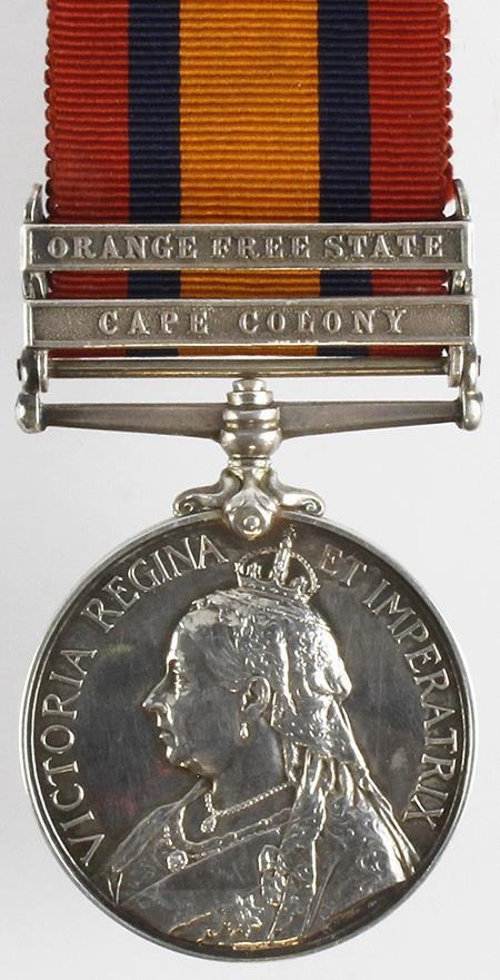 QSA with bars CC/OFS named (4450 Corpl J Piper Manchester Regt). Died 3/12/1901 Mafeking. With copied research