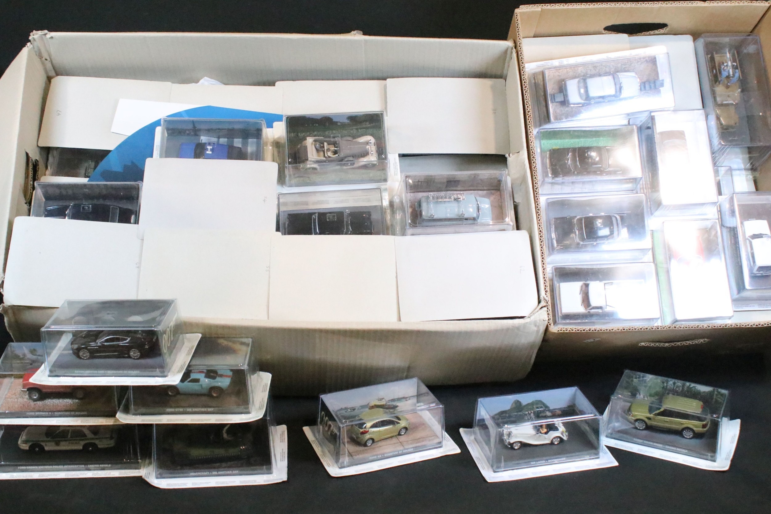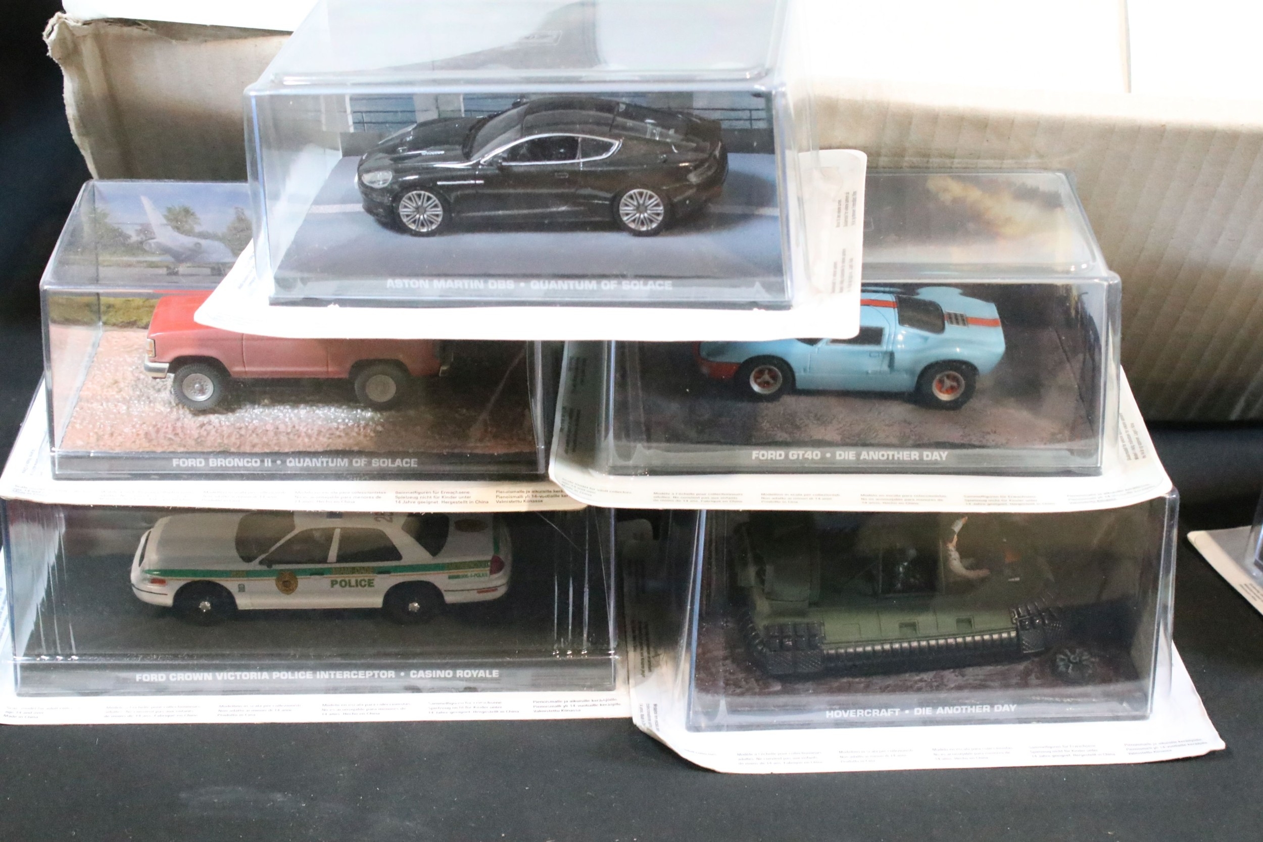 Complete set of 134 boxed / cased / carded Eaglemoss James Bond Car Collection diecast models, together with complete set of magazines, all ex (4 Boxes)
