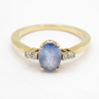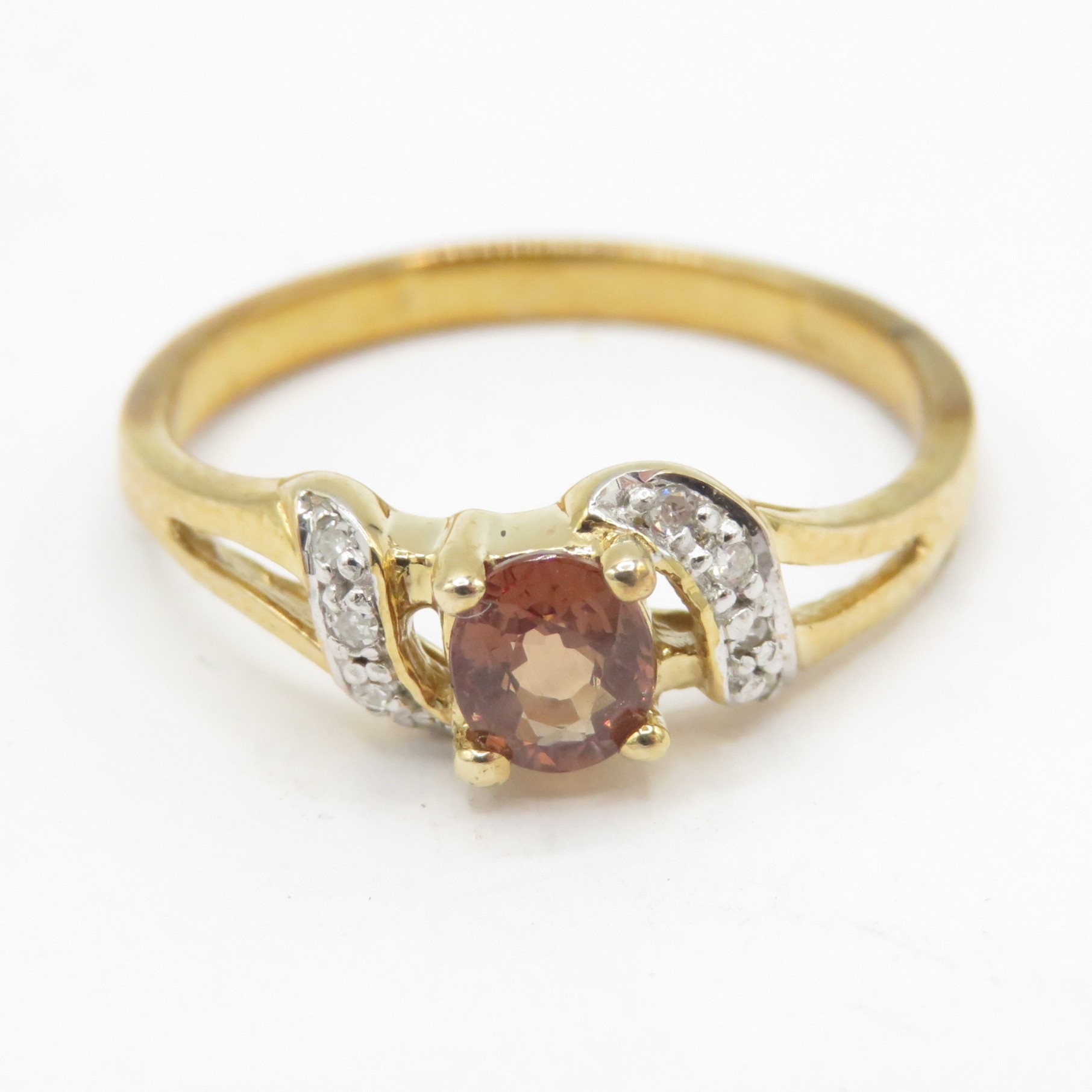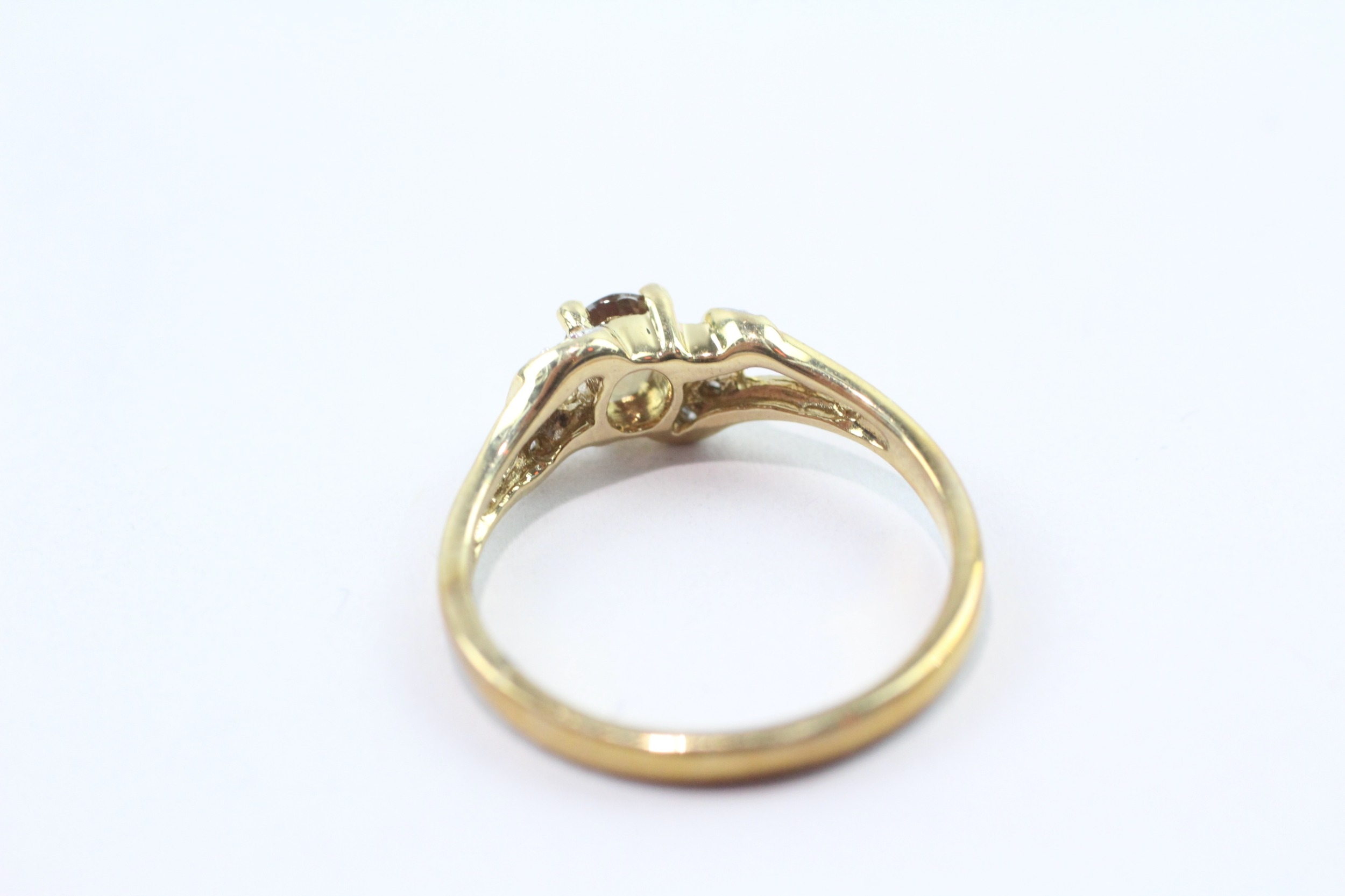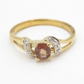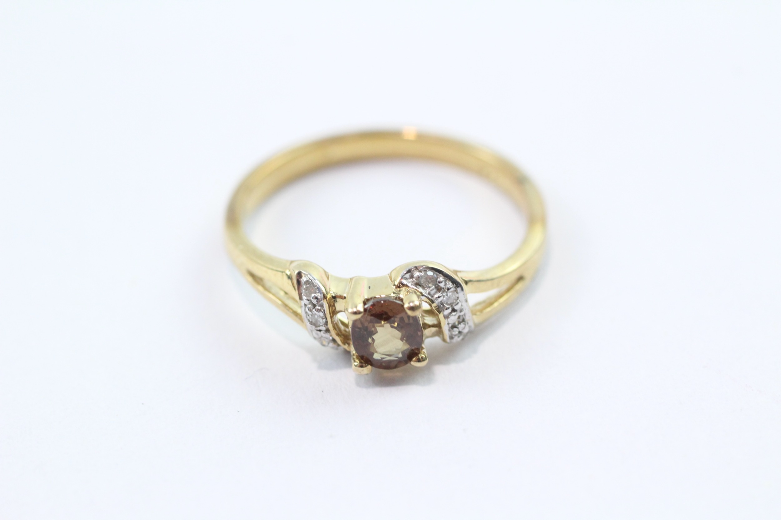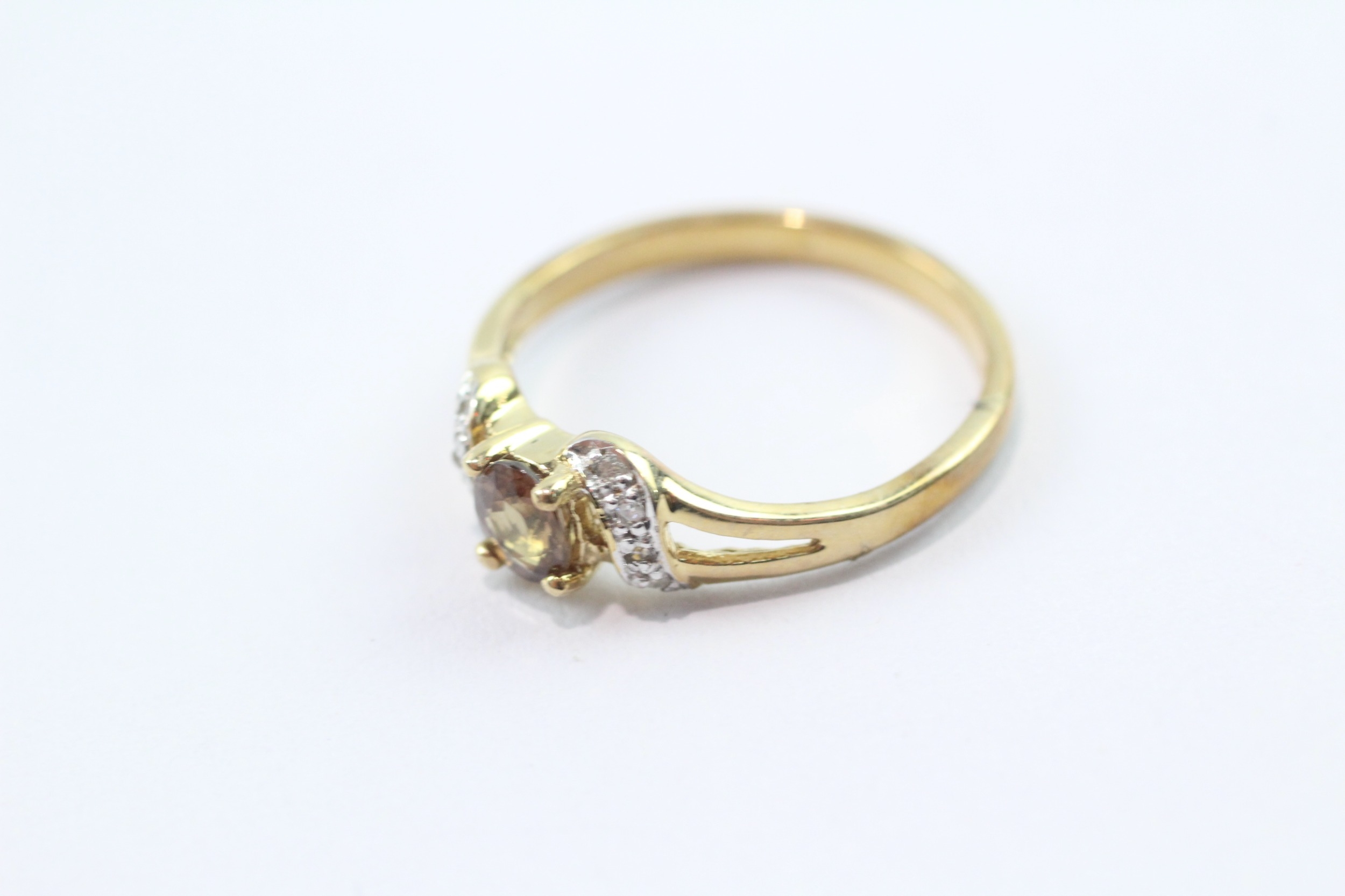 9ct gold diamond and smokey quartz ring (2.1g) Size N