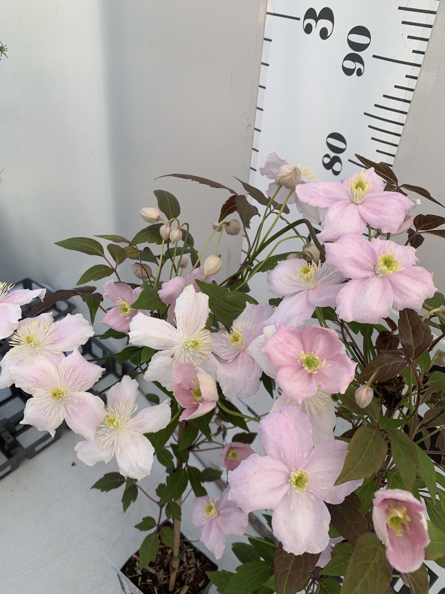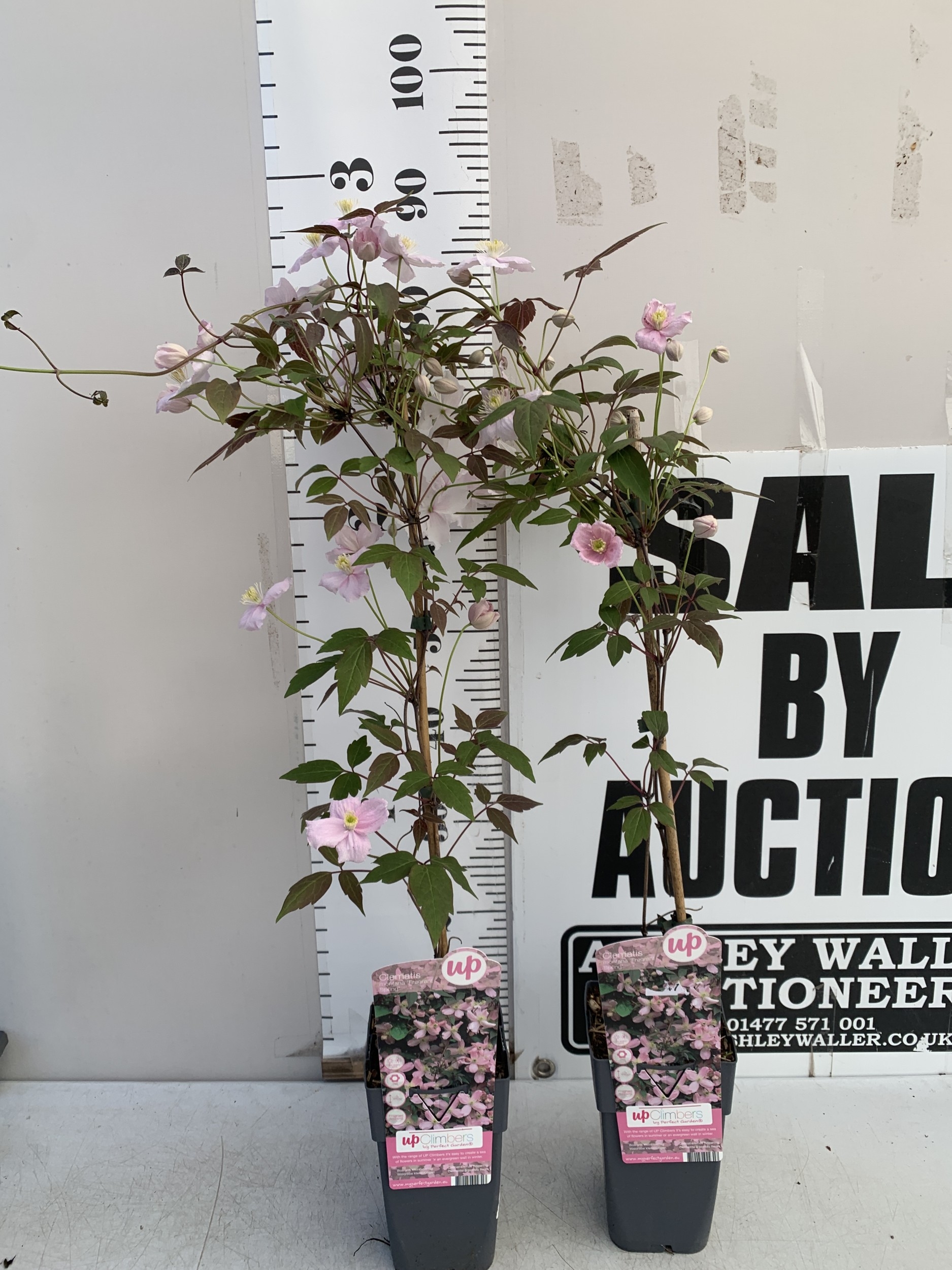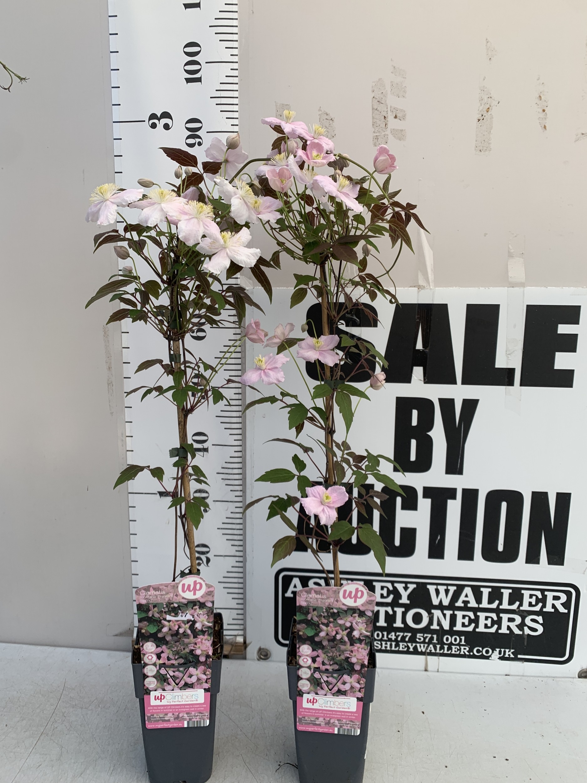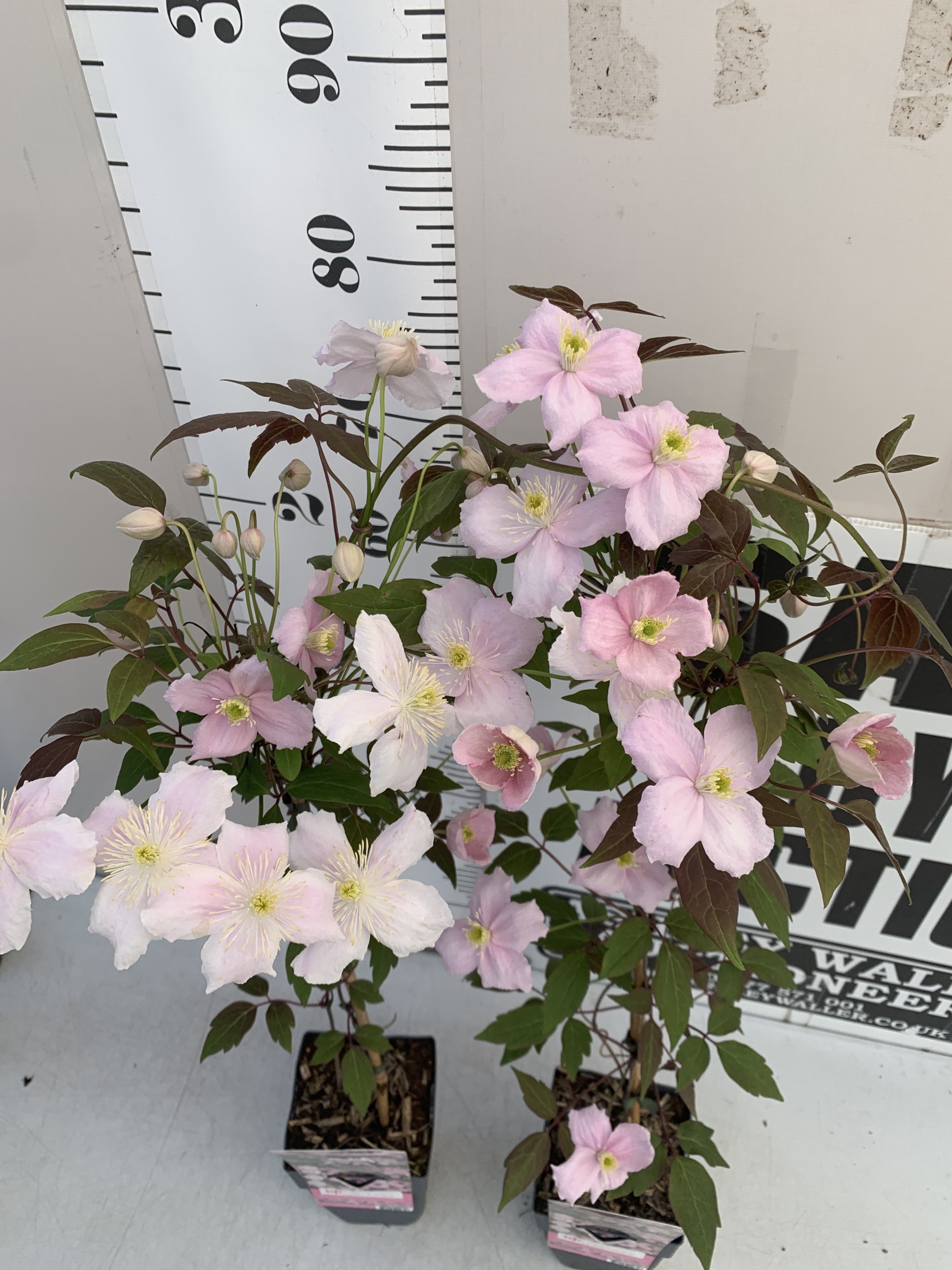 TWO CLEMATIS MONTANA PINK 'FRAGRANT SPRING' IN 1.75 LTR POTS. APPROX 90-100CM TALL, TO BE SOLD FOR THE PAIR