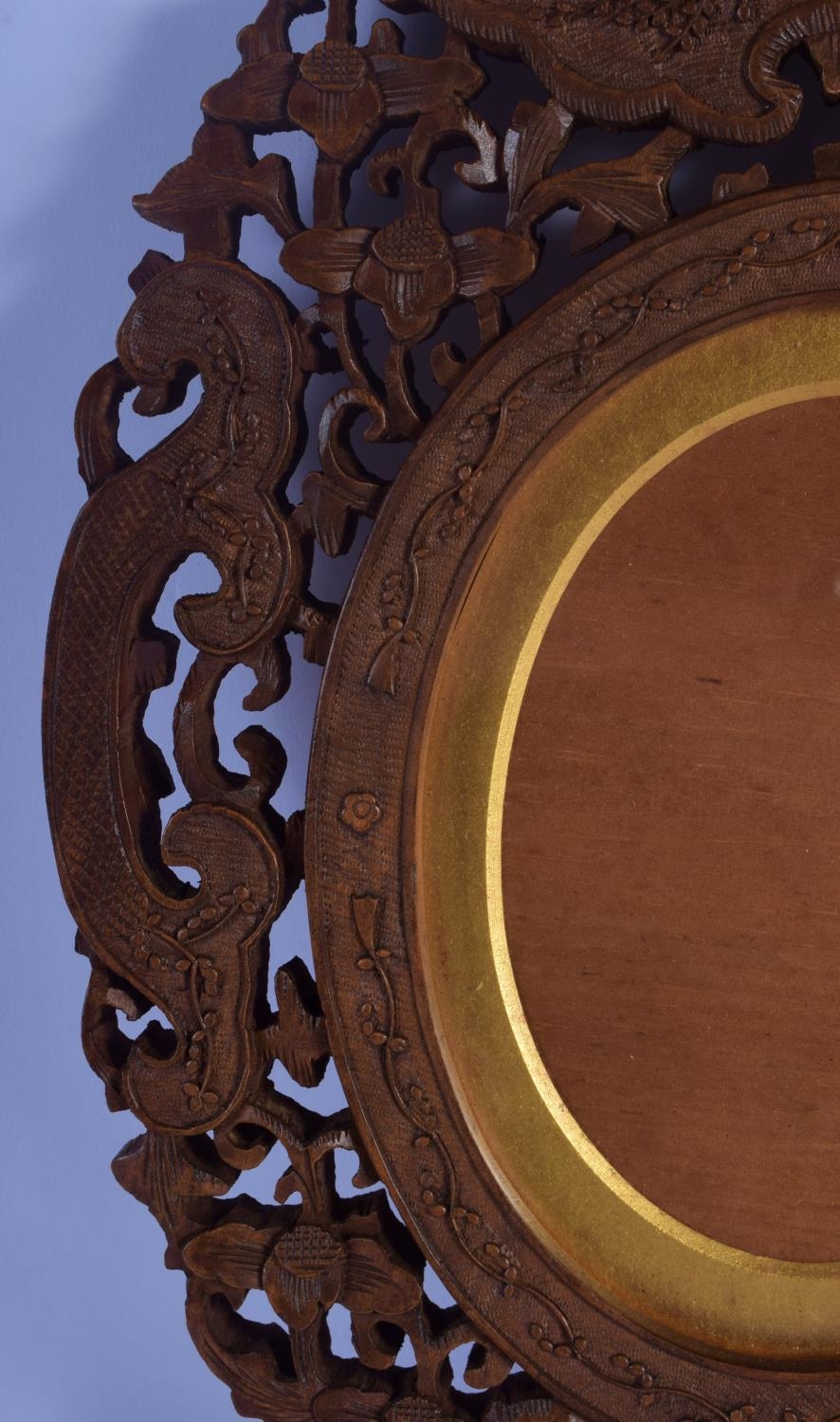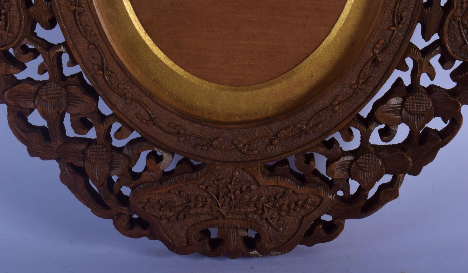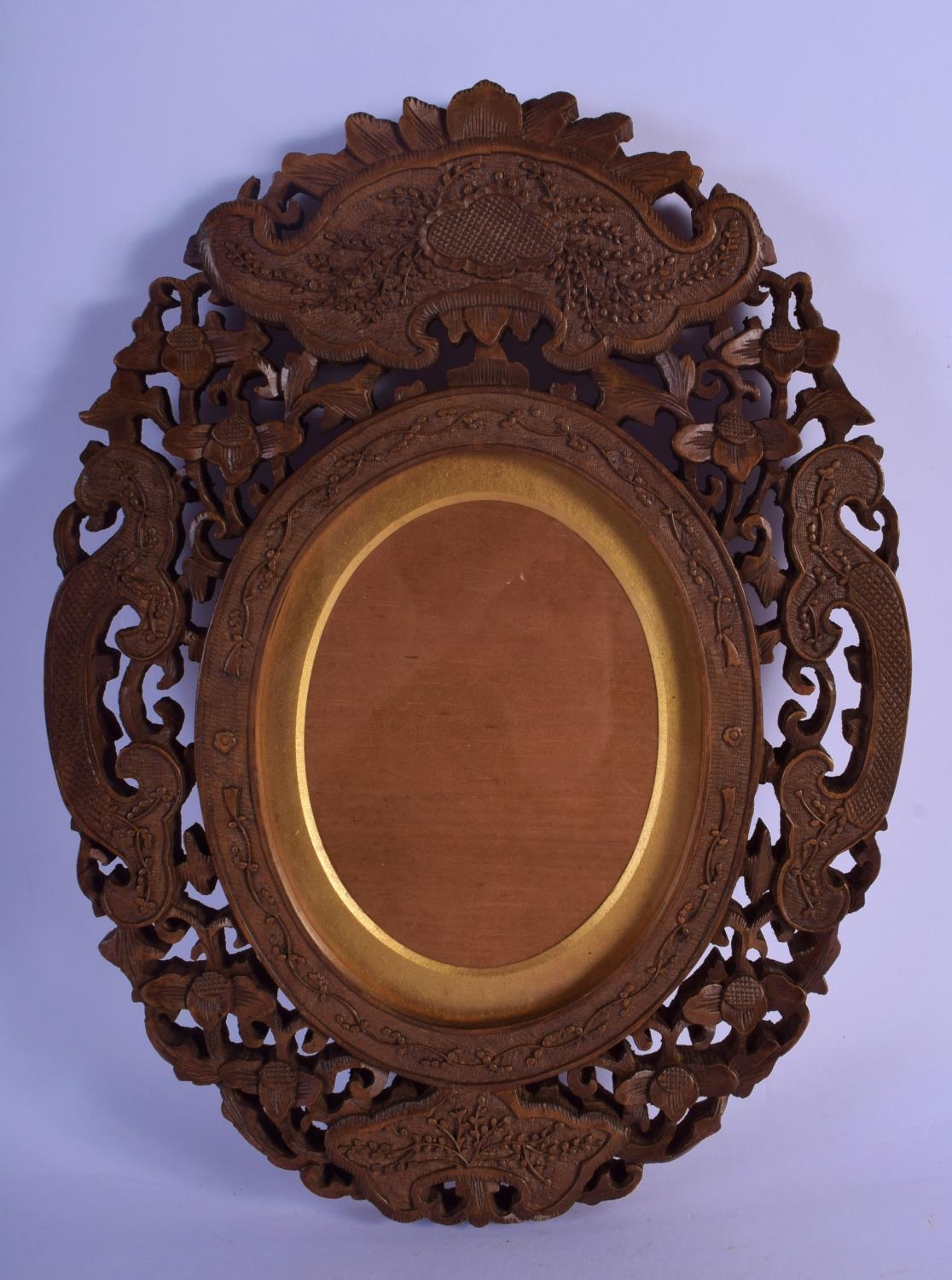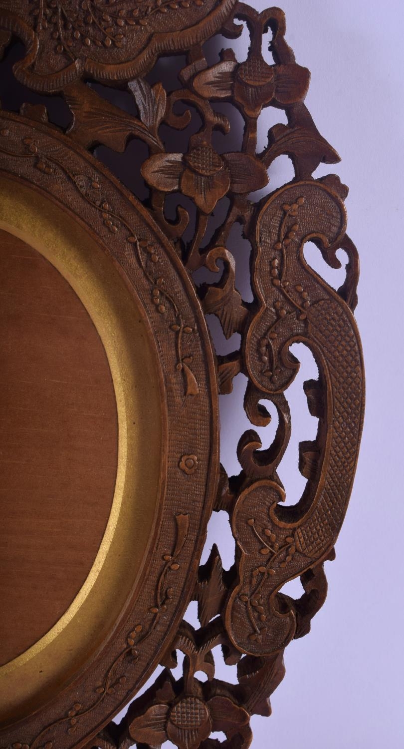 A 19TH CENTURY INDIAN MIDDLE EASTERN CARVED SANDALWOOD FRAME decorated with flowers and vines. 30 cm x 50 cm.