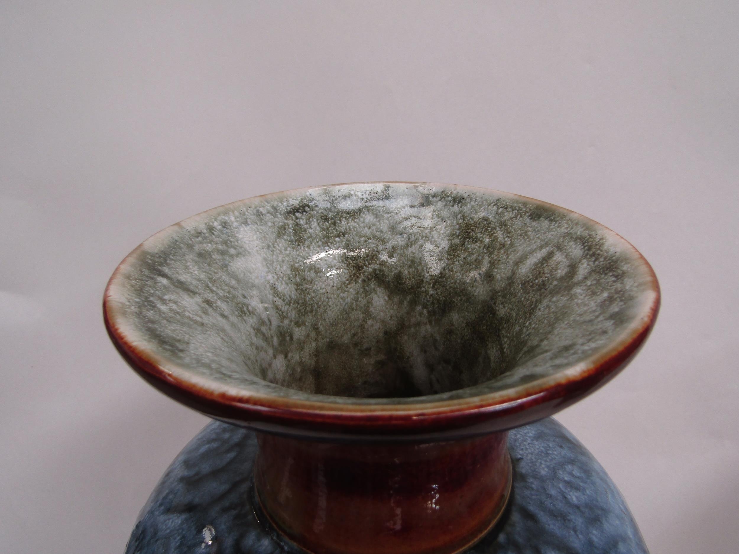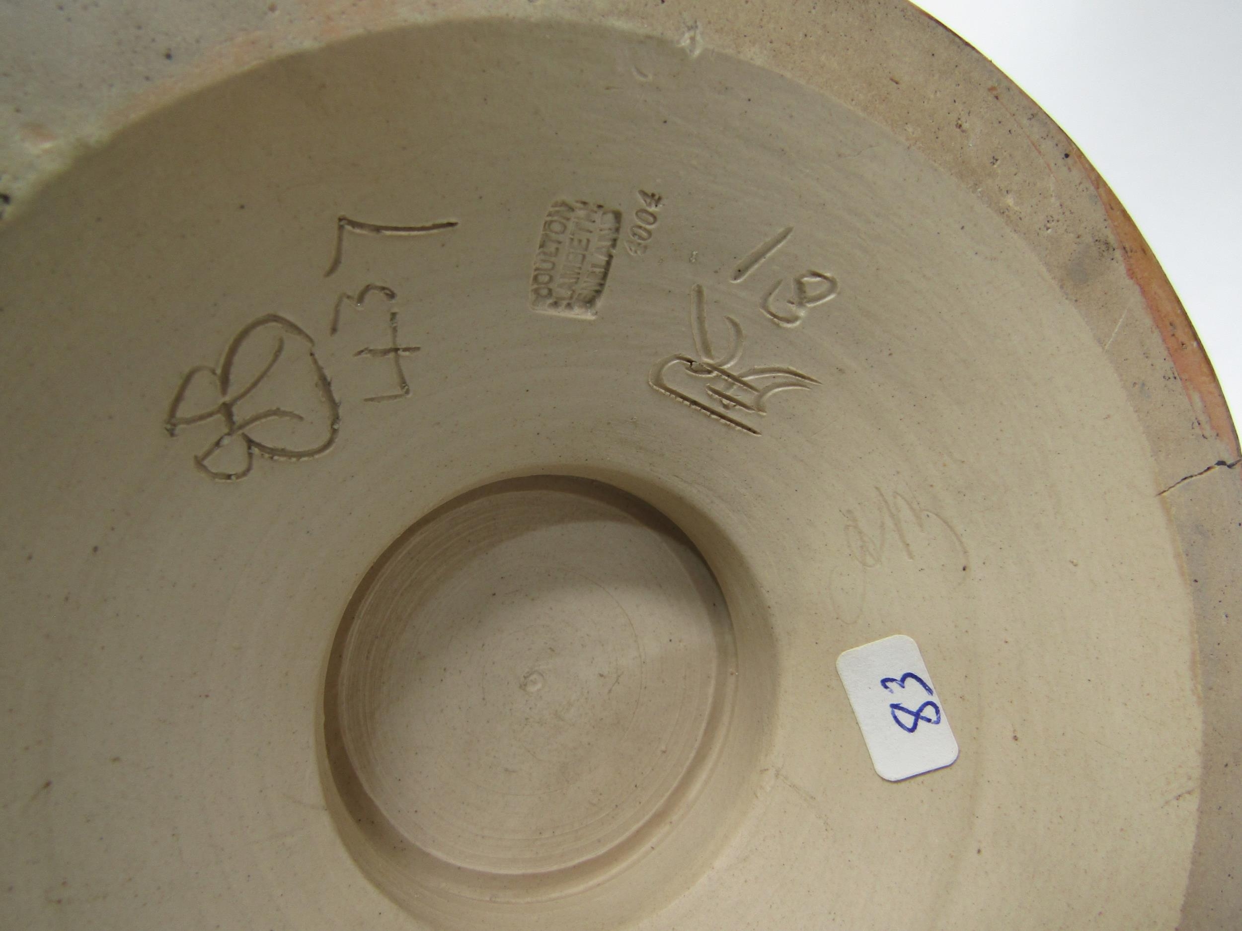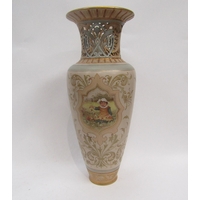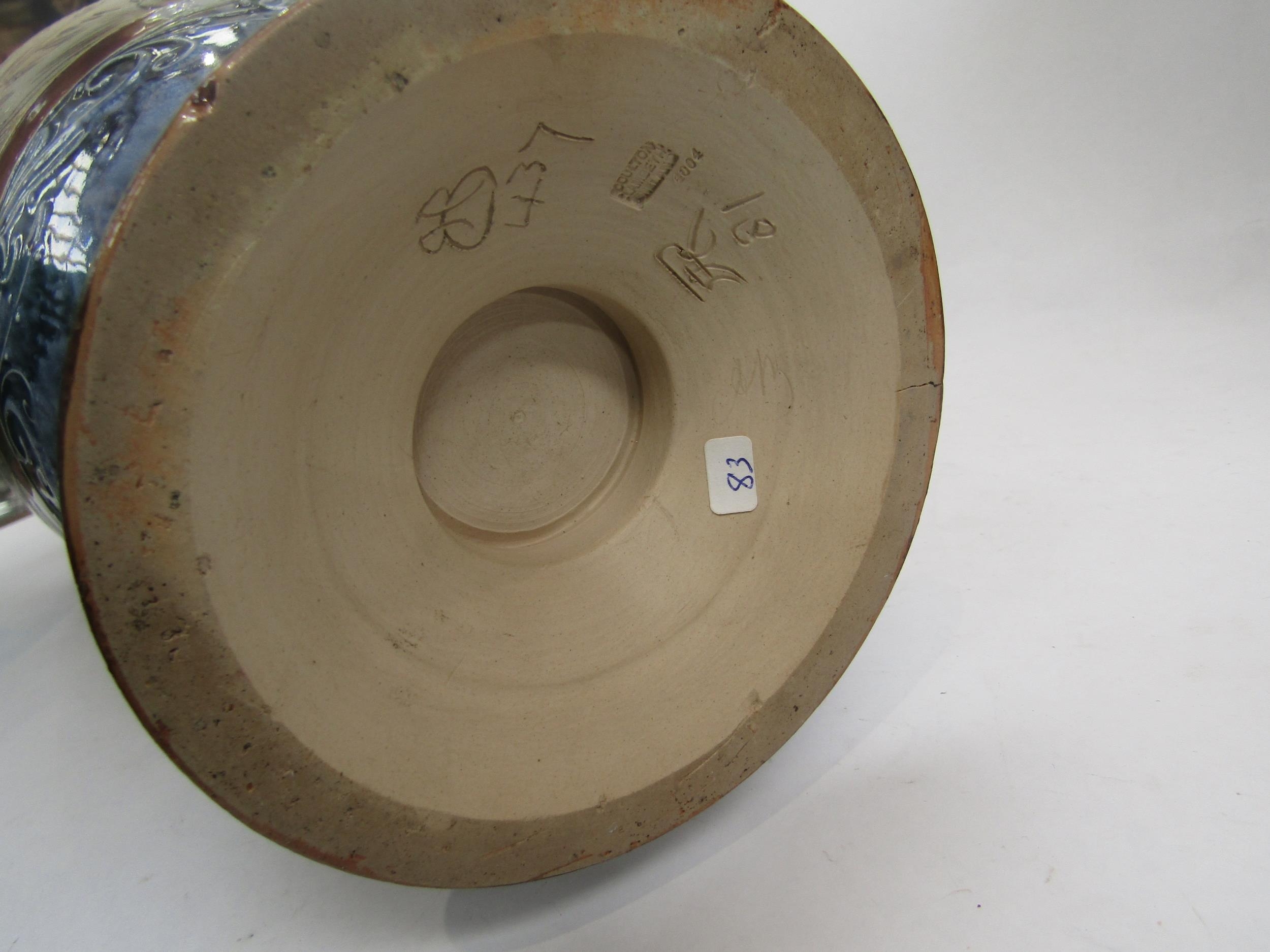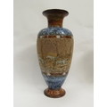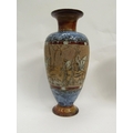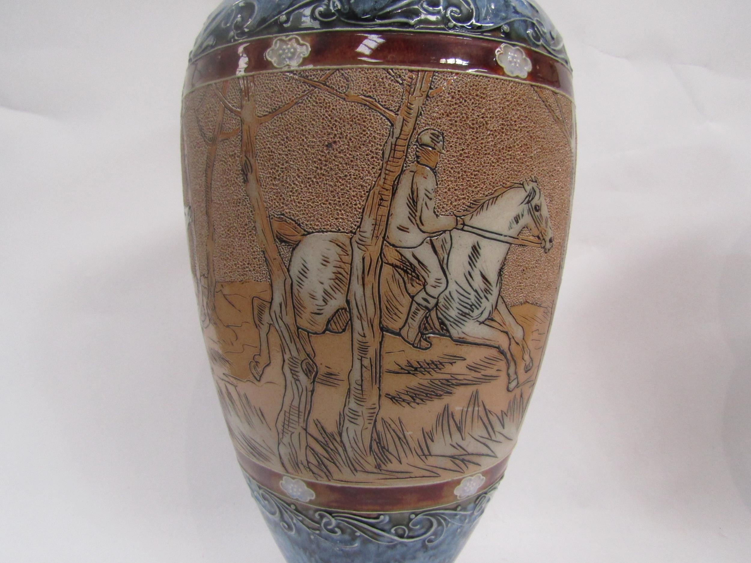A Royal Doulton Hannah Barlow vase decorated in scraffito with stag hunting scene. Firing crack to base, 44.5cm tall